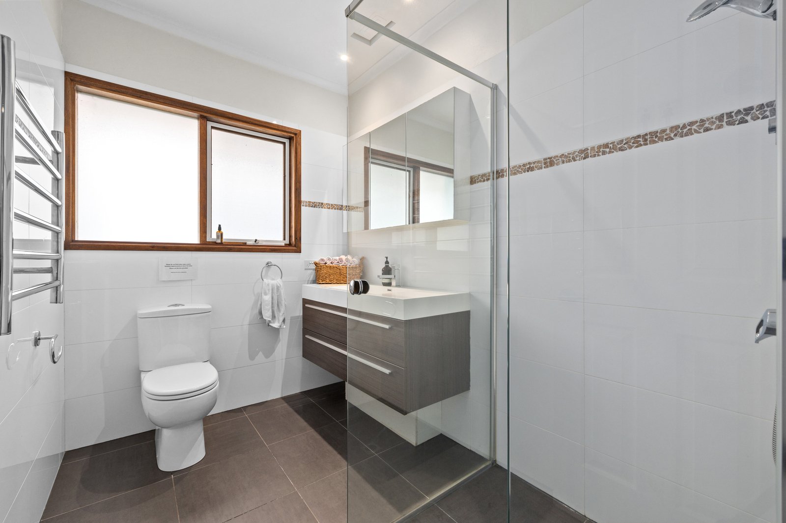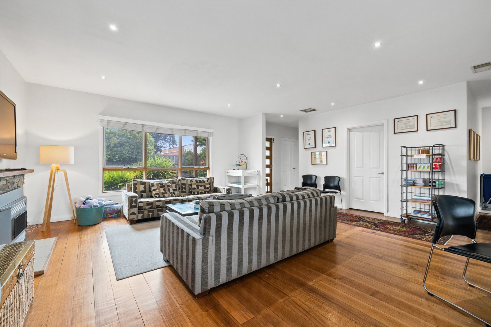 Impeccably presented and immediately appealing thanks to its smartly rendered façade, the property includes a central open plan living/dining or reception zone and contemporary gourmet kitchen with quality appliances – including a Bosch oven, gas cooktop and stainless steel dishwasher.