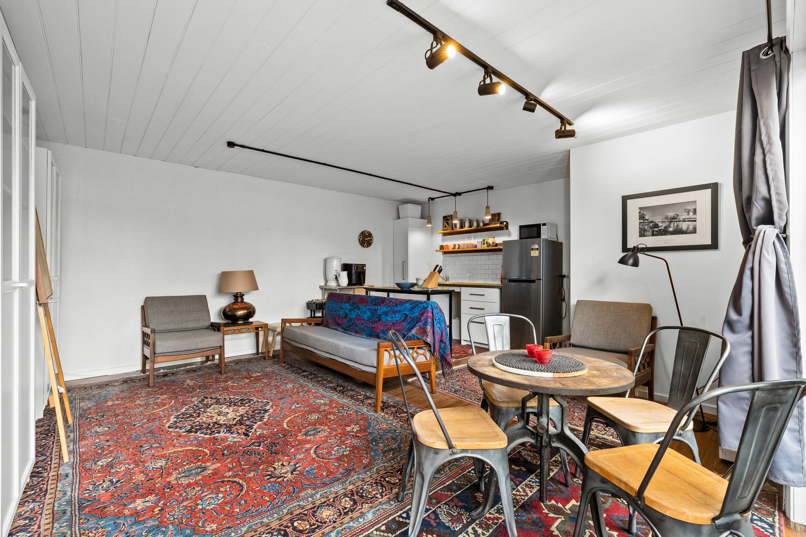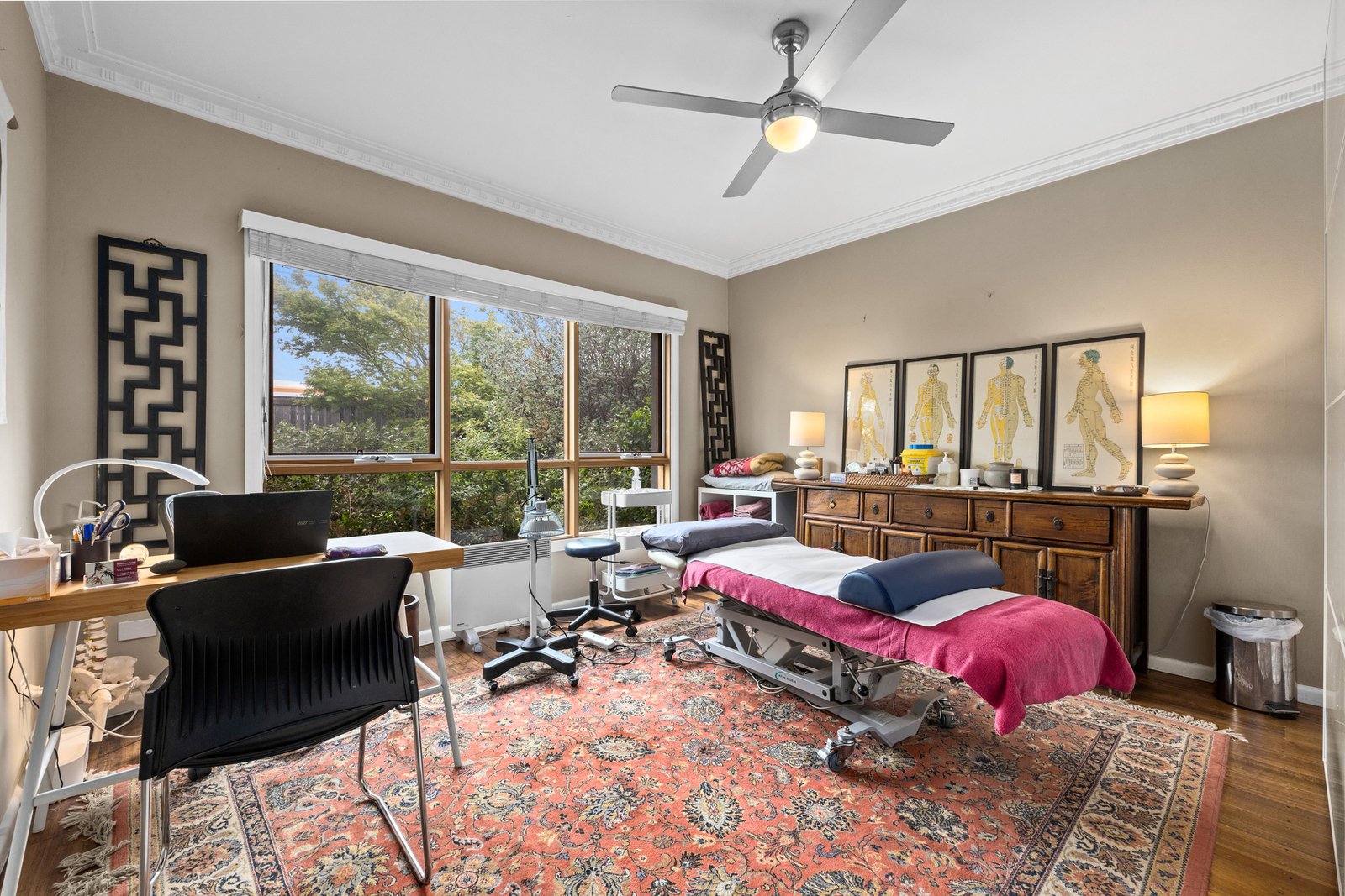 Three bedrooms or consulting rooms (with sinks) and two bathrooms are also included, along with a large laundry room. Outside, a studio with two living areas, kitchenette and bathroom give options as a peaceful home office, teen retreat or creative space.