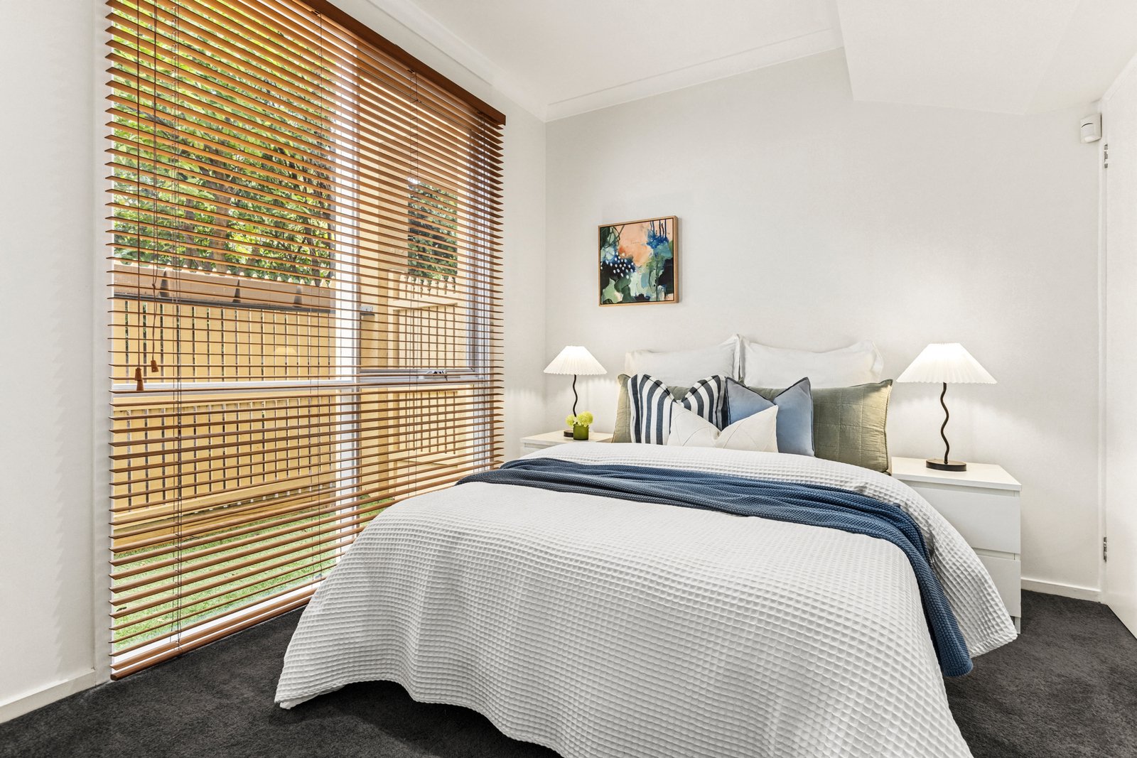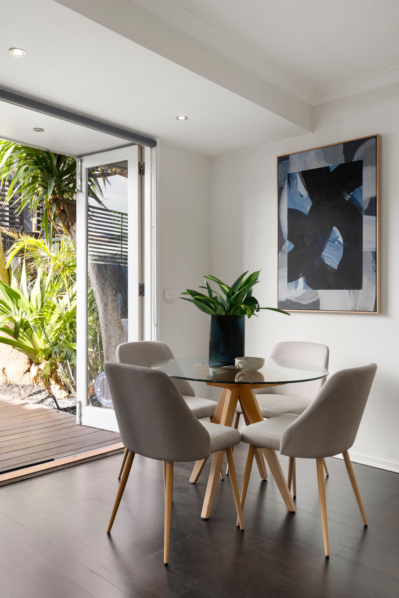 The open-plan living and dining domain is the heart of the home, where wide glass doors spill onto a beautifully landscaped courtyard designed for entertaining and effortless relaxation. Perfectly oriented for natural light, this inviting space connects seamlessly with a modern kitchen featuring stone benchtops, quality appliances, and ample storage — ready for everything from casual breakfasts to evening dinner parties.