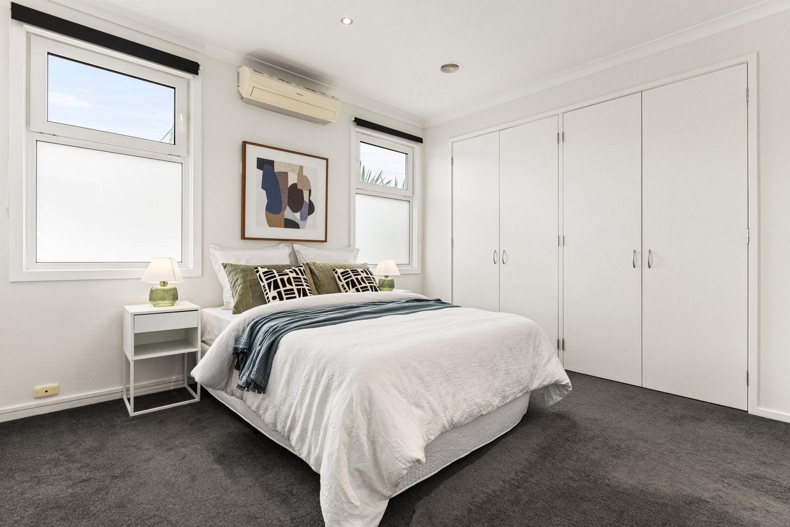 Beyond the secure entrance and private front courtyard, a generous layout unfolds across two light-filled levels. The ground floor welcomes you with a flexible bedroom or dedicated home office, ideal for those working from home or seeking guest accommodation. A large laundry and powder room add functionality, while direct internal access from the double garage ensures both convenience and security — a rare and valuable inclusion in the heart of Elwood.