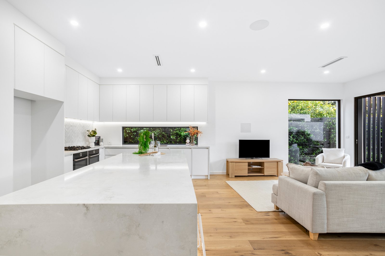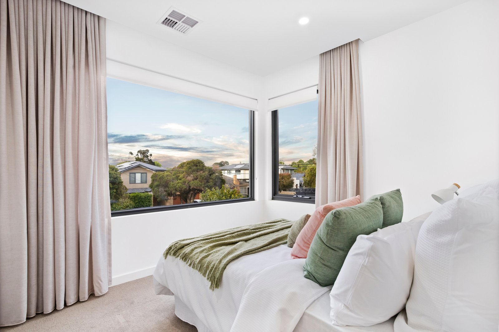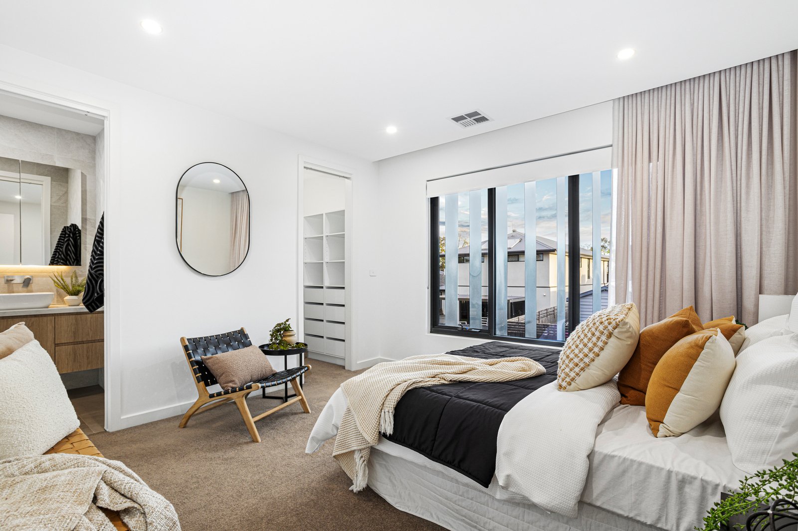 But it's the extra attention-to-detail that really stands out here - from heated towel-poles and under-cabinet lighting for the fully-tiled bathrooms, to rebated pelmets for the airy linen-sheers, to brushed-chrome tapware and tall double-glazing throughout.