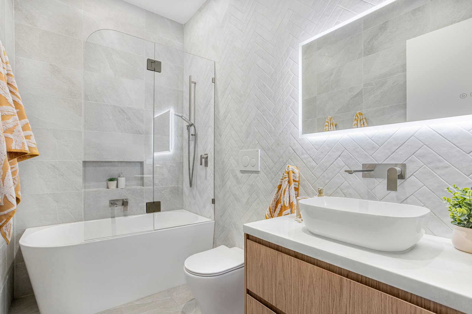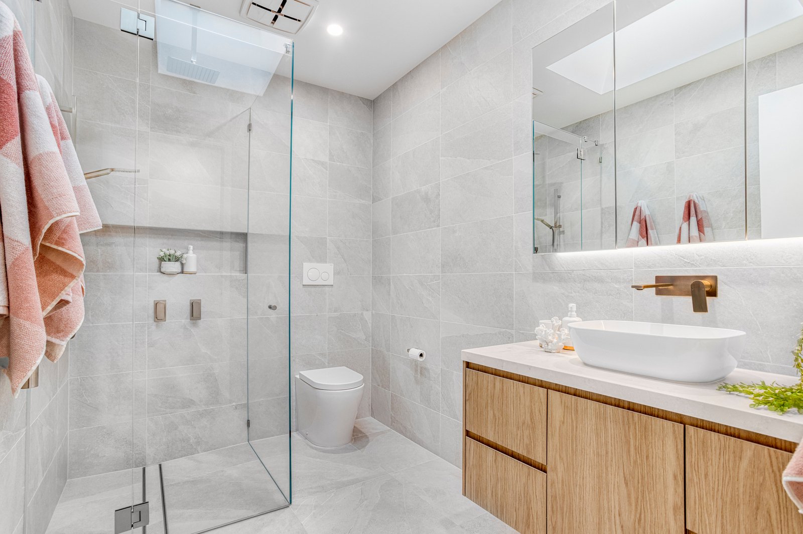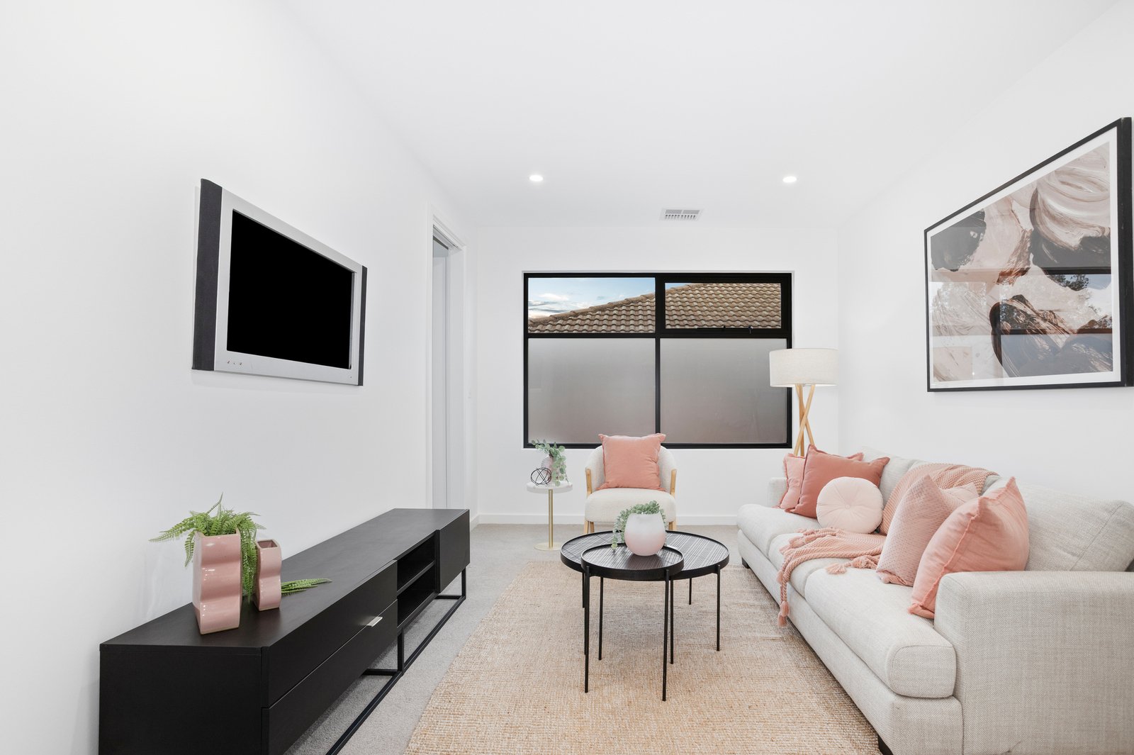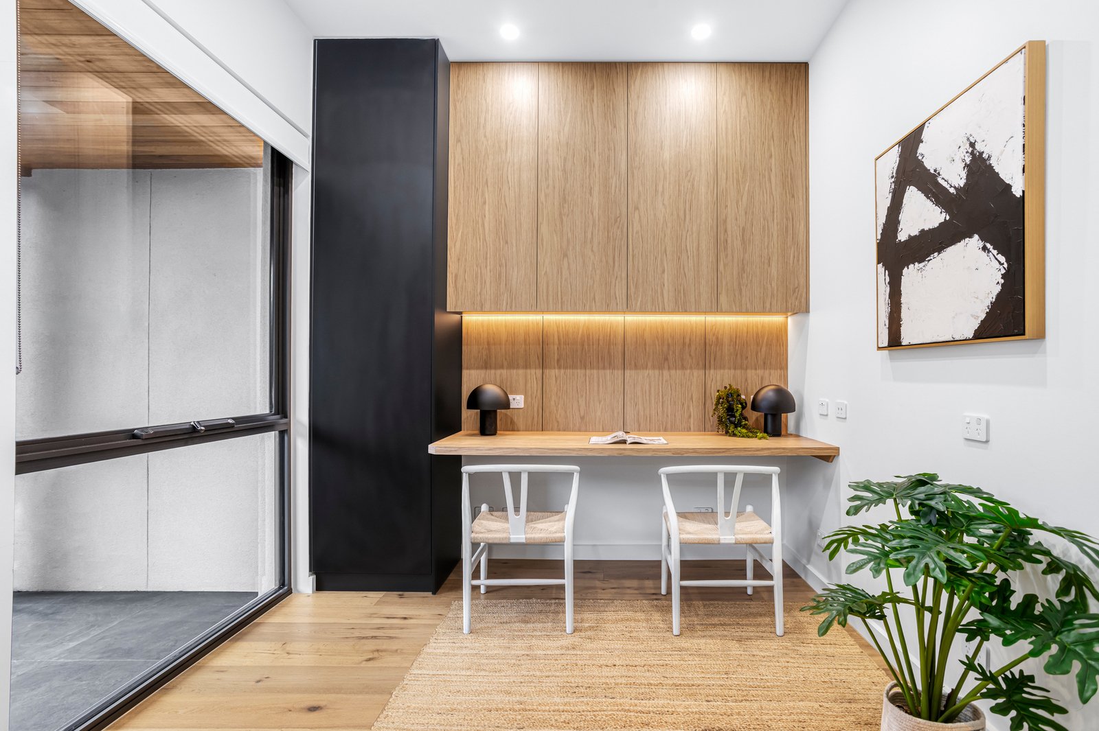 But it's the extra attention-to-detail that really stands out here - from heated towel-poles and under-cabinet lighting for the fully-tiled bathrooms, to rebated pelmets for the airy linen-sheers, to brushed-chrome tapware and tall double-glazing throughout.