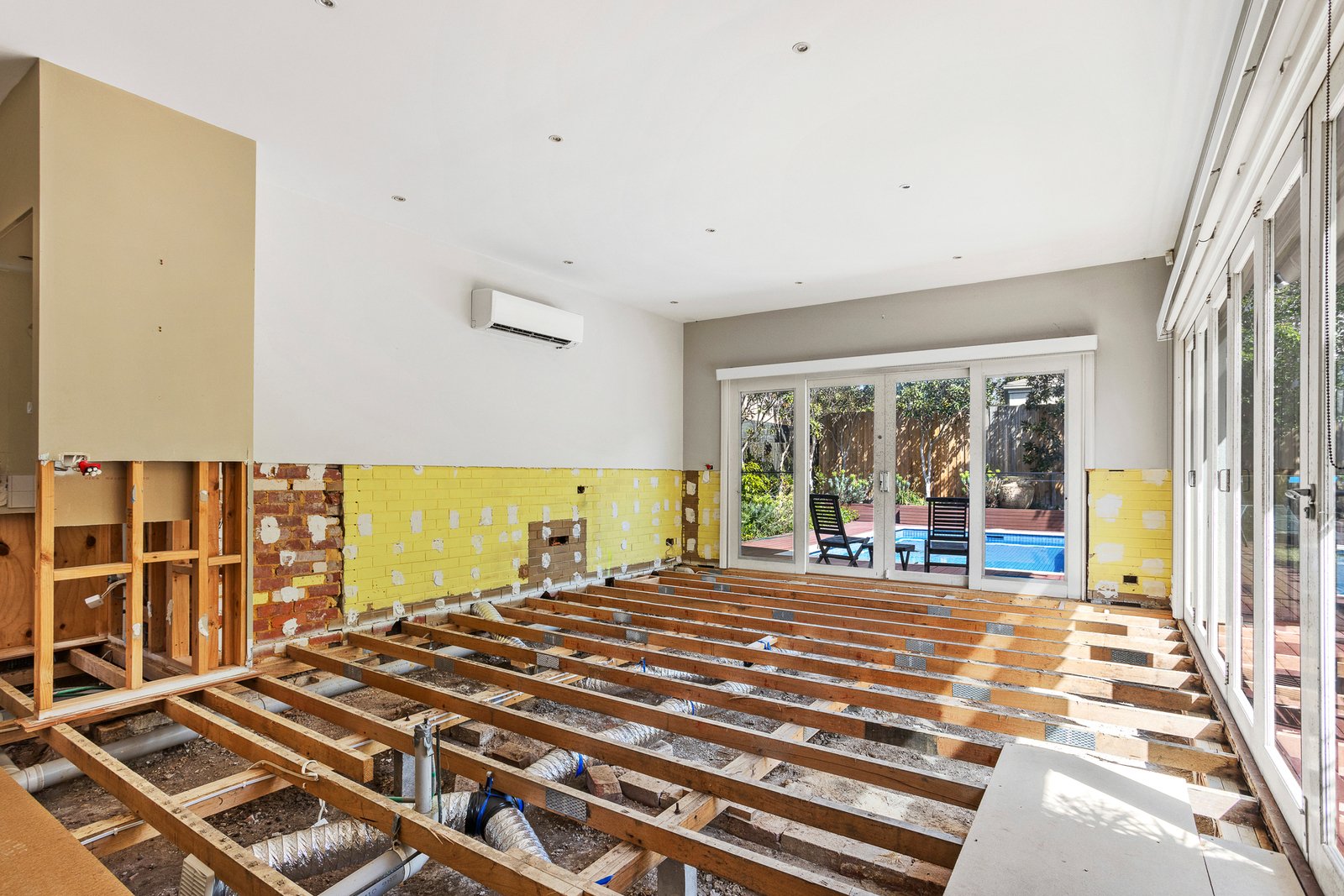 The family living zone flows to poolside entertaining within a private garden oasis, where a pergola and decking hint at the backyard’s future as a spectacular outdoor haven. A second accommodation wing offers flexibility with three additional bedrooms or a sun-filled home office, all complemented by a generous bathroom ready to be outfitted with contemporary fixtures and prestige finishes, allowing the next owner to fully realise the home’s potential.