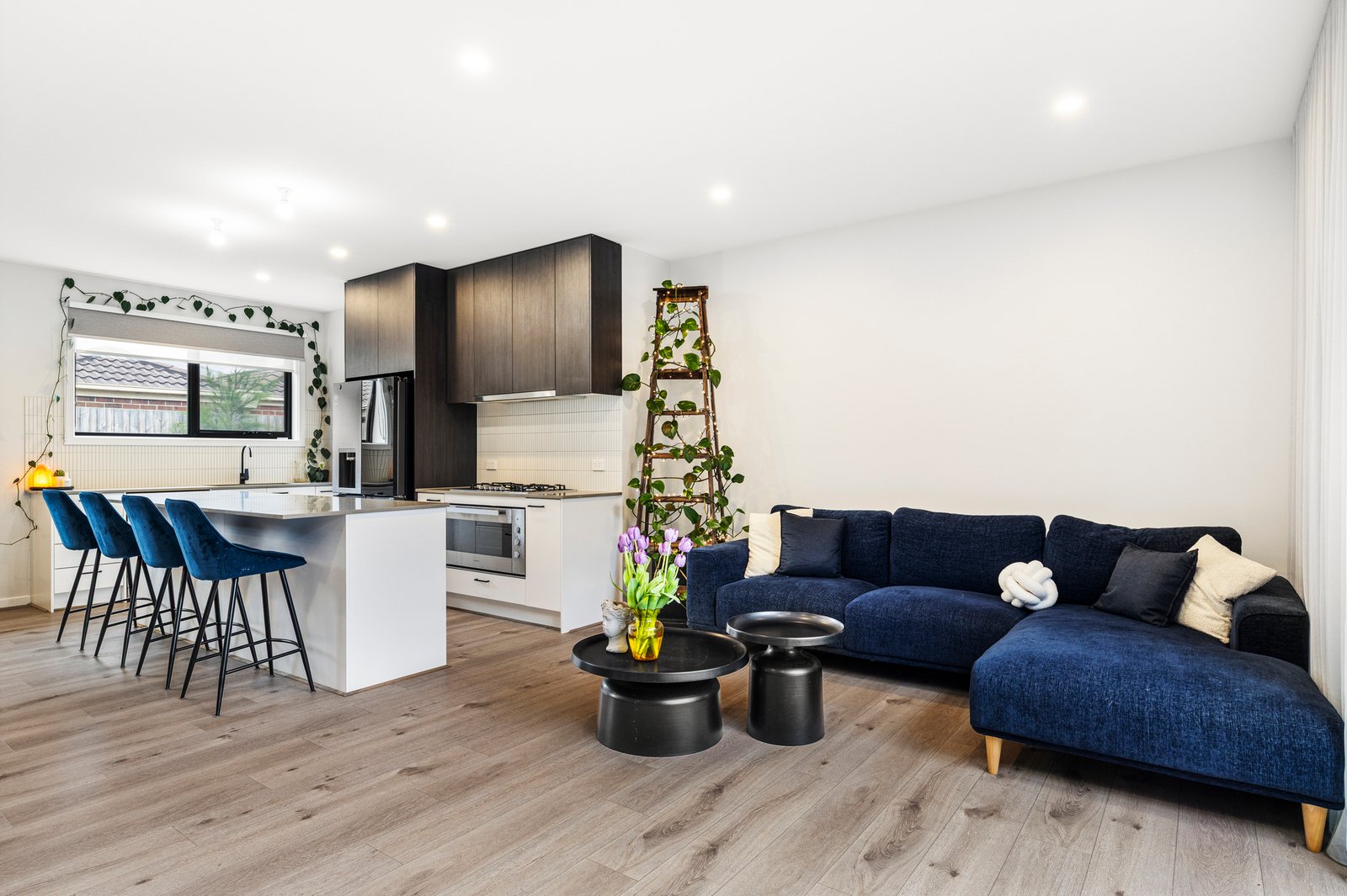 Beyond its striking modern façade, this sophisticated 3-bedroom, 2.5-bathroom, dual living zone residence offers contemporary luxury with turnkey appeal. With your own street frontage, this sublime sanctuary is completely freestanding with a northern aspect and alfresco allure. Sheer floating curtains, sleek accents and beautiful sunshine create an inviting atmosphere, where generous open-plan living and dining extends onto a private alfresco for effortless entertaining. The impressive kitchen features a long island and stone surfaces, joined by abundant storage, including a walk-in pantry, enhanced by a 900mm oven and plumbing for the fridge. Upstairs provides the perfect kids’ retreat with a spacious second living area, two robed bedrooms and a stylish family bathroom with floating vanity, a separate shower, bath and adjacent toilet. The master bedroom enjoys a coveted ground-level position, a serene sanctuary with its sleek double vanity ensuite and walk-in robe. A guest powder room, instant hot water, zoned reverse-cycle heating and cooling throughout, and a double remote garage with internal access complete this contemporary home. Stroll to bus stops, the Austin Road shops, St Anne’s Primary School and East Seaford Reserve. Playgrounds, the Peninsula Link Trail and footbridge access to the Seaford Wetlands are at your fingertips. Minutes to Seaford Village, the station, freeways and breathtaking beaches.