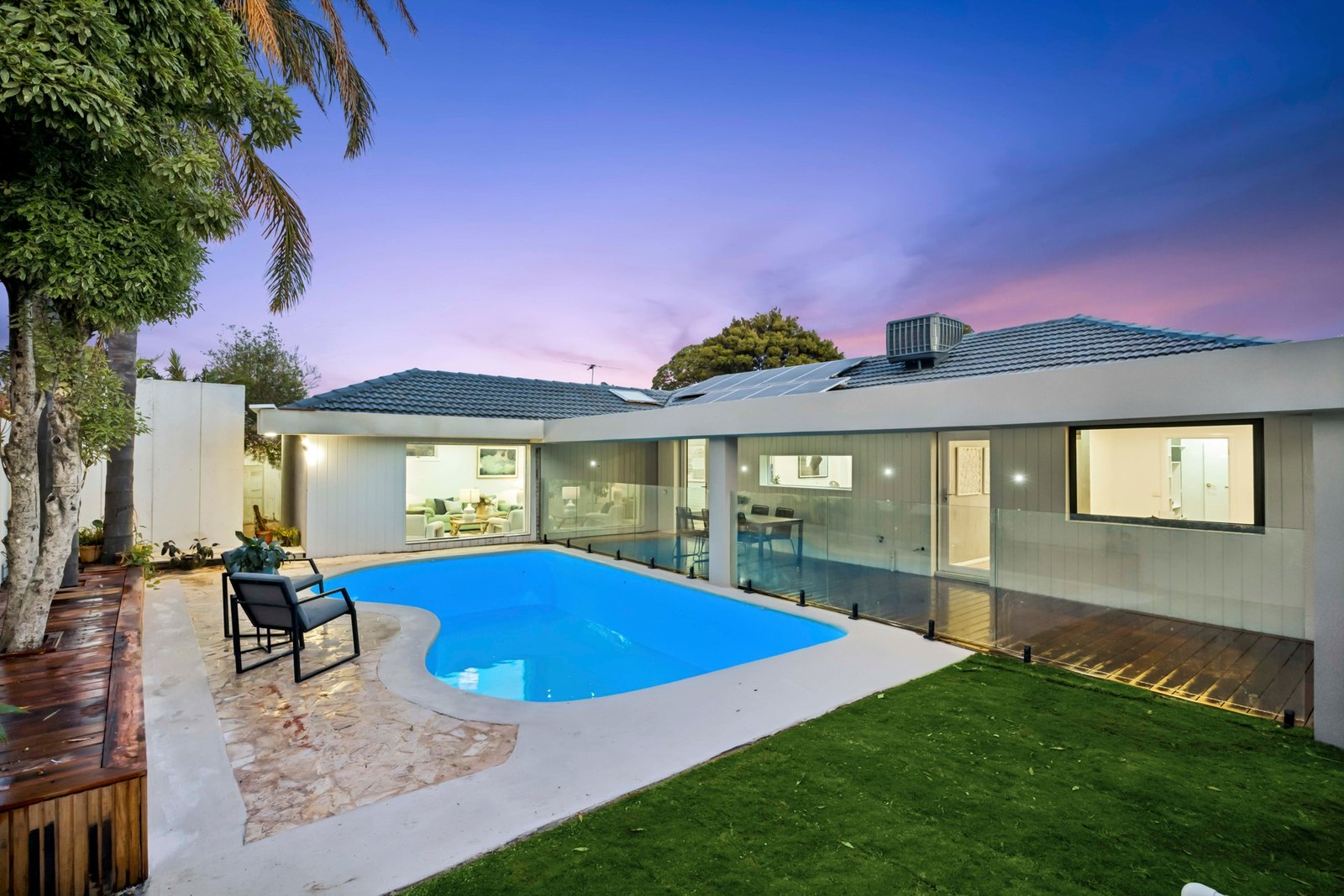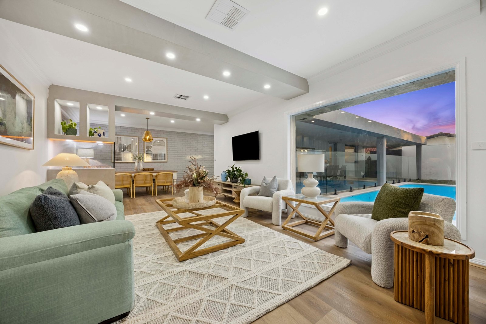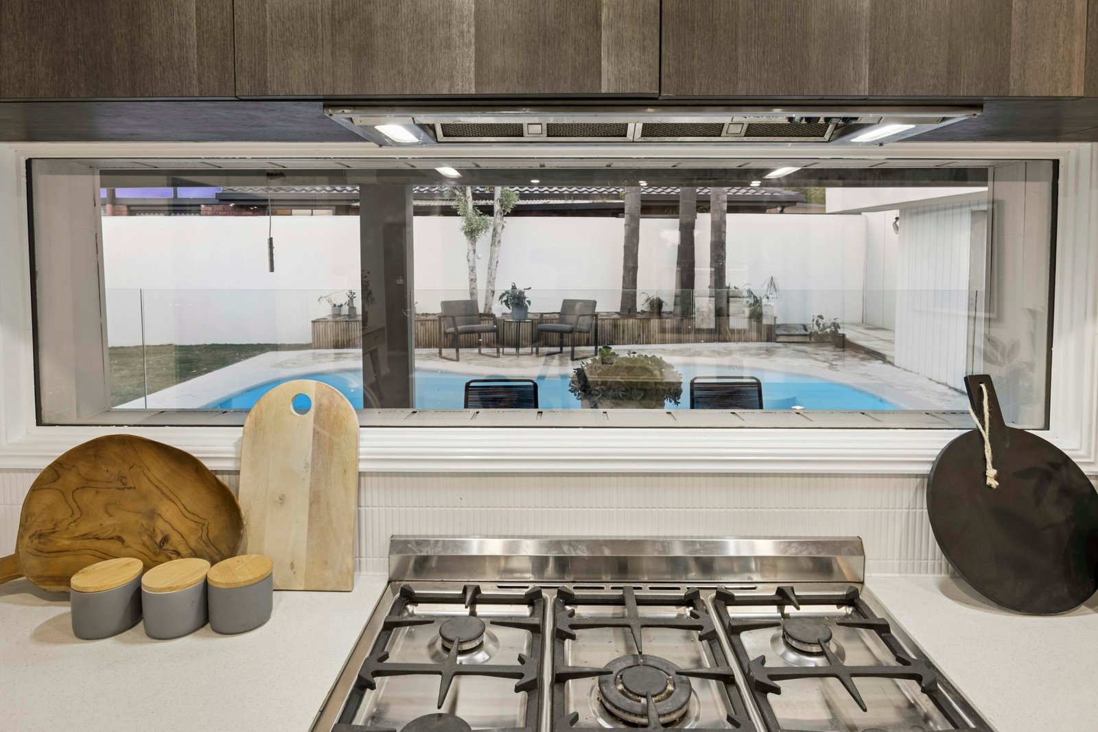 Even the outdoors are optioned up to the highest standard with invisible glass-fencing, a daybed-bench and outdoor shower for the heat-pump heated pool, and a 17-panel solar-system to keep costs down. With an auto-garage on an exposed-aggregate driveway, fresh new lawns front and rear, and access on both sides, this state-of-the-art home even offers work/life balance with a separate studio-style home-office.