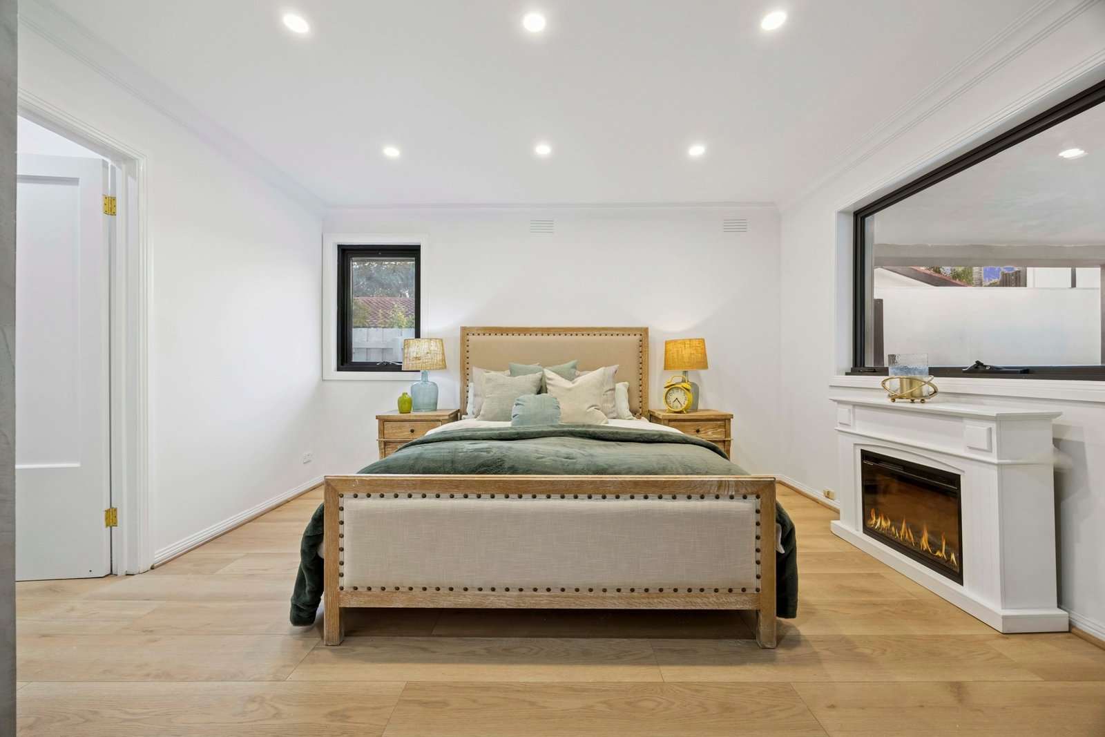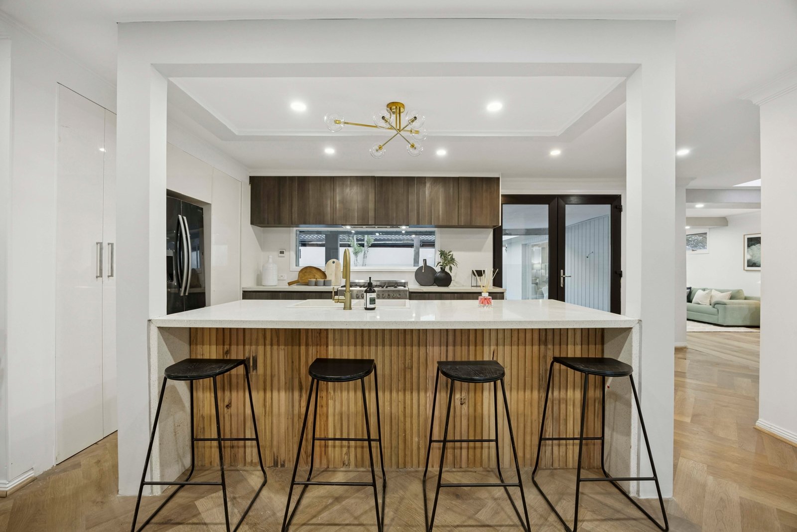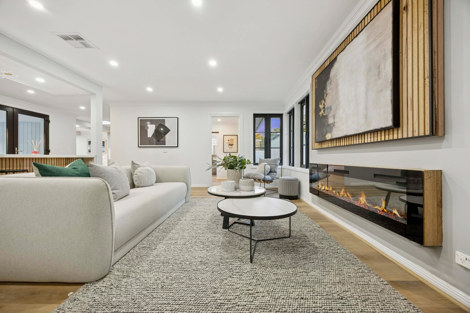 Appointed to the high standard with a 900mm Baumatic range and integrated dishwasher beyond the waterfall-edge kitchen-bench, there's floor-to-ceiling tiling for most bathrooms, stone benchtops plus wideboard floors in traditional and herringbone formats, Venetian-plaster feature walls, and extensive new double glazing. Centrally heated and cooled with in-floor heating for kitchen and bathroom areas, and three warming electric-fireplaces (one for each zone plus the deck-access principal-suite), this prestige-appointed home features built-in robes for every bedroom plus a deep wall of storage for the family zone, and touch power-switches plus C-pin GPO combi-power/USB points.