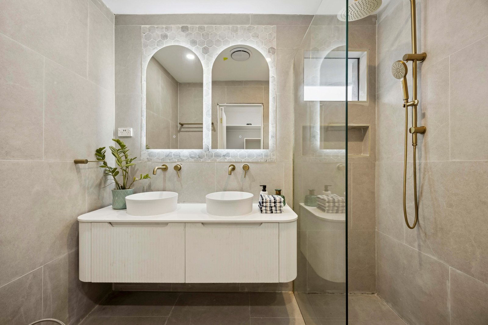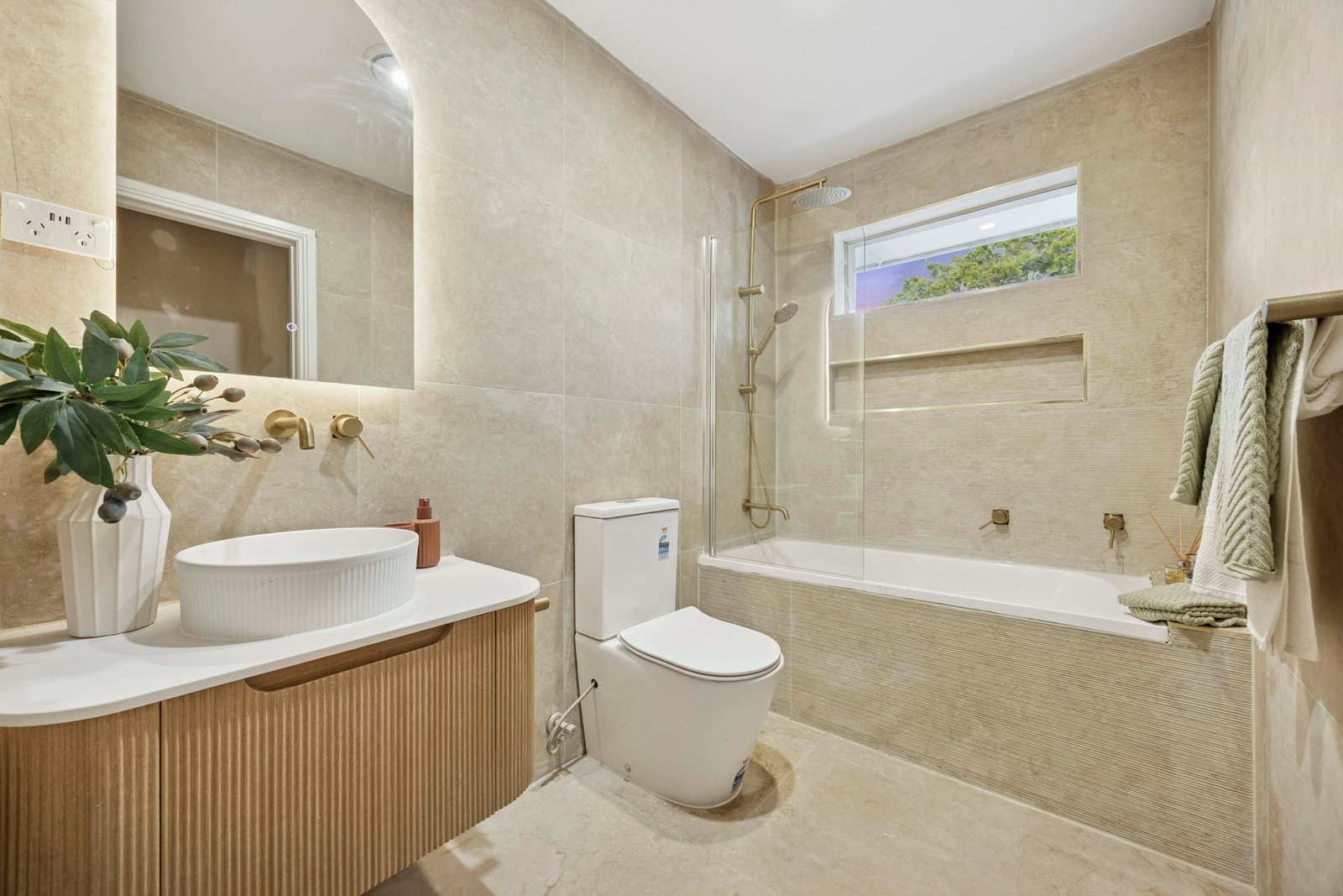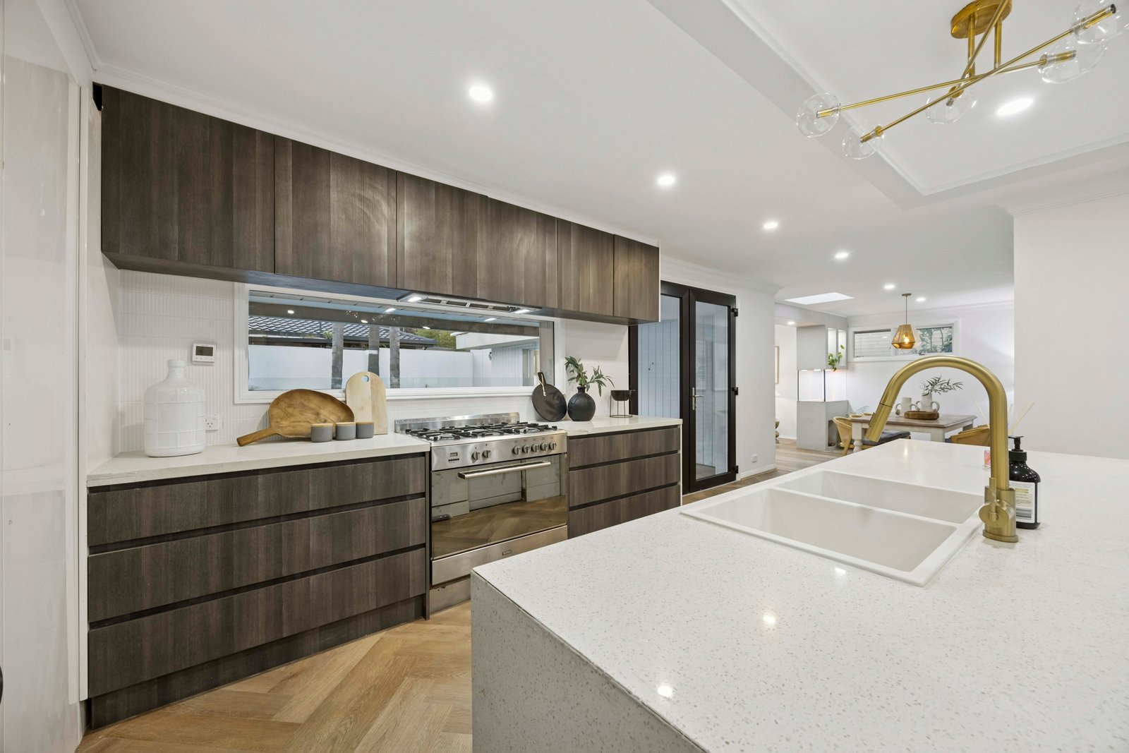 Appointed to the high standard with a 900mm Baumatic range and integrated dishwasher beyond the waterfall-edge kitchen-bench, there's floor-to-ceiling tiling for most bathrooms, stone benchtops plus wideboard floors in traditional and herringbone formats, Venetian-plaster feature walls, and extensive new double glazing. Centrally heated and cooled with in-floor heating for kitchen and bathroom areas, and three warming electric-fireplaces (one for each zone plus the deck-access principal-suite), this prestige-appointed home features built-in robes for every bedroom plus a deep wall of storage for the family zone, and touch power-switches plus C-pin GPO combi-power/USB points.
