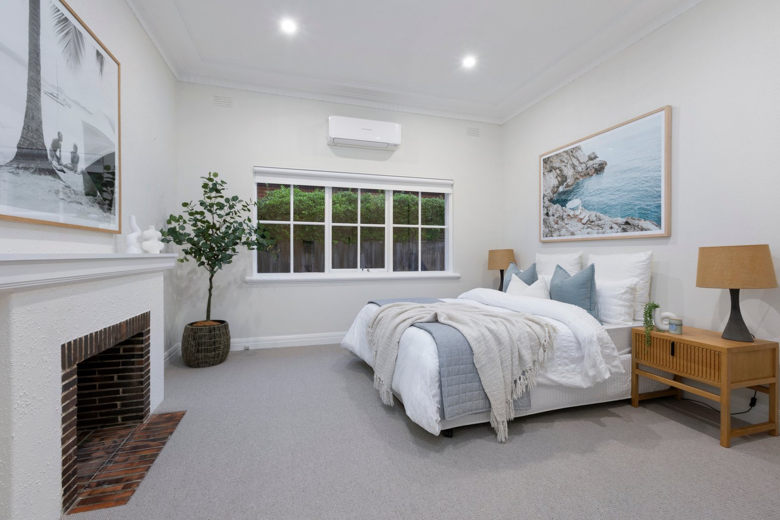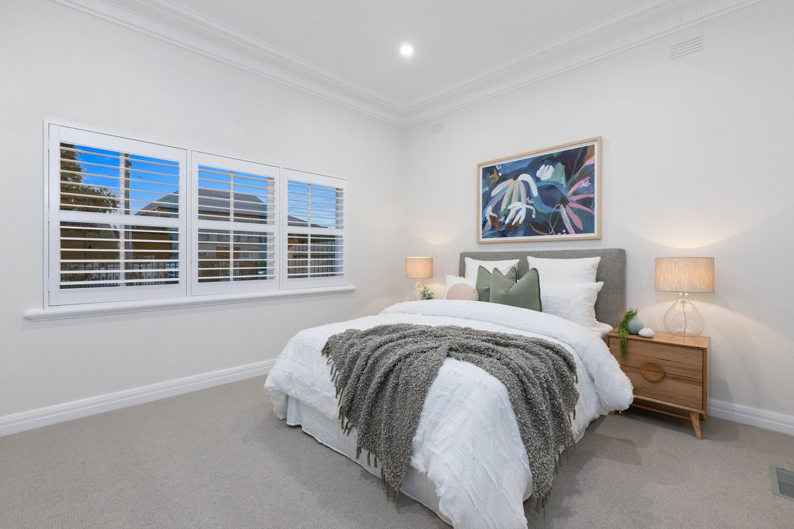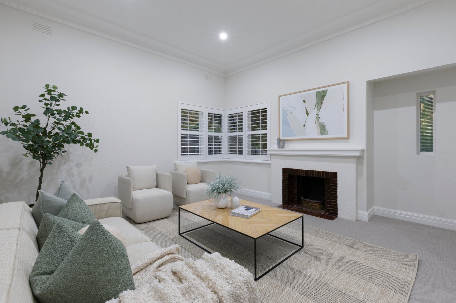 Vastly versatile with a plush master-suite with designer ensuite and dual robes (built-in and walk-in robes) plus a flexible 4th bedroom (ready to double as a quiet formal lounge), this entertaining home has living and dining spilling out through tall French doors to more living outside. Styled with superior Art Deco detail including lofty deep-corniced ceilings, etched-glass double-doors and vintage fireplaces as the backdrop to an artful renovation, this state-of-the-art home stars light Oak floors, the latest loop-pile carpets and plantation-shutters for front-facing windows.