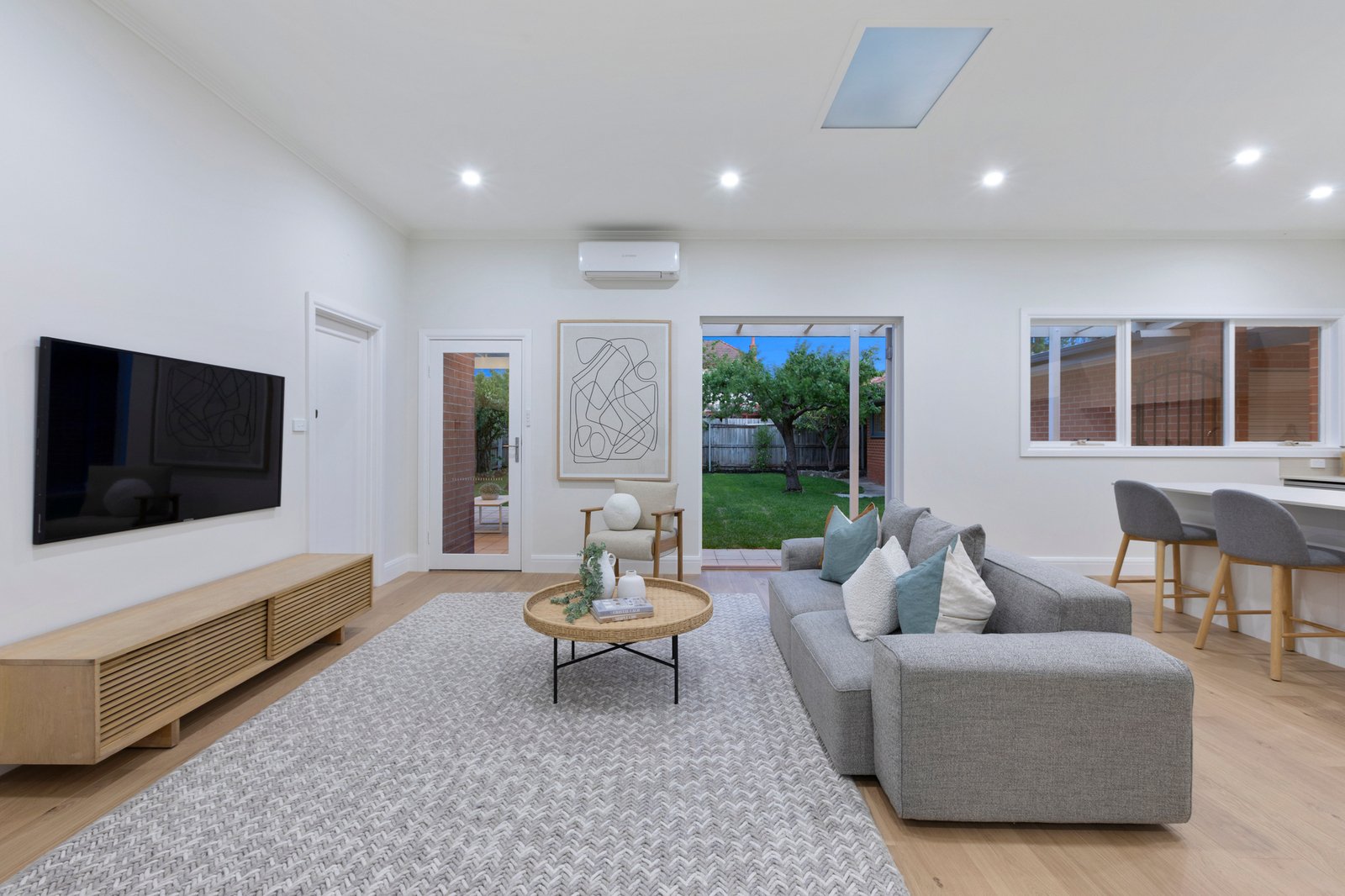 Find today's most sophisticated Art Deco style at one of Bentleigh’s all-time greatest lifestyle locations. Unfolding beyond a curved portico entry at a prized off-Centre Rd address, this impeccably renovated solid-brick home adapts to every stage of family life with up to four bedroom, up to two living zone, two bathroom accommodation!