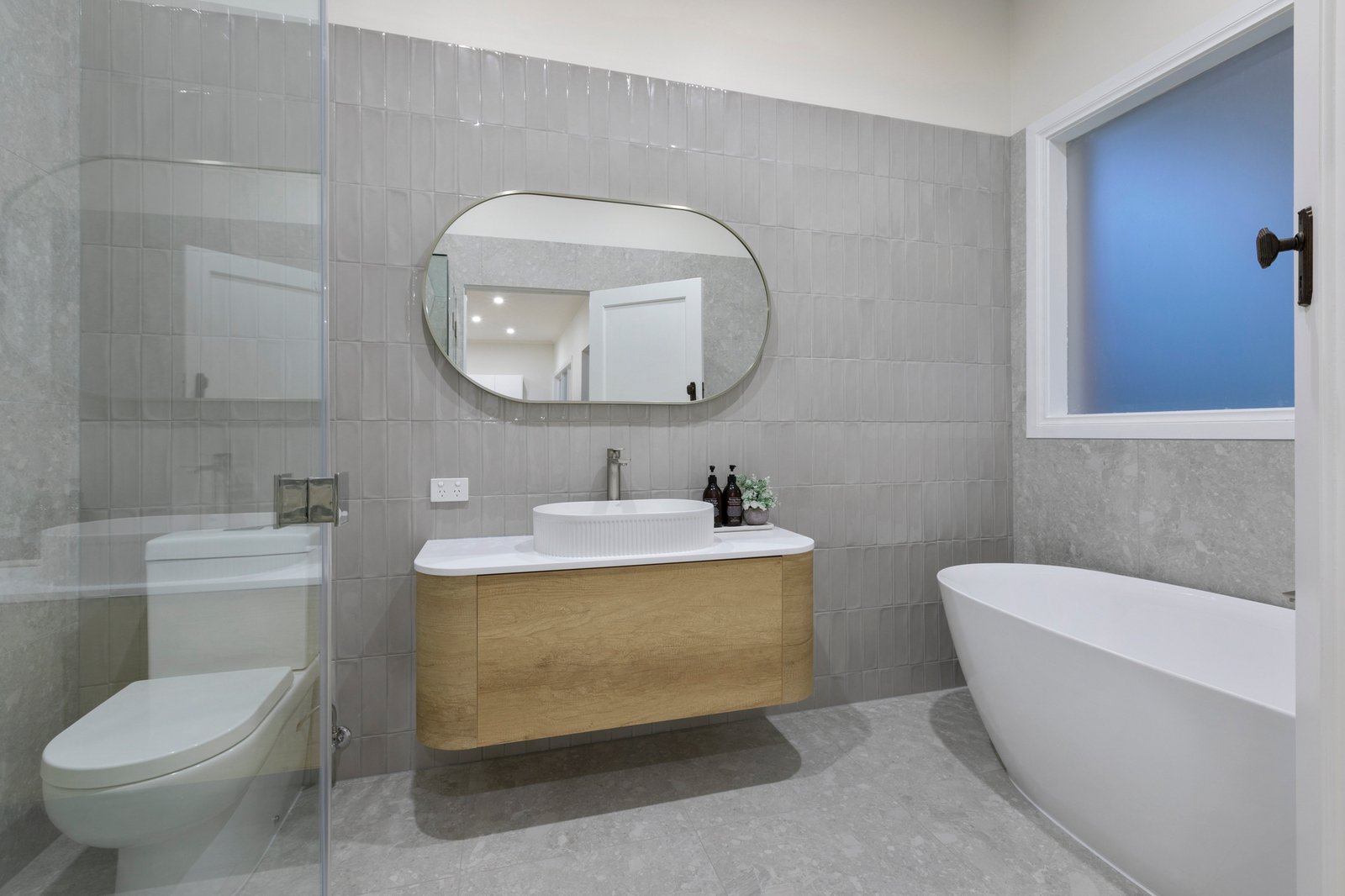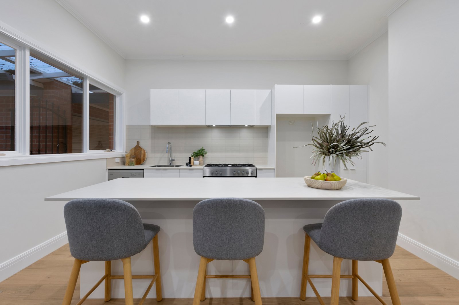 Starring a timeless white Consentino Dekton stone kitchen with a 900mm range, this centrally heated and reverse-cycle air-conditioned home's interiors echo streamlined Art Deco detail with subtle terrazzo-look porcelain tiles and curvaceous wall-hung vanities for each bathroom and a sculptural freestanding bath for the main. Even the outdoors combine today's lifestyle and yesterday's style with a room-sized undercover al fresco area, a carport and a two-car garage (with plenty of space and substance to reconfigure with a retreat or home-office) ...all set in old orchard gardens with established fruit trees to harvest and lush new lawns for kids to play.