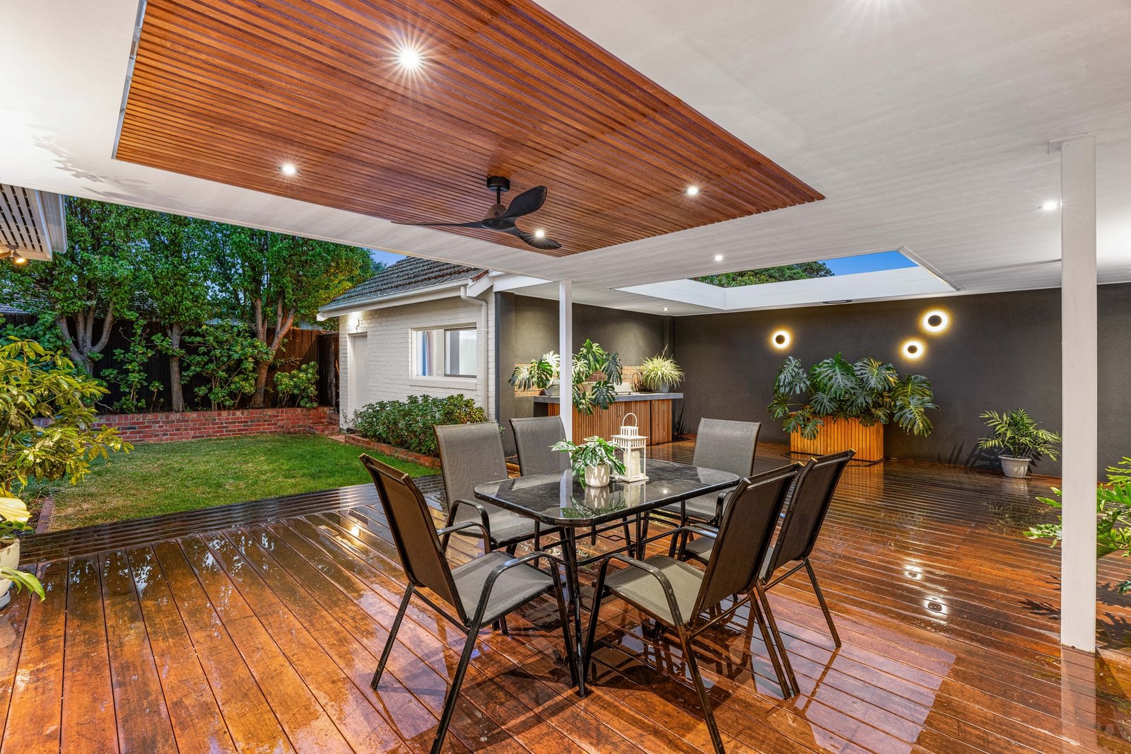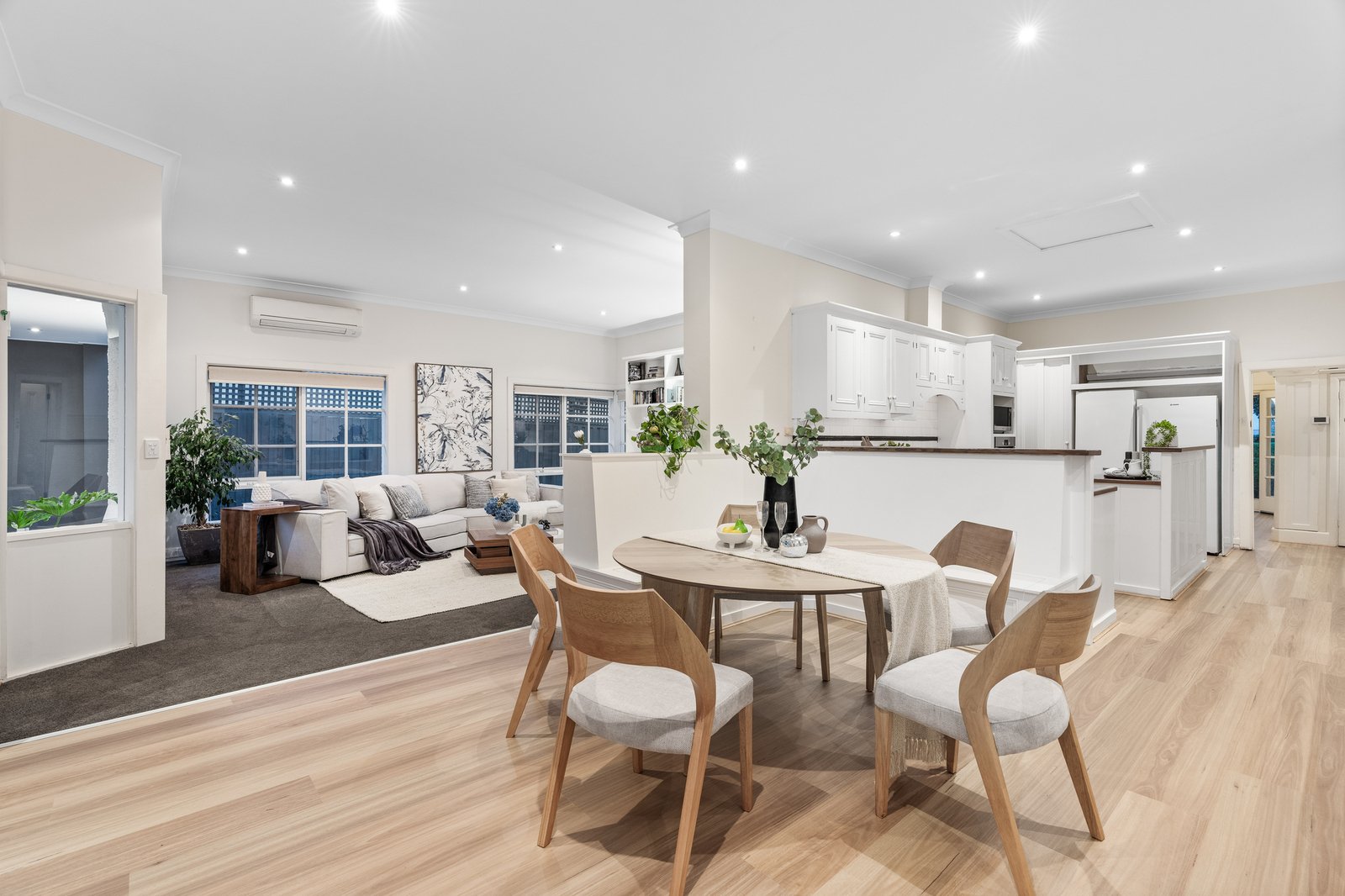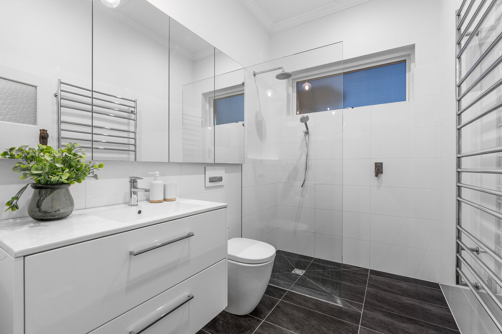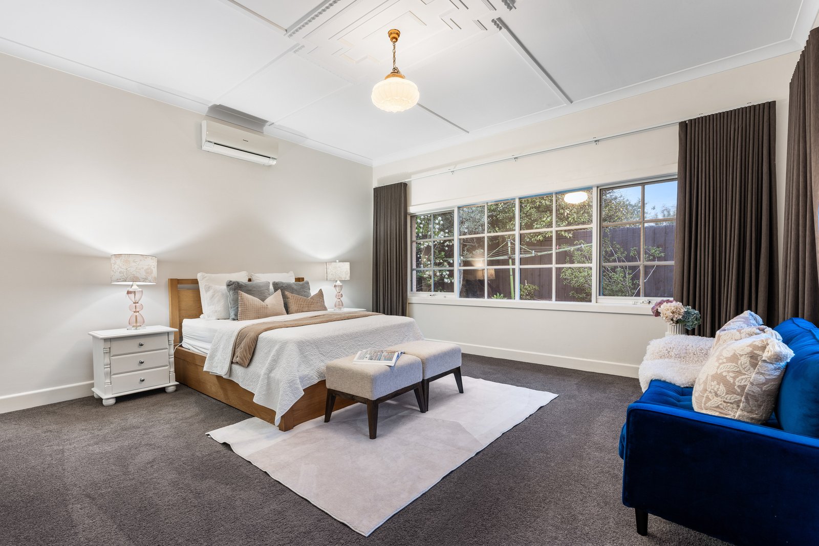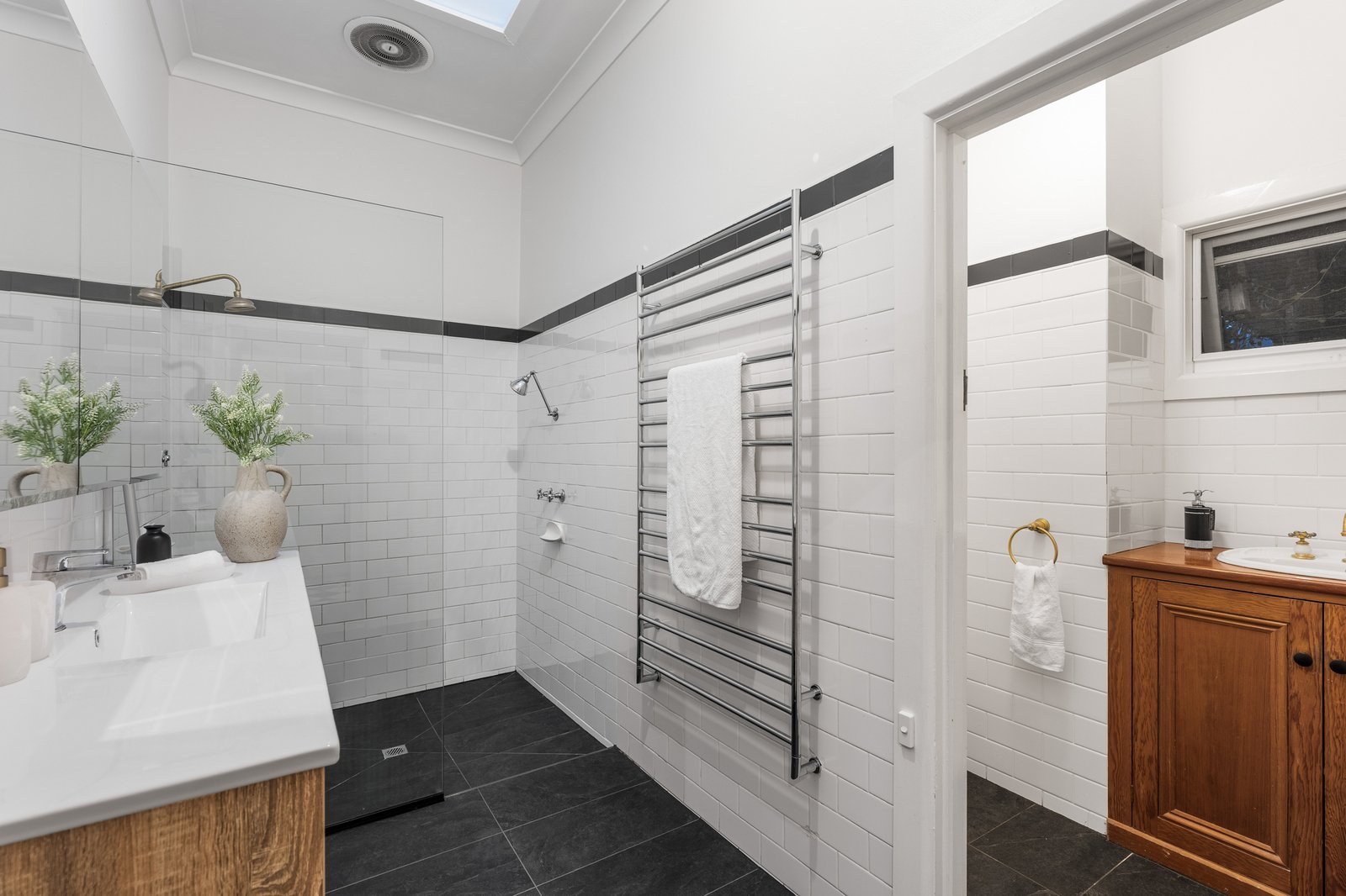 Offering a wealth of contemporary comfort with big bedrooms (with tall fitted-robes) and stylish bathrooms (with heated towel-rails and walk-in showers), this centrally heated and reverse-cycle air-conditioned home is richly detailed from its terrazzo-floored arched portico, to its fretwork-arch and lofty decorative ceilings, to its sparkling storybook leadlight lit by northern sun.