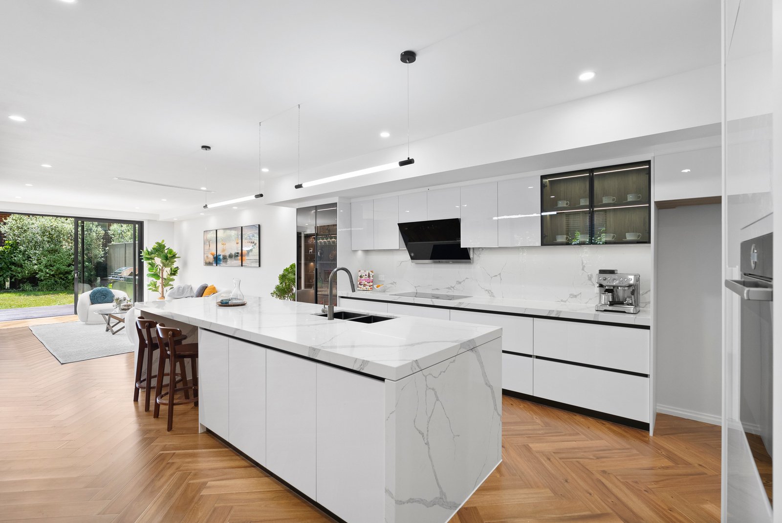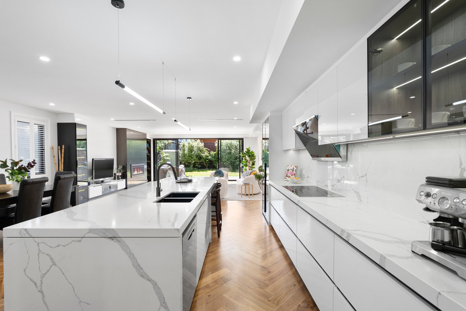 Showcasing clean contemporary design and a commanding street presence, this exceptional family residence redefines modern entertaining and everyday comfort. A palette of crisp white tones, exquisite parquetry floors, and bespoke finishes sets the tone for a home of sophistication and ease.