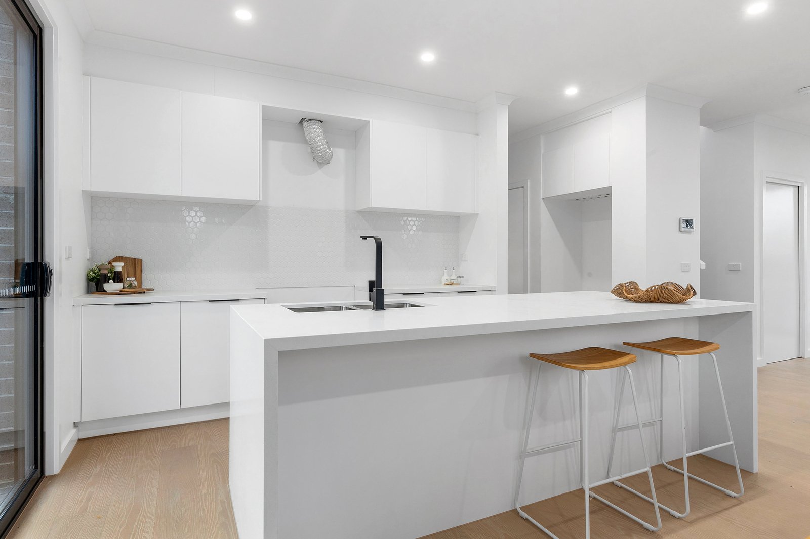 Architecturally designed to harness light and space in spades, this contemporary creation is bestowed with street front prominence whilst being wrapped in its own gardens. Together with dual living zones, the flexibility of dual master suites (one on the ground floor) and a double garage, this brand new townhouse will accommodate your family with the space you need amongst the comforts you crave.