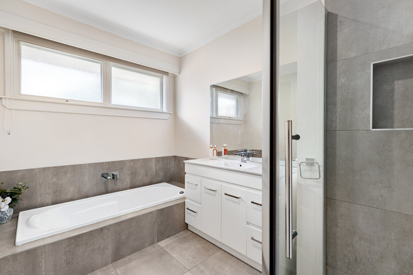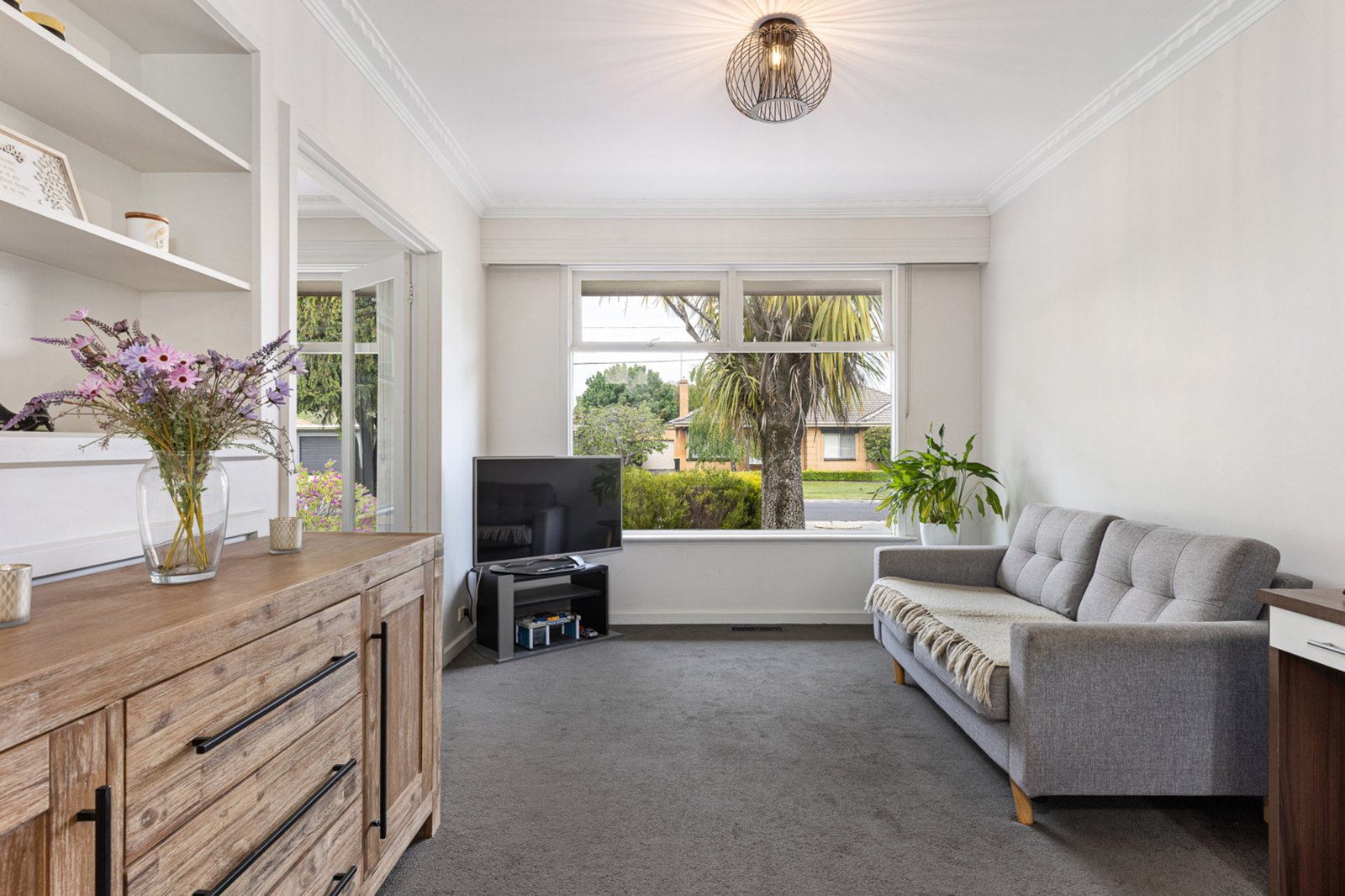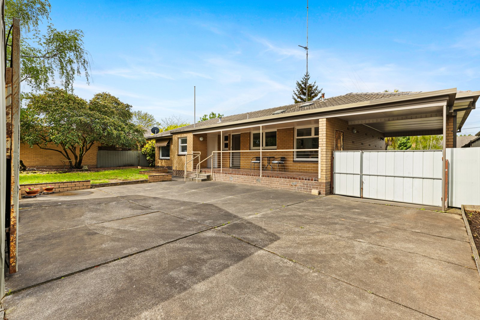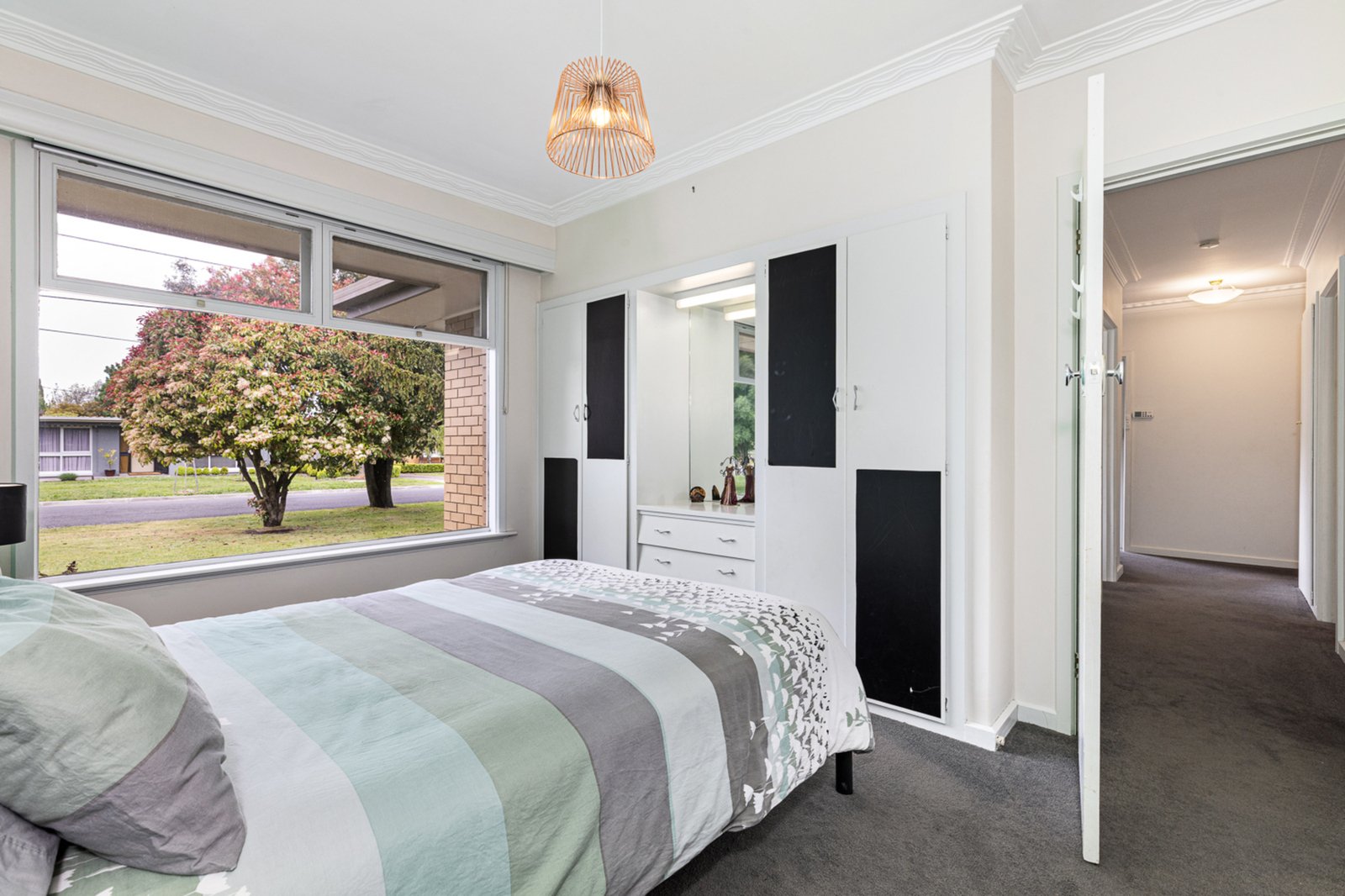 The home features three spacious bedrooms, each complete with built-in robes, while the central family bathroom offers a bath, shower, and vanity, with a separate toilet conveniently located nearby.