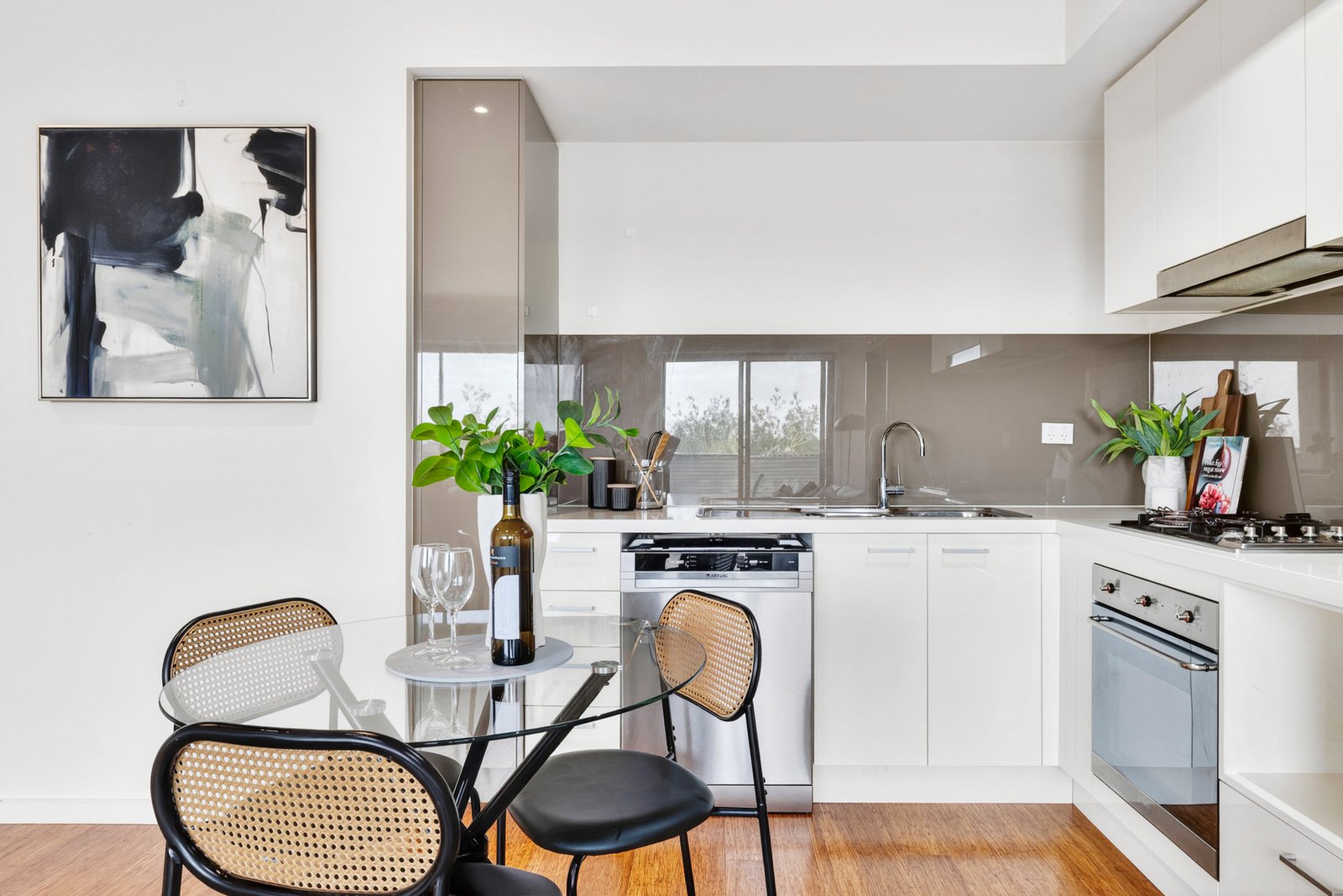 Perched on the top level of the exclusive Contessa complex, this spacious and light-filled one-bedroom apartment combines modern elegance, quality finishes, and lifestyle convenience. The open-plan living and dining area showcases sleek timber floors and a contemporary colour palette, seamlessly connecting to a beautifully appointed kitchen featuring stone benchtops and stainless-steel appliances. The generous bedroom includes built-in robes and is serviced by a stylish modern bathroom, offering both comfort and functionality.