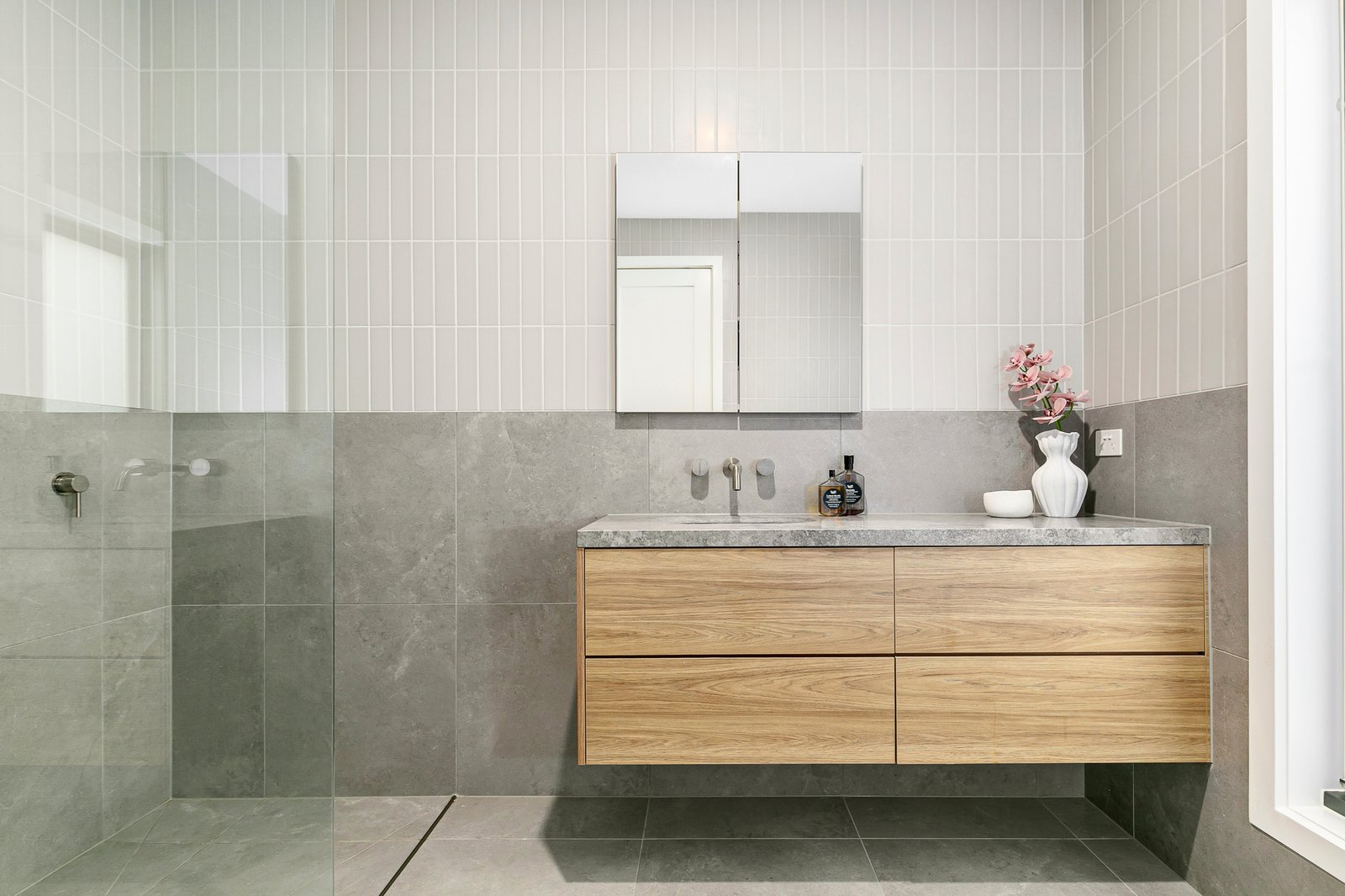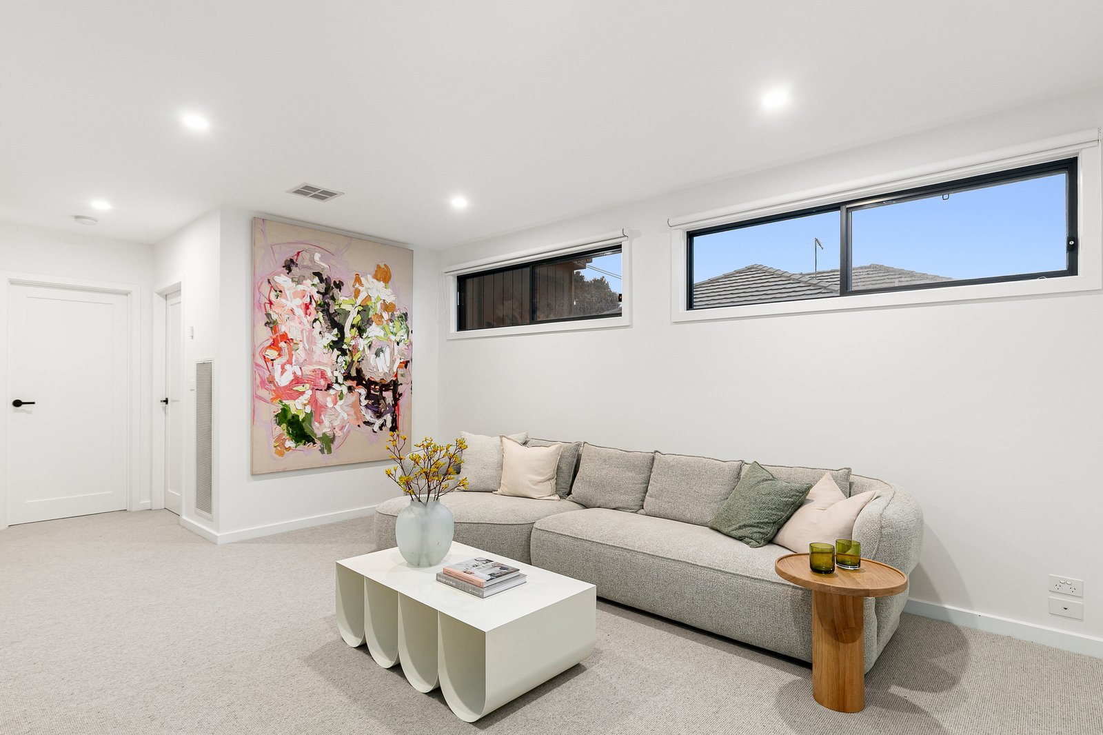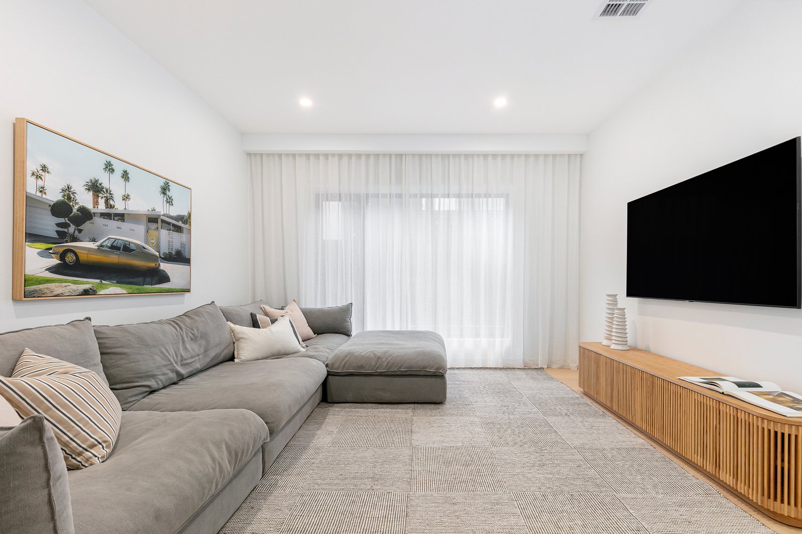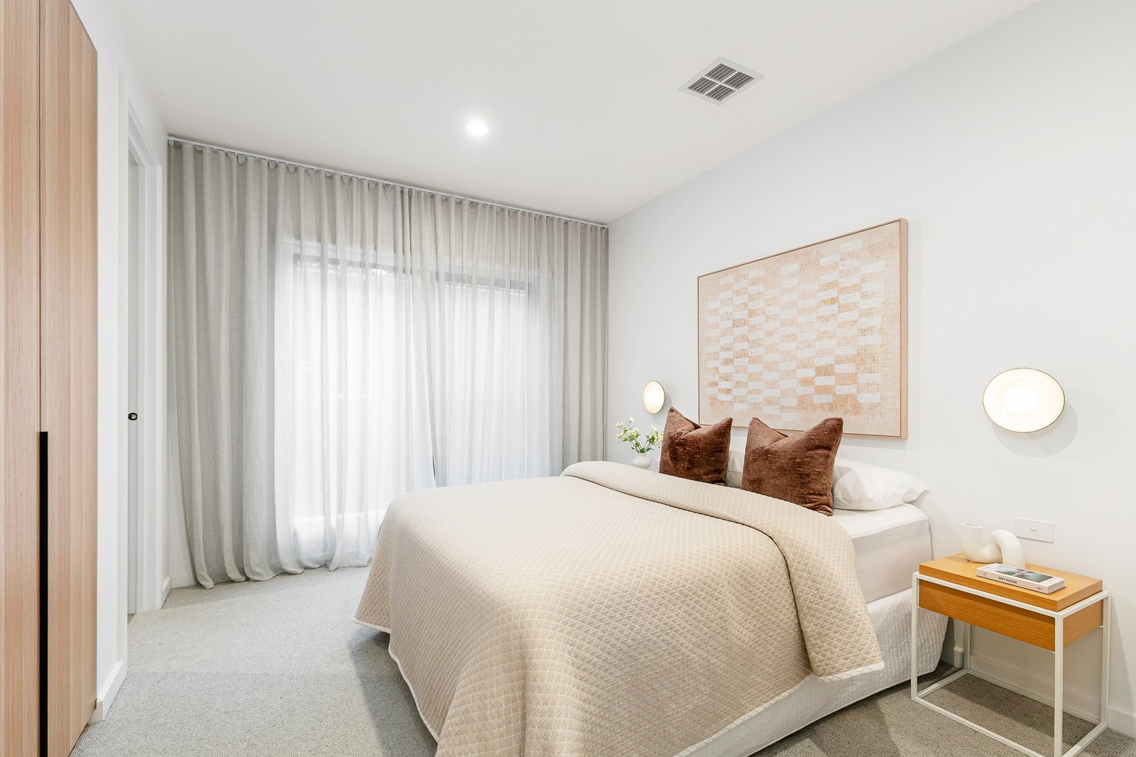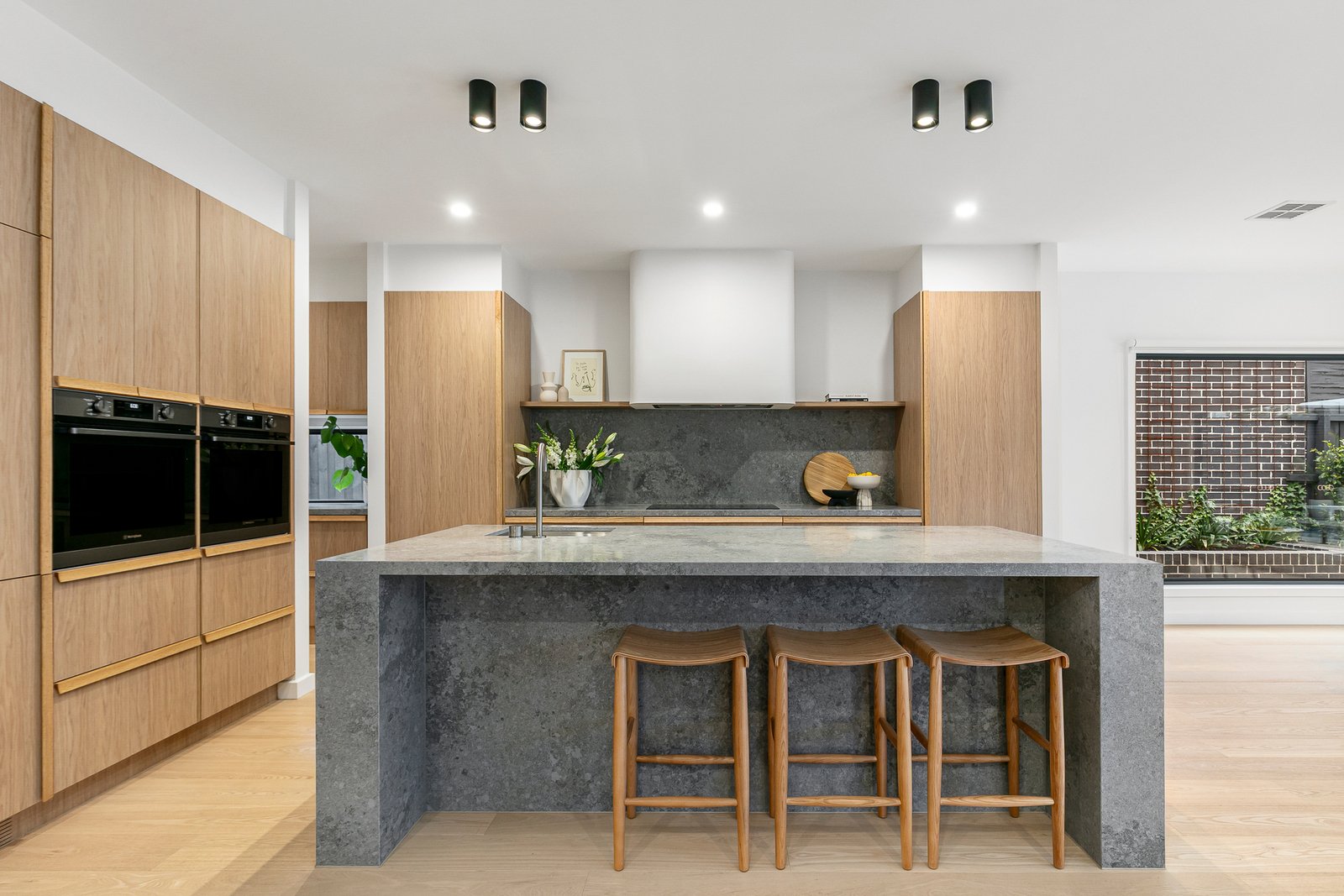 Every surface, every fixture tells a story of quality and care. Woodcut engineered oak flooring flows through the living spaces, while plush Carramar wool loop carpet adds softness and warmth to the bedrooms. The custom Polytec Woodmatt cabinetry throughout provides abundant storage wrapped in contemporary style, while ABI Interiors brushed nickel tapware in every kitchen and bathroom adds cohesive elegance.