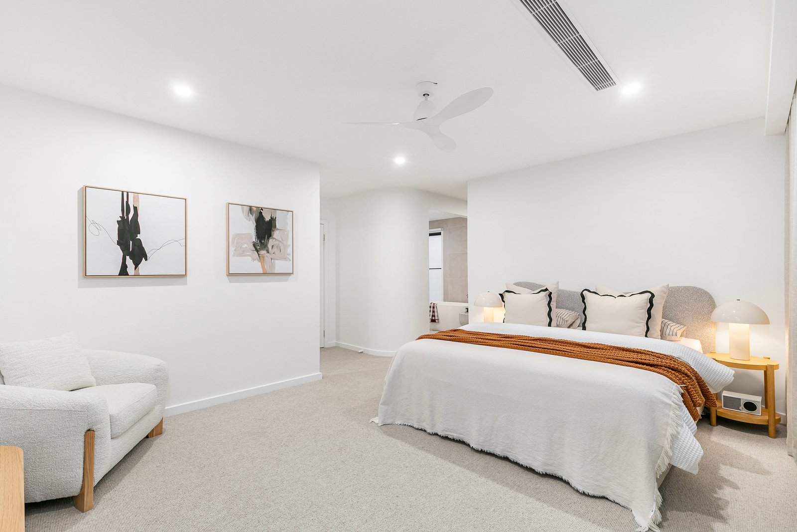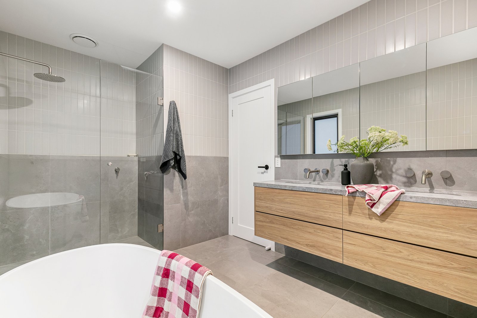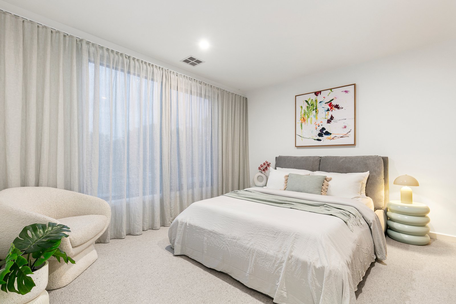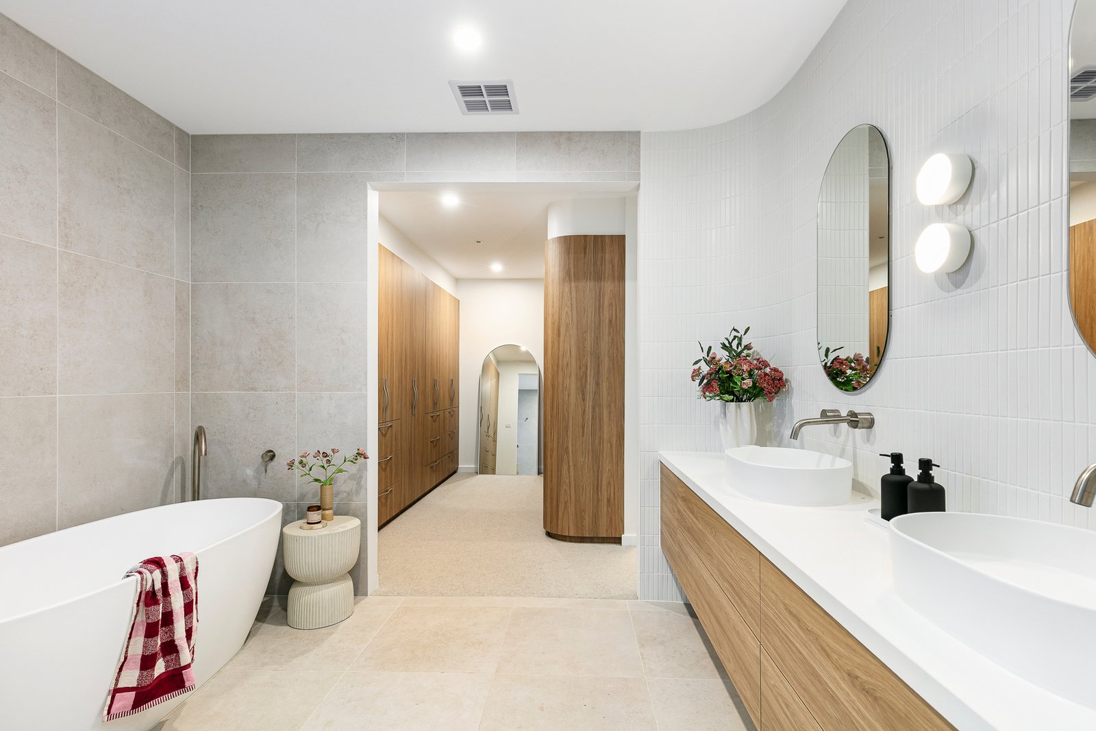 Ascend to the upper floor where tranquillity awaits. The palatial master suite is a true parents' sanctuary, featuring a generous walk-in wardrobe with custom walnut cabinetry that exudes warmth and sophistication and a spacious private ensuite with a freestanding bath. Wake each morning to views of Newport Lakes through your bedroom window - nature on your doorstep.