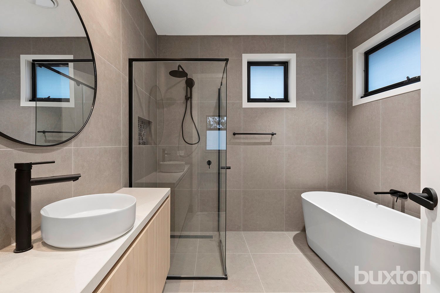 The upper-level is a dedicated sleeping zone and includes 3 robed bedrooms (luxurious main with fully-tiled twin ensuite/WIR) and deluxe bathroom.