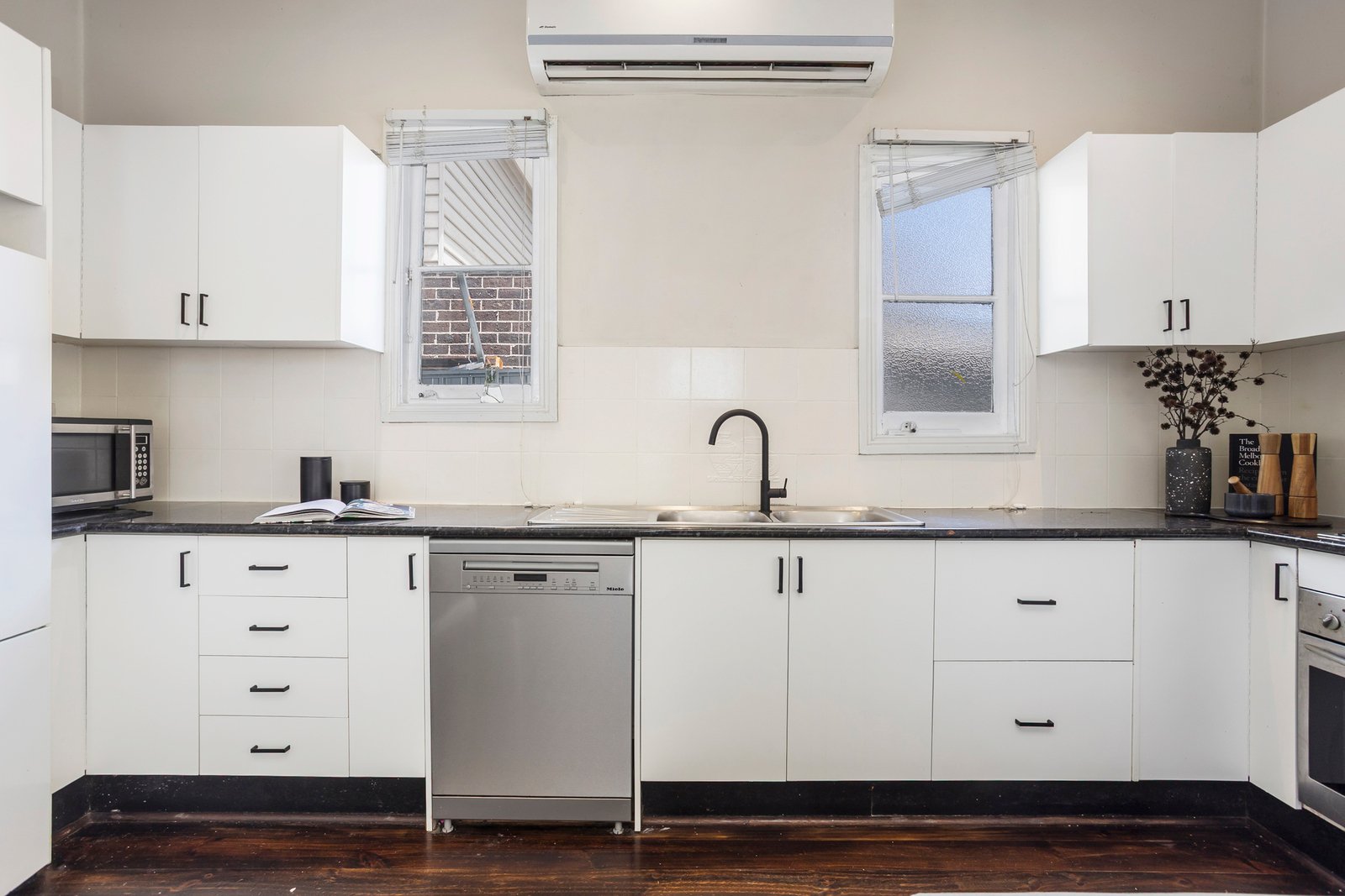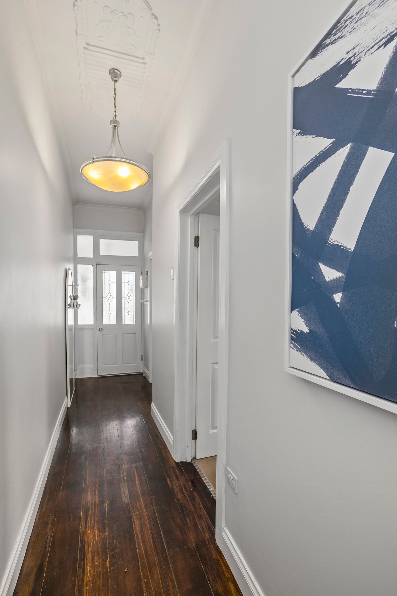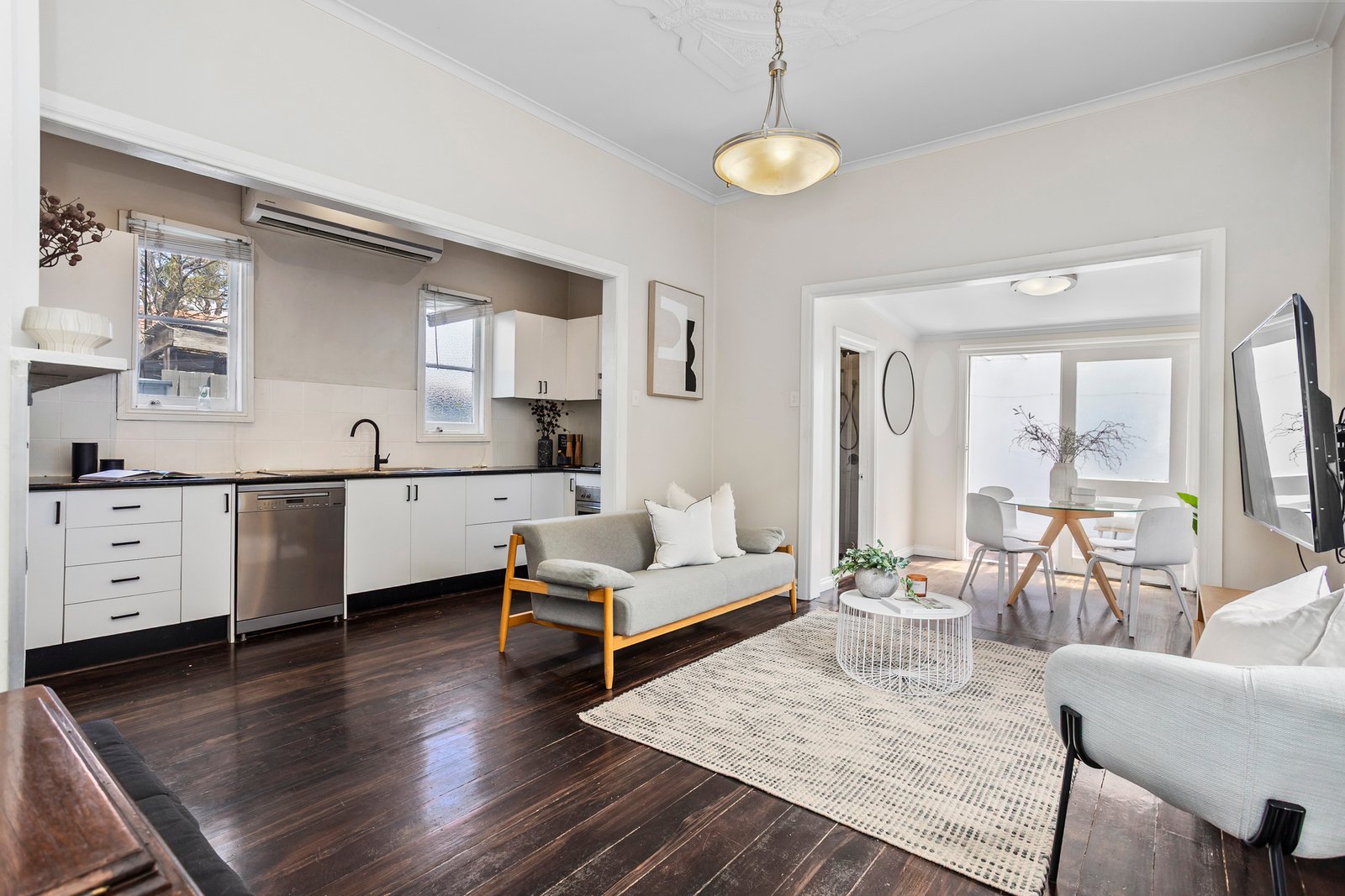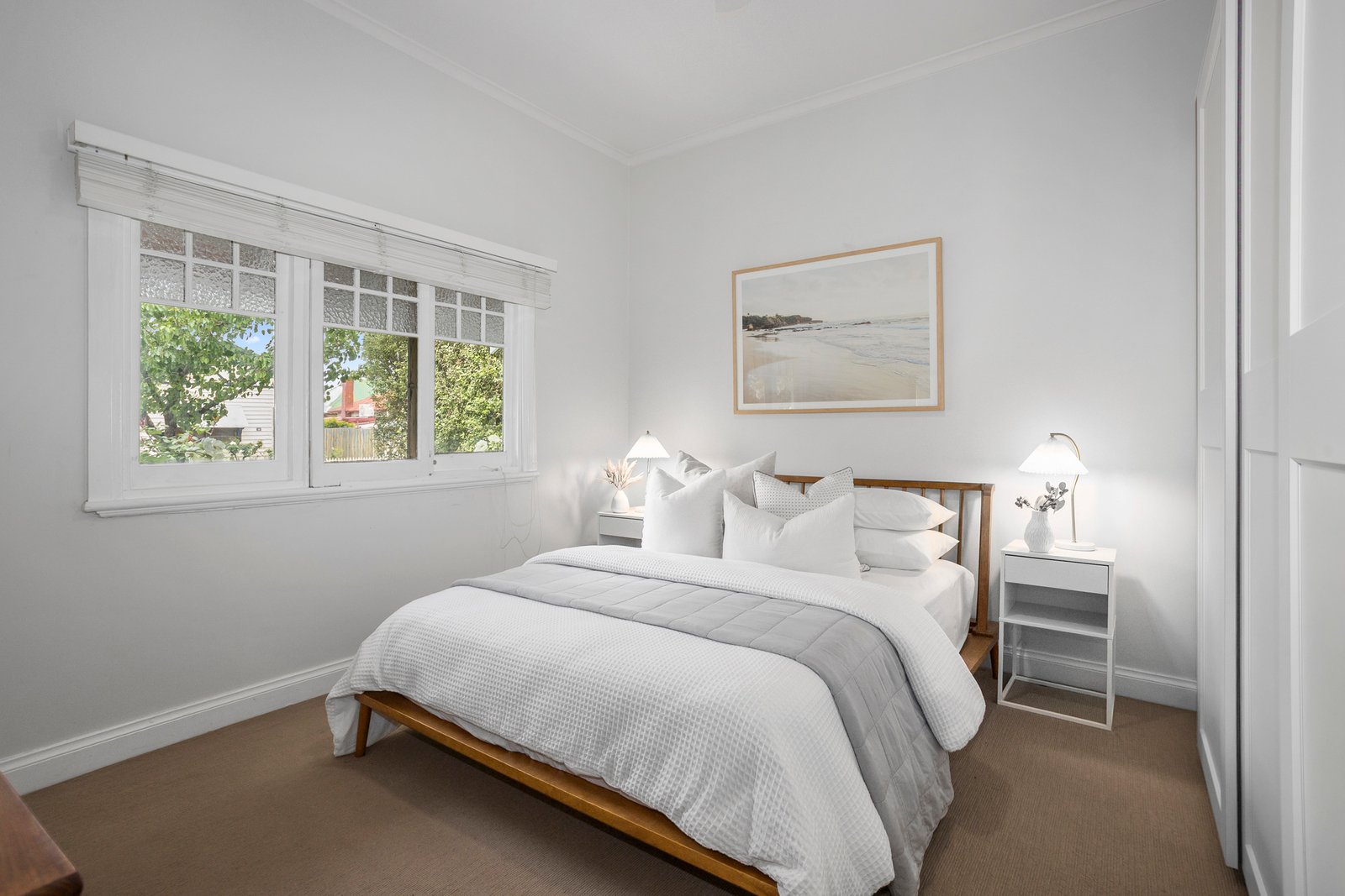 Behind the classic picket fence, lovingly planted roses frame the front of the home beautifully, restoring the charm and character befitting this period gem. Original hardwood floors and soaring high ceilings welcome you inside, immediately showcasing the timeless appeal of this classic Edwardian home. The two front bedrooms are both bright and generously proportioned, each featuring built-in robes and ceiling fans with lights. Split system heating and cooling in the master bedroom ensures year-round comfort.