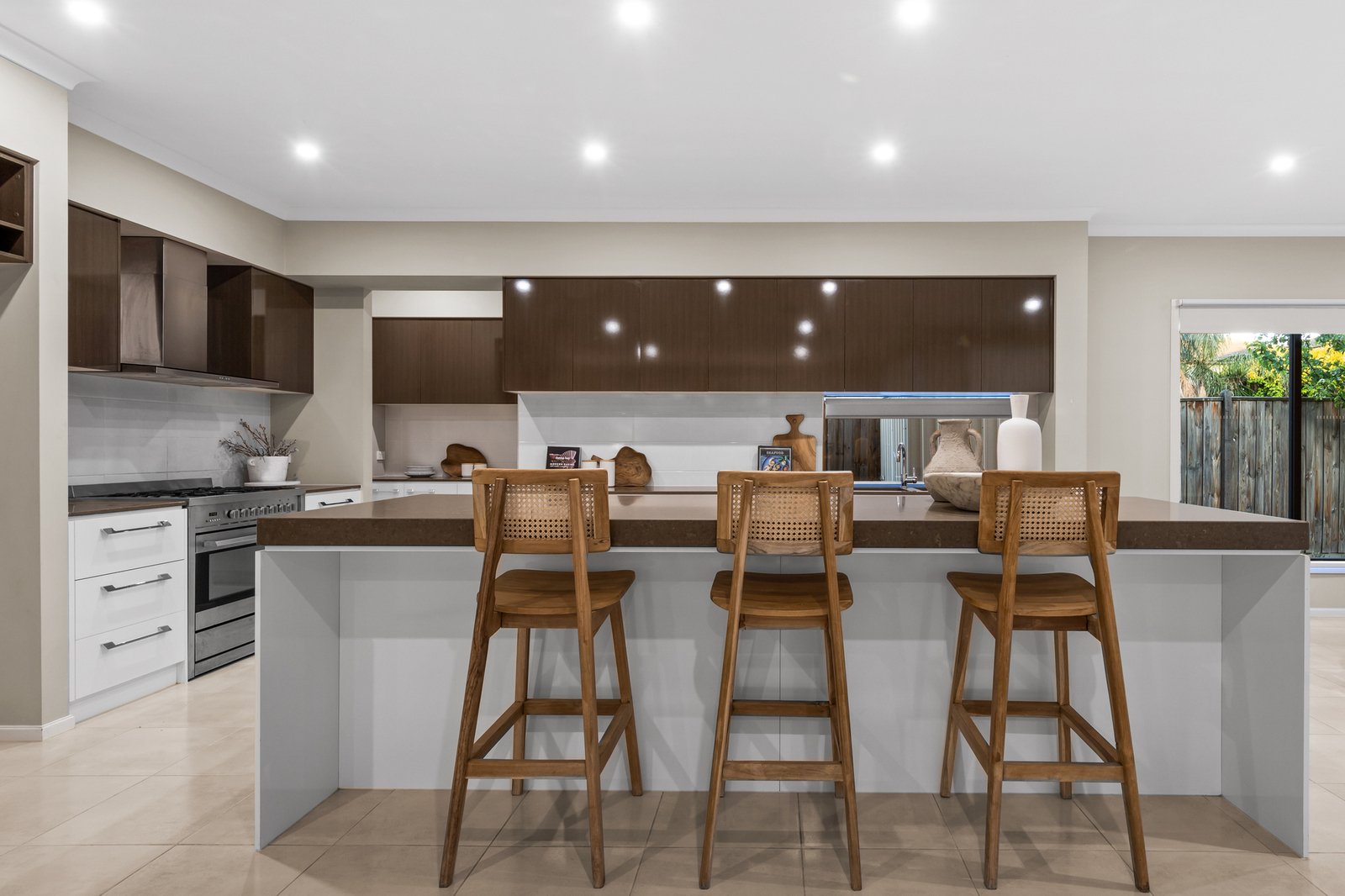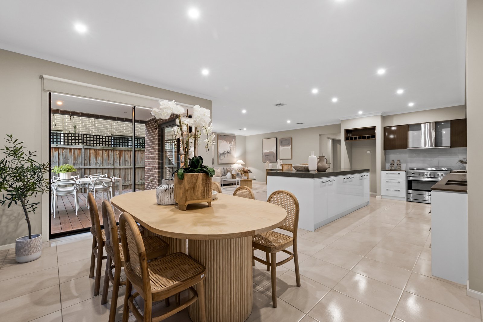 At the heart of the home lies an open-plan layout, where the kitchen impresses with quality appliances including an oven, stove and dishwasher, plus a butler’s pantry that makes meal prep and entertaining effortless. It flows seamlessly into the dining area, ideal for hosting dinner parties or casual meals, while the spacious family zone opens out to a decked alfresco, perfect for weekend BBQs, family gatherings, and unwinding in style.