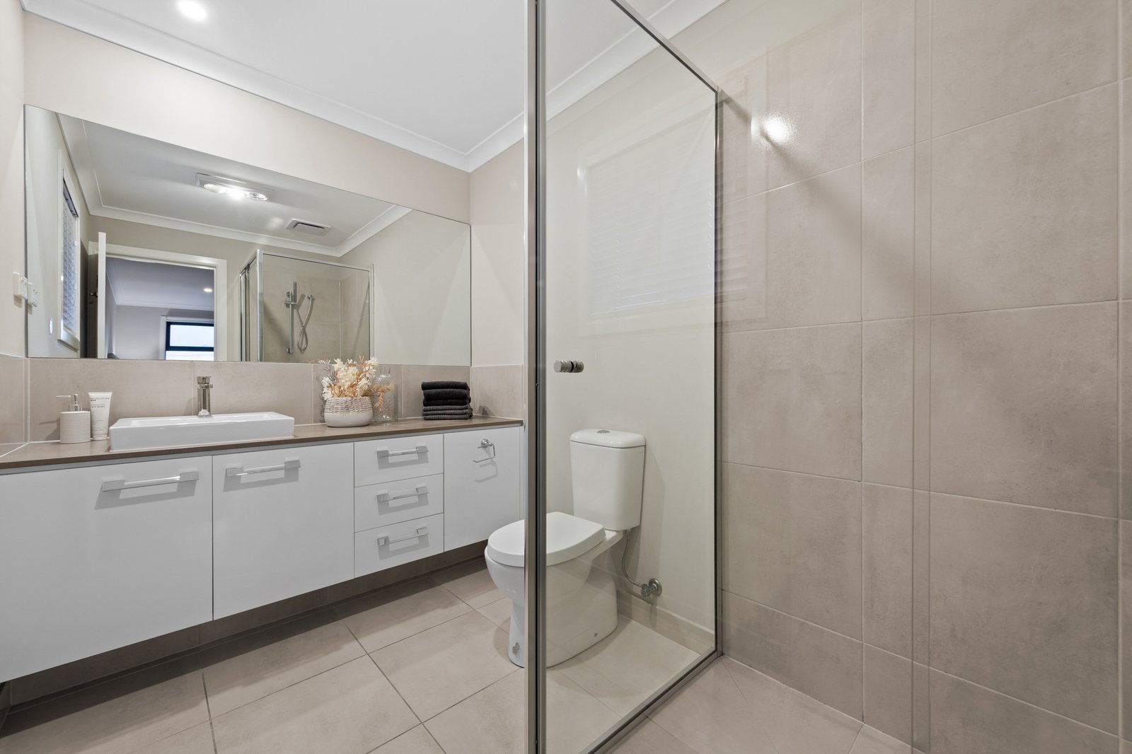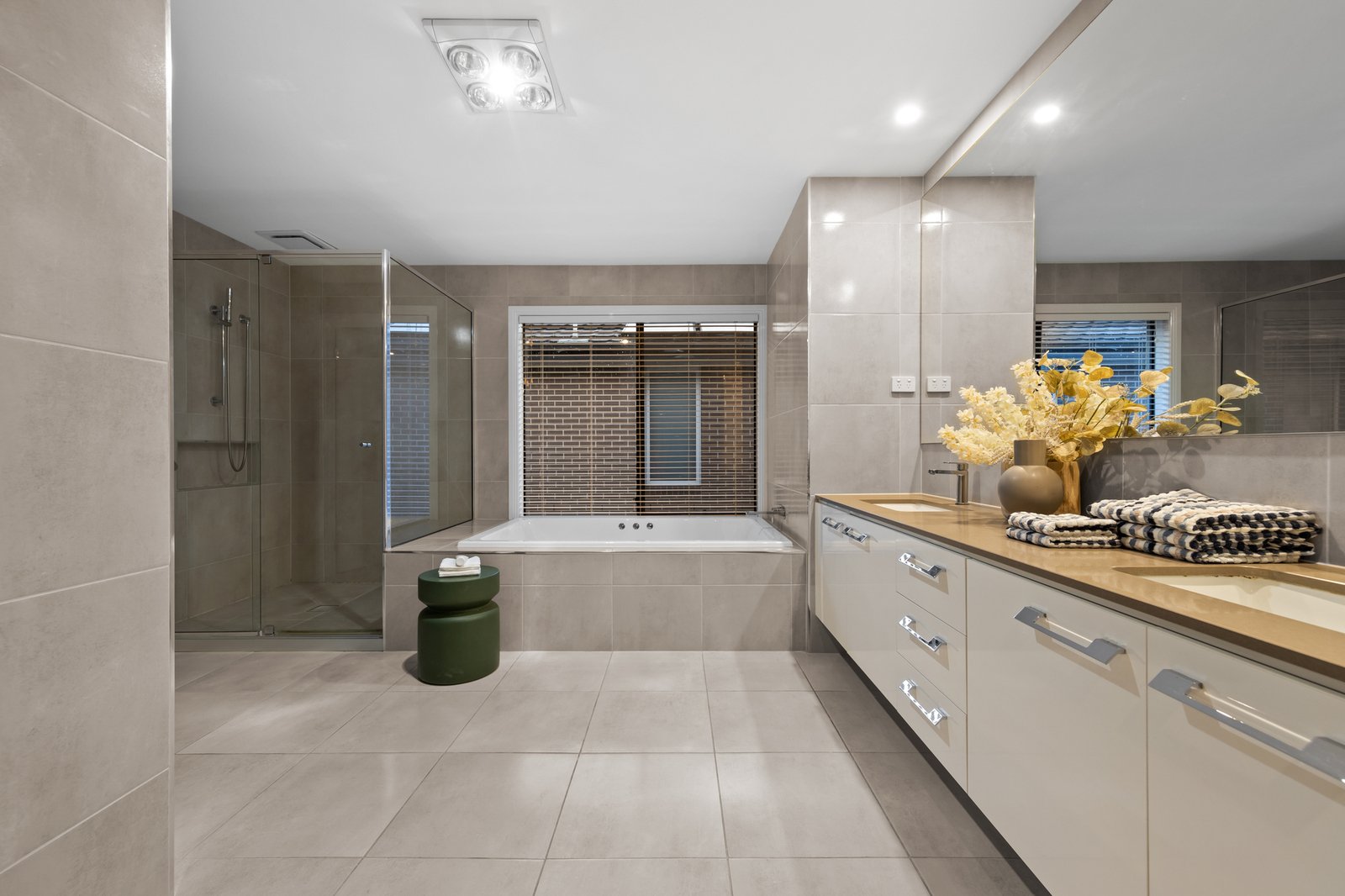 Upstairs, a retreat area offers a peaceful escape, while the master bedroom showcases two oversized walk-in robes and a sleek ensuite. Three additional bedrooms each feature their own walk-in robe and private ensuite, ensuring comfort and privacy for all.