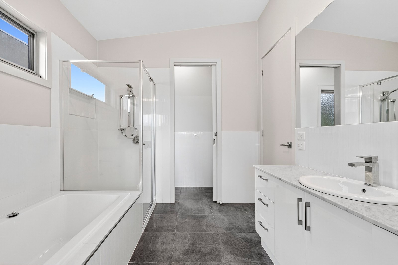 Equipped for comfort and functionality, additional features include split system heating and cooling, ceiling fans, day and night double blinds, louvre windows, under-stairs storage, ground floor powder room, laundry with storage, and additional linen storage.