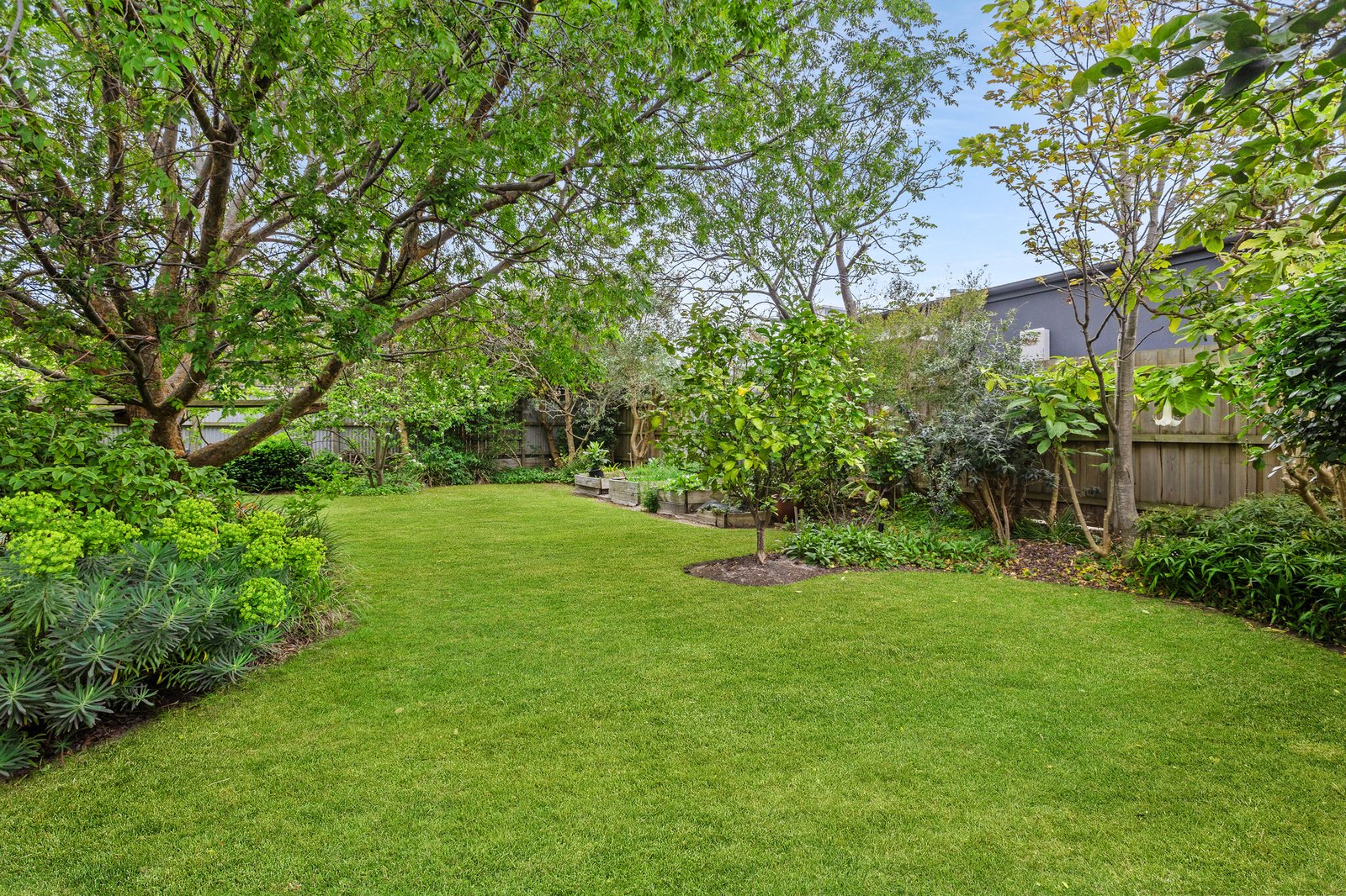 Lemon, Chinese Elm and Ginkgo trees trace the garden’s shaded edges, creating peaceful corners for relaxation or play among the soft lawn. Raised vegetable beds foster a more intentional way of living, complemented by a side gate for post-beach ease, a deep driveway and double garage.