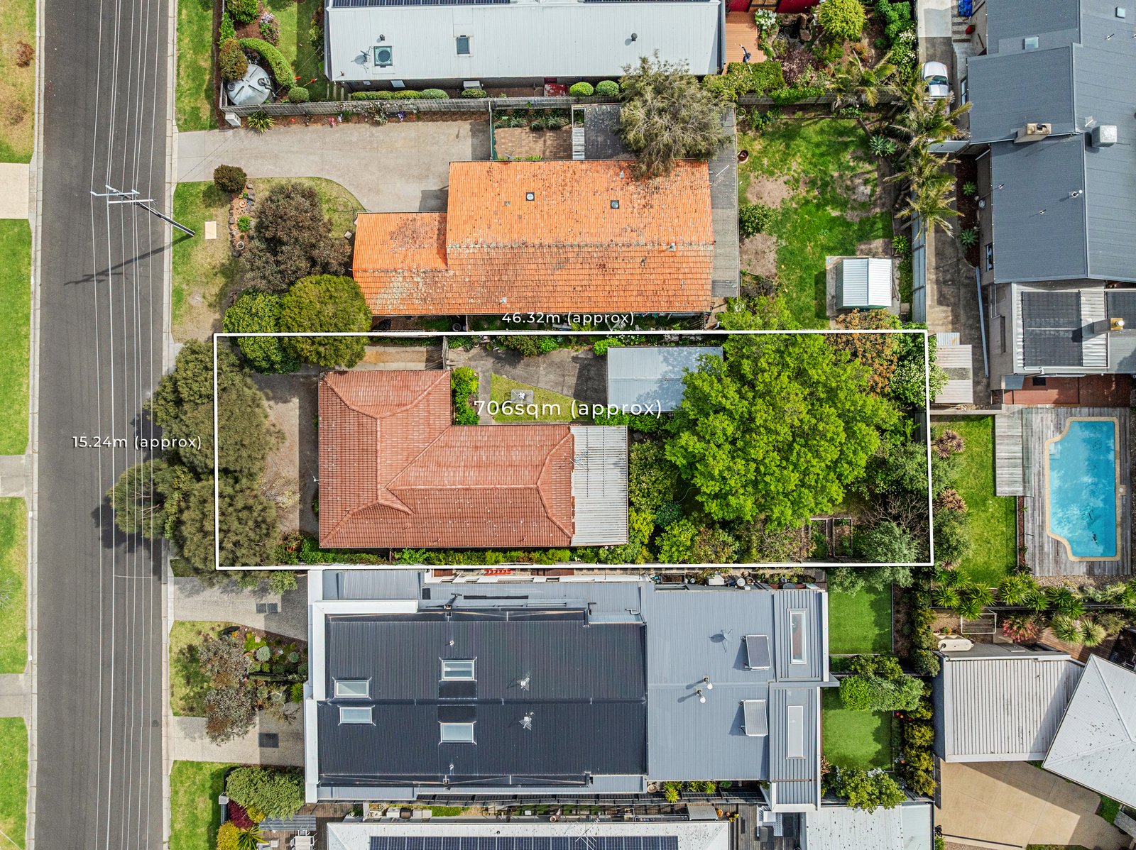 Framed by a weeping elm and mature gardens, the late-1970s brick veneer residence rests within a streetscape where measured duplex architecture is redefining the coastal vernacular, its 706 sqm (approx) allotment offering scope for a similar reimagining or refined renewal (STCA).