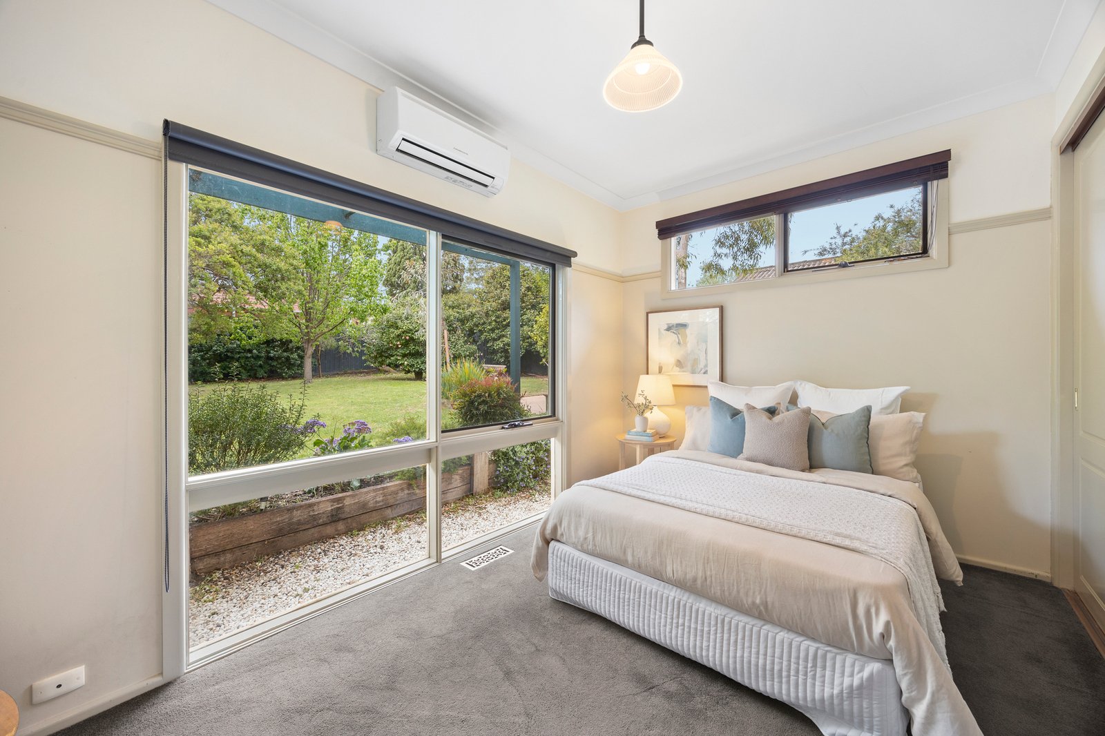 The master suite enjoys a tranquil front garden outlook, fitted walk-in robe and bright ensuite, while three additional bedrooms are privately zoned in their own wing beside a spacious family bathroom.