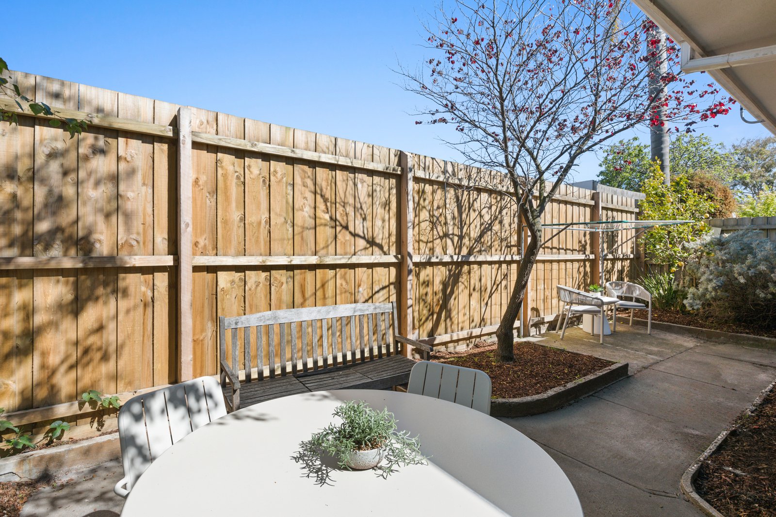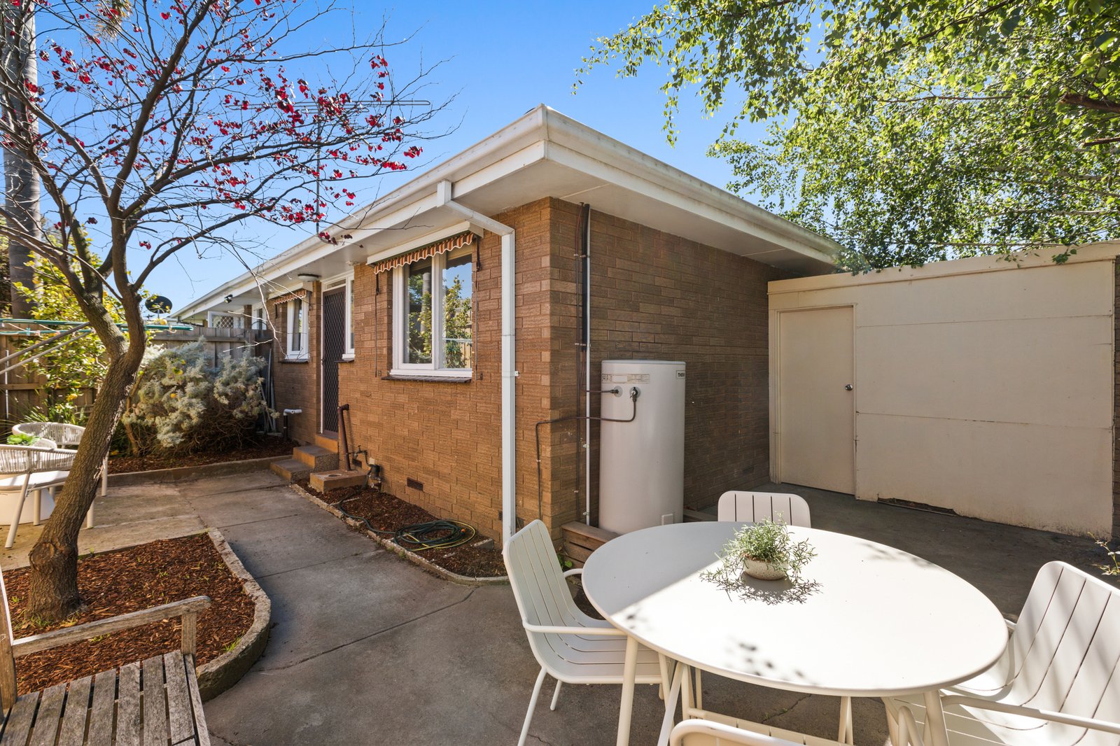 Opening to a spacious living and dining zone with a split system taking care of seasonal comfort, the floorplan flows into a sparkling kitchen which offers all-electric appliances, fabulous cupboard space including a large pantry plus a colourful view of the flourishing lemon tree. Out through the separate laundry, the outdoor area is incredibly private and wraps around to offer room to entertain or a secure space for tots & pets.