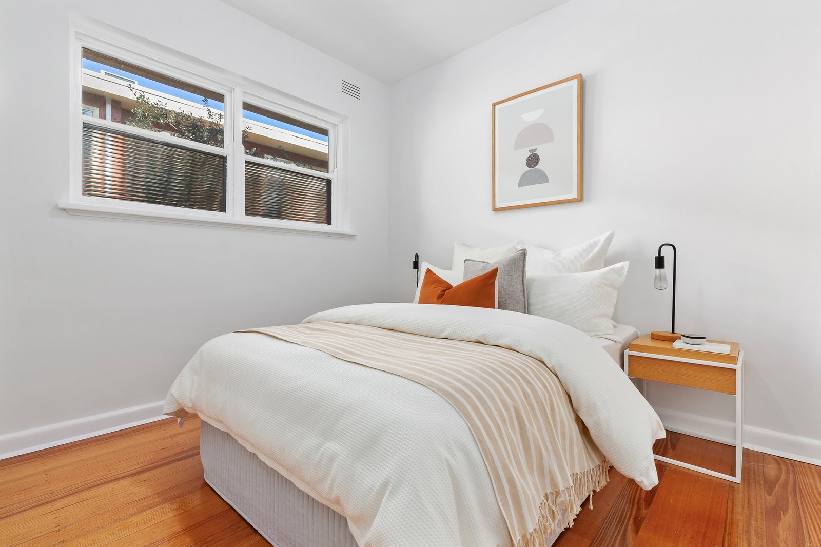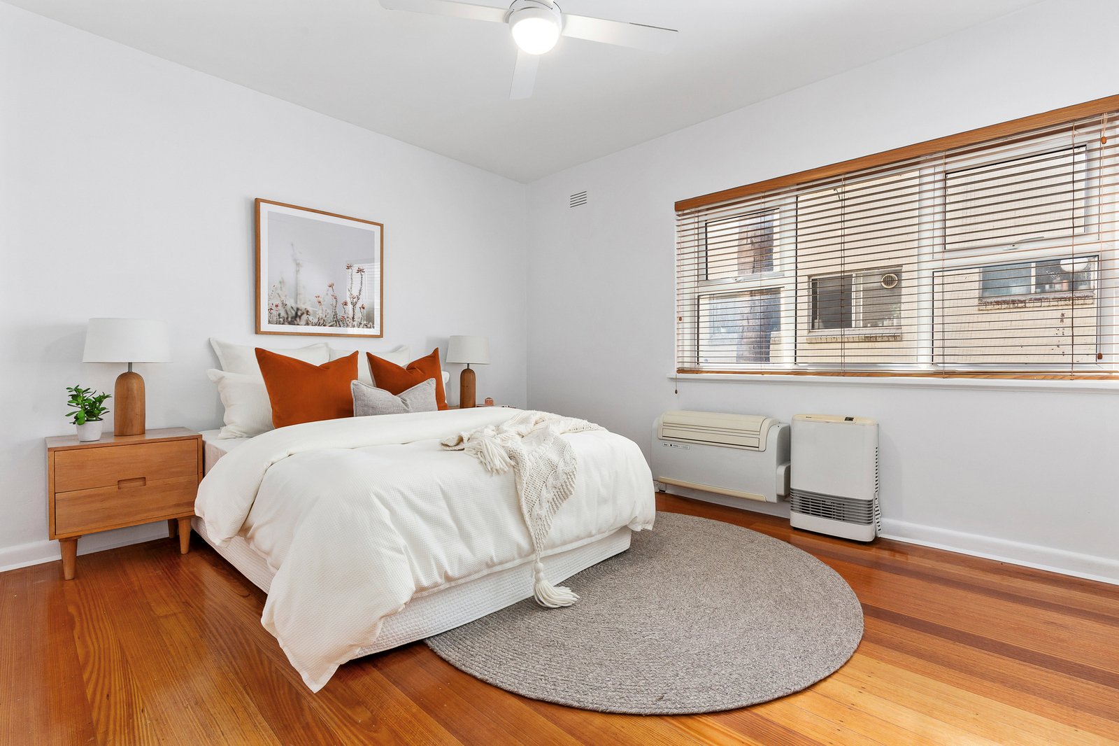 The master bedroom includes double-glazed windows, reverse-cycle air conditioning, gas heating, and a ceiling fan for comfort in every season. The bathroom offers a full-size bath, shower, and a separate toilet for convenience. Quality timber floors, double-brick construction, and excellent insulation ensure the home is quiet and energy-efficient. With private parking and a friendly, gated community, this property delivers secure, low-maintenance living within walking distance of cafés, shops, schools, parks, and Elwood Beach.