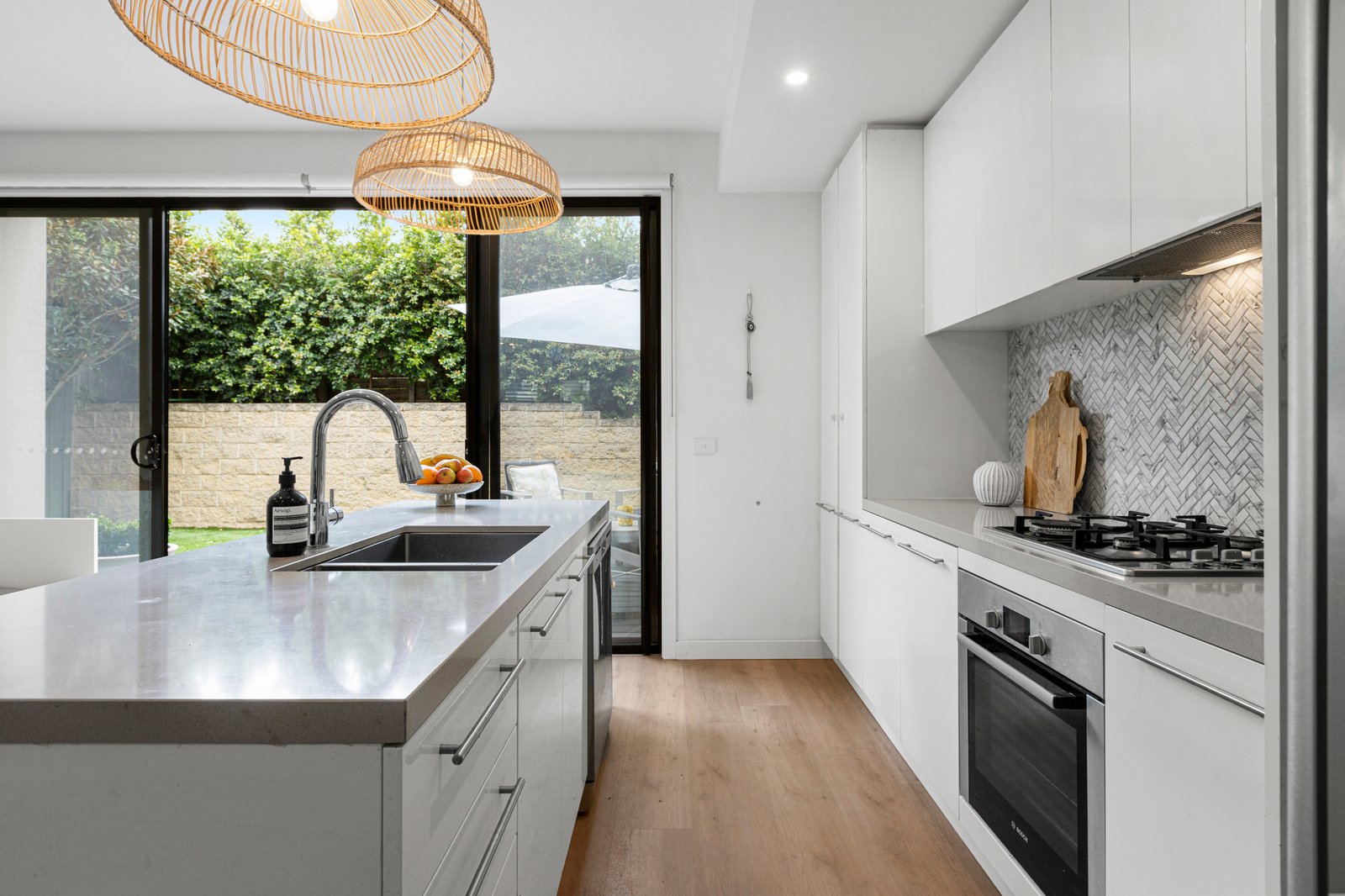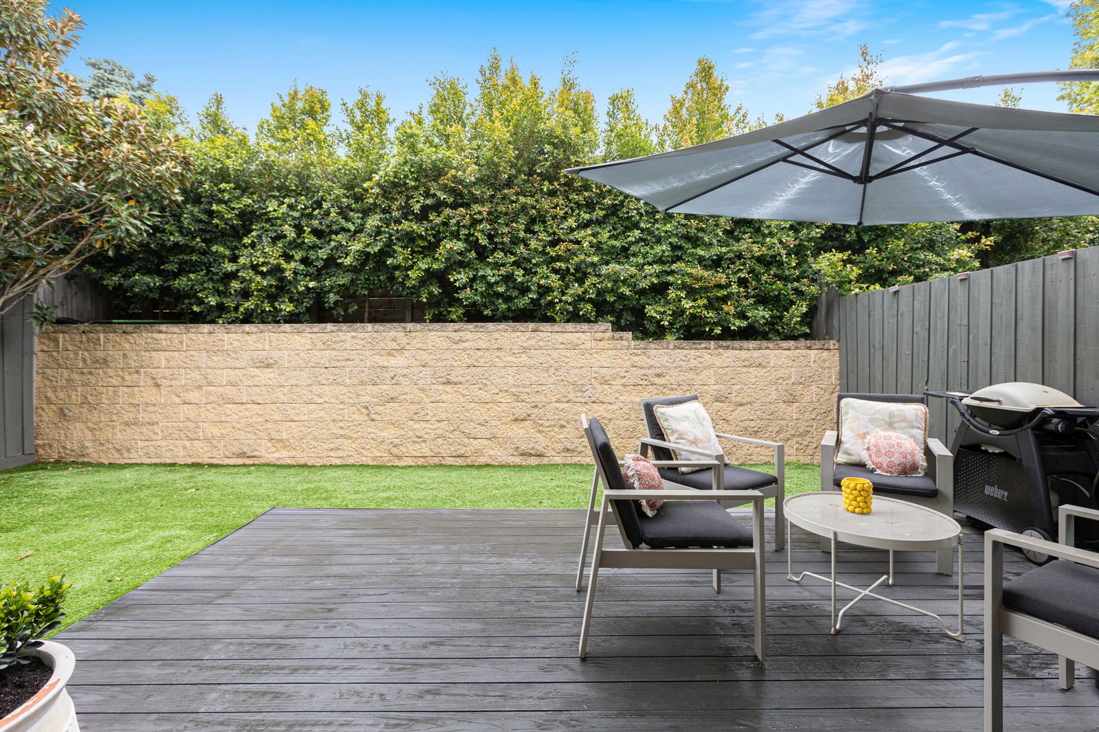 The ground floor is all about effortless entertaining, featuring an open-plan living and dining zone that flows seamlessly to a sun-drenched, landscaped deck — a superbly private setting for relaxed alfresco meals. Back inside, the sleek kitchen has been updated boasting modern style, equipped with quality appliances and additional storage.