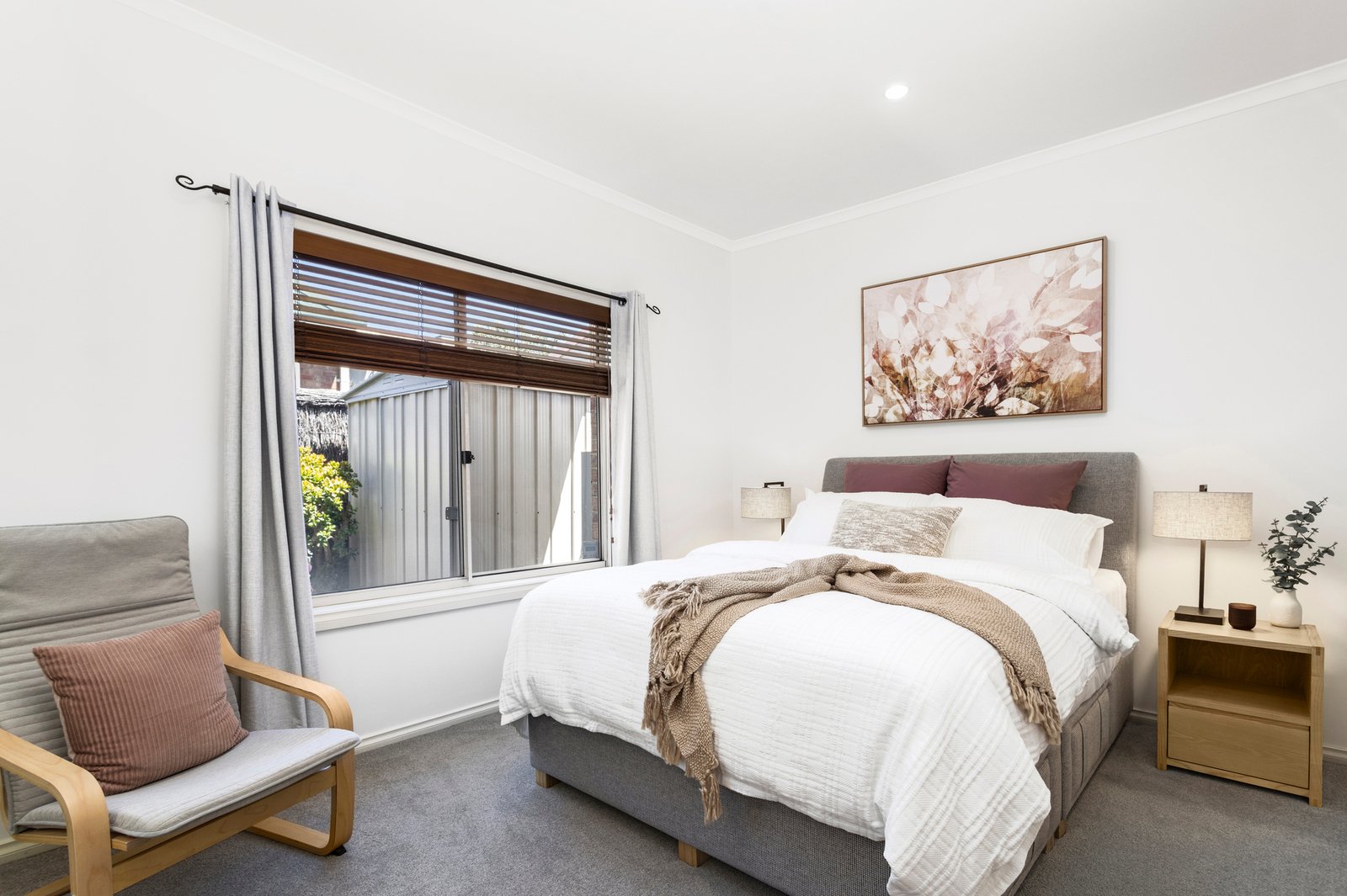 Peaceful and extremely spacious, the bedroom is an expansive retreat which benefits from dual fitted wardrobes and enjoys direct access to the home’s contemporary two-way bathroom. A separate laundry and ample internal storage are added highlights together with a brand-new split system plus a garden shed and allocated off-street parking space.