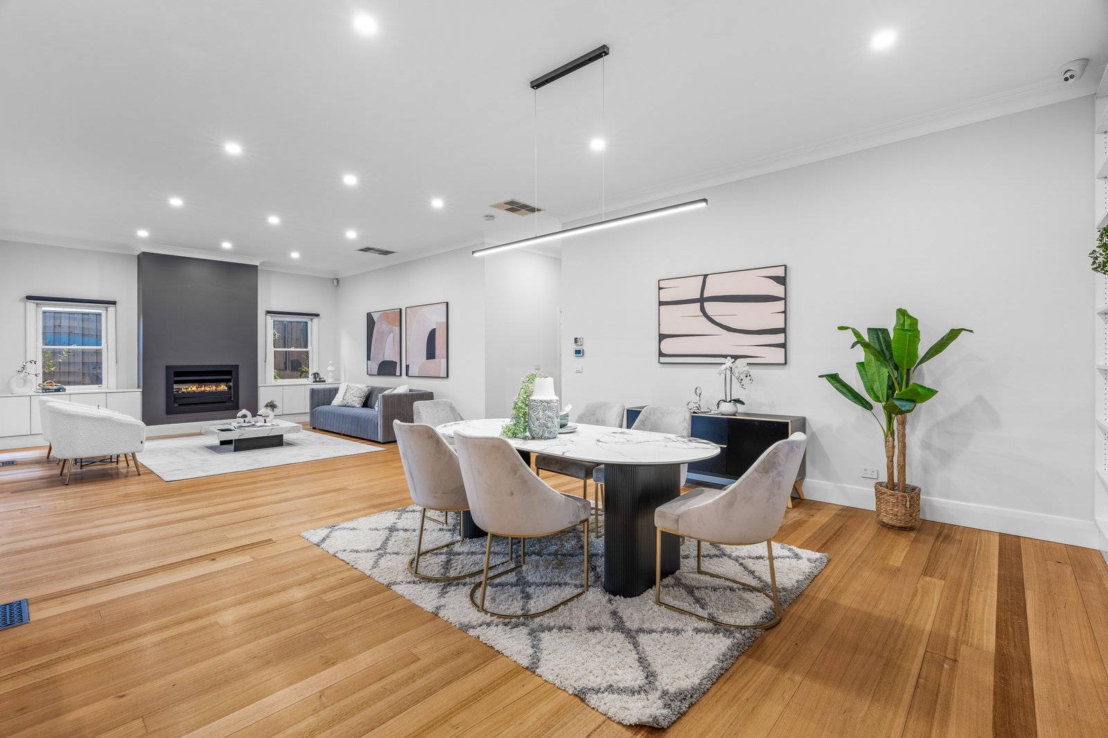 Combining period grace with substantial family space, the home shines with room to dine alongside a prestige European appliance kitchen (with Asko and Electrolux appliances) space to lounge by a warming gas fire...and space to entertain in every season in a sun-catching north-west al fresco area. Centrally heated and cooled with the security of CCTV and an alarm, this imposing home welcomes a modern family with solid hardwood floors, lofty ceilings and an abundance of storage (including library shelving, a bespoke fitted walk-in pantry and storeroom).