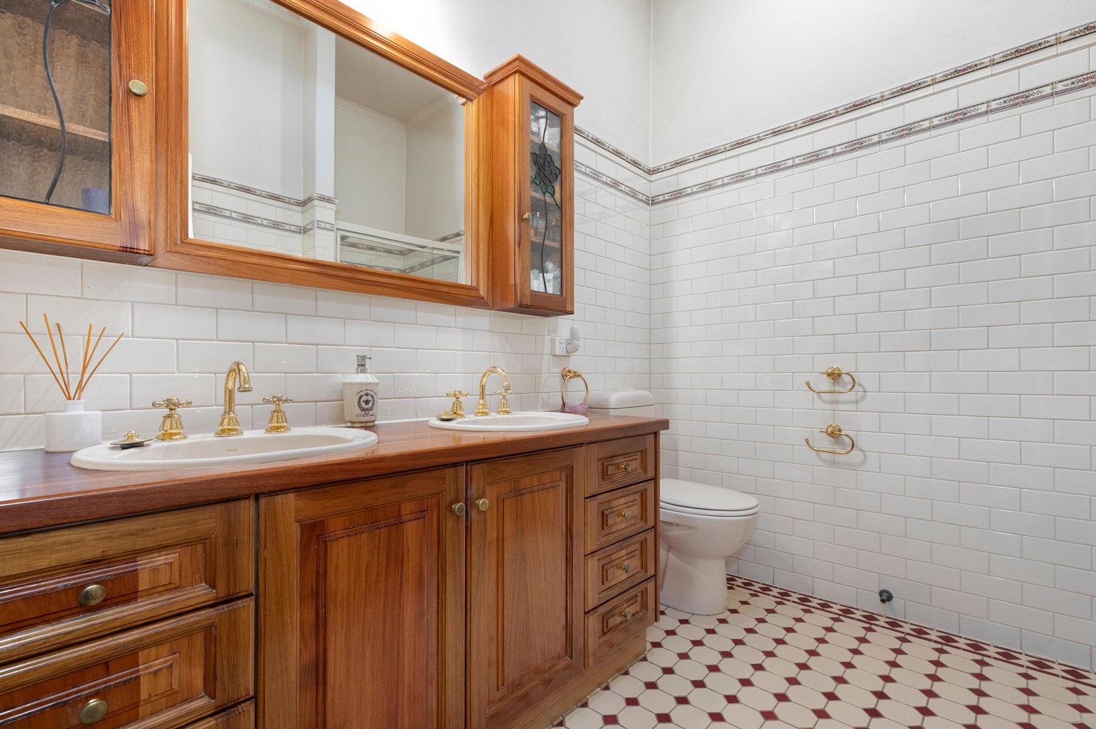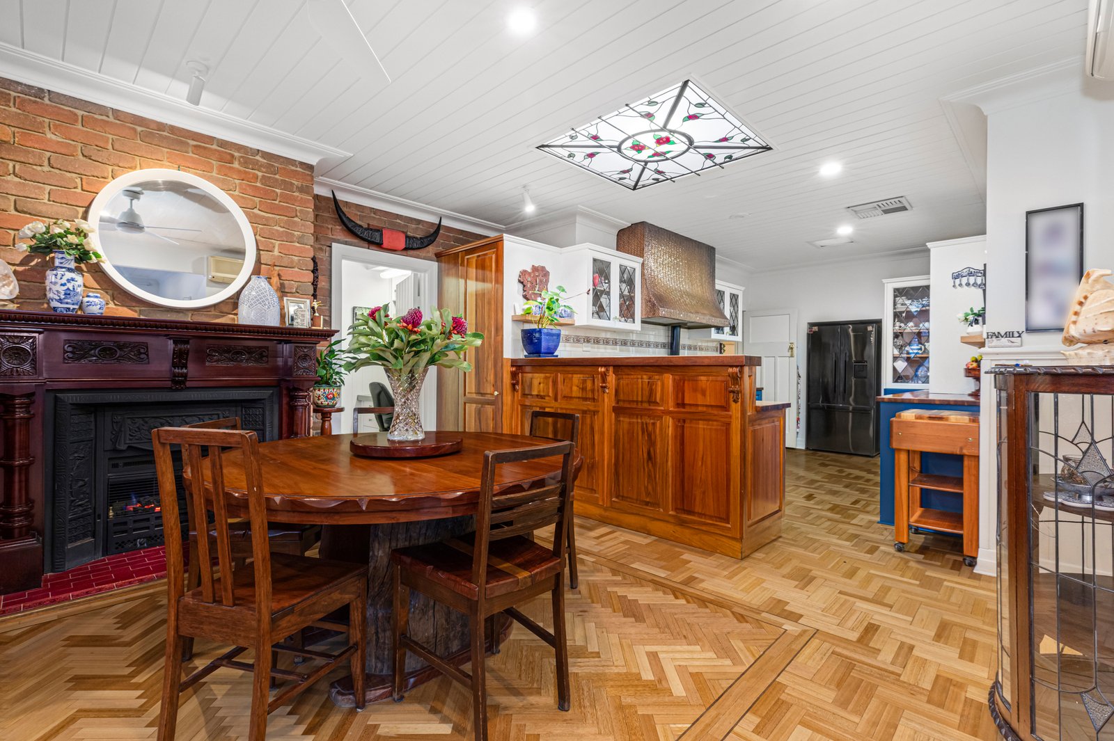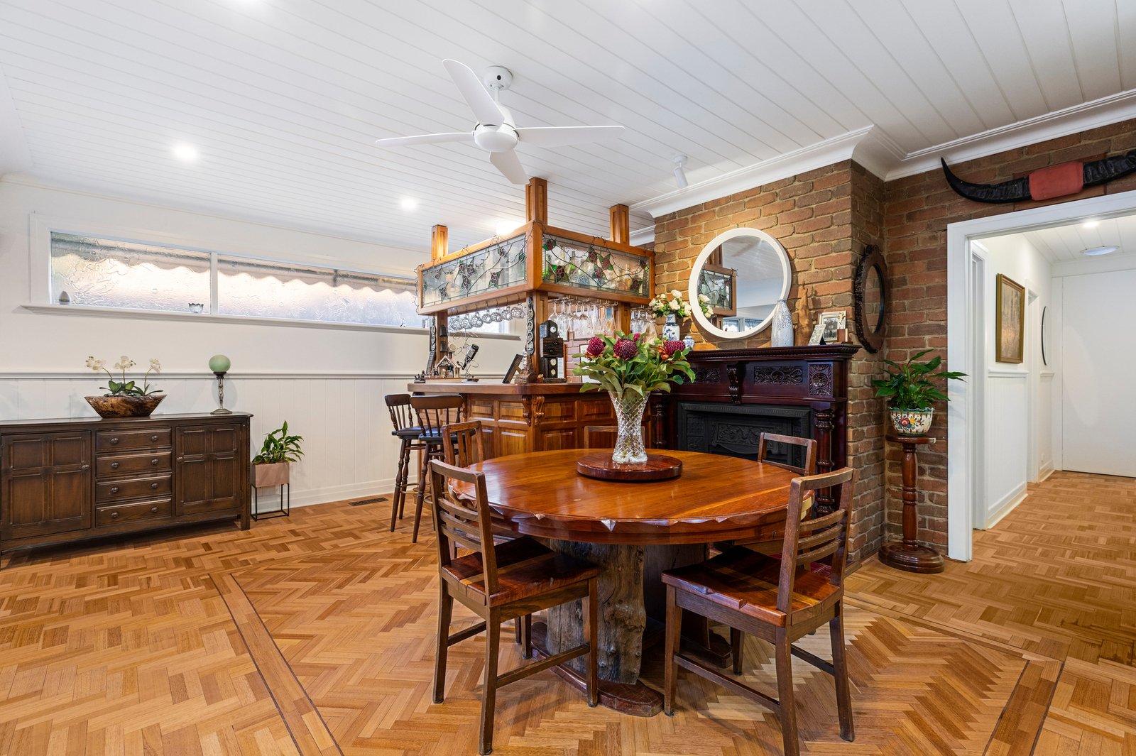 Rich parquetry underfoot, delicate leadlight and glorious plasterwork are amongst the highlights of the formal lounge and elegant dining zone both of which are warmed by cosy gas fireplaces. Right at the very heart of the layout, the country-style kitchen is centred around an impressive burgundy Aga range oven beneath a copper canopy range, while set to the rear, the sun-filled family & meals zone features a built-in timber bar along with a gas fireplace of its own.