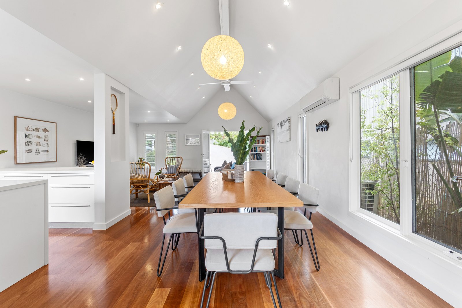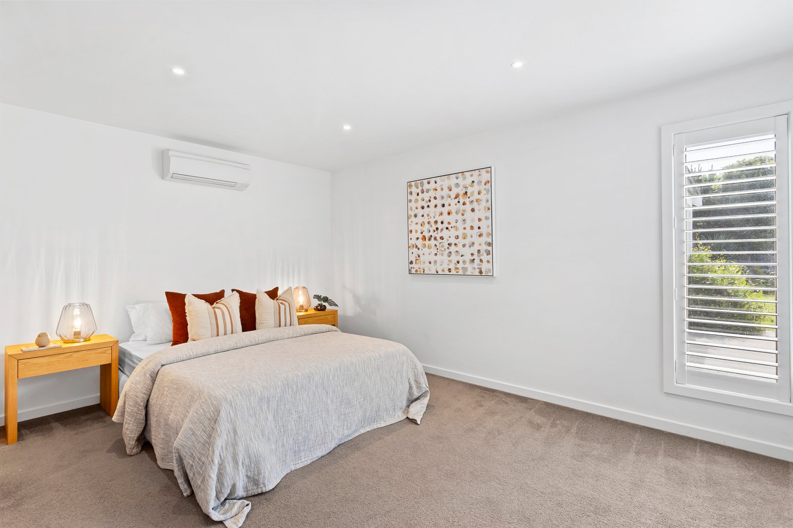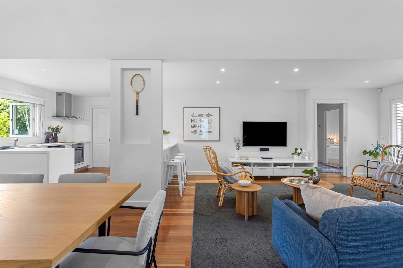 Just 500 metres from the sand and a short stroll to Blairgowrie village, this coastal hideaway celebrates a relaxed pace of beachside living. Designed to connect with its surroundings, the beautifully renovated five-bedroom layout unfolds across two light-filled levels, each defined by high cathedral ceilings, wide spotted gum flooring, and expansive glazing that draws in light and promotes al-fresco ease.