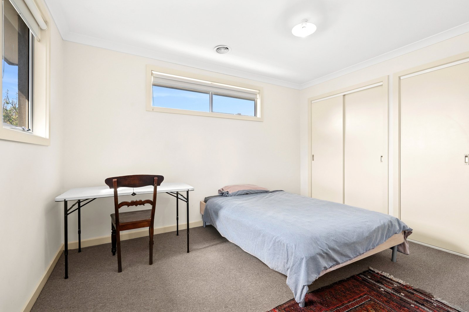 Downstairs includes the main bathroom and a bedroom with built-in robe, while bedrooms two and three are upstairs and serviced by a central bathroom.