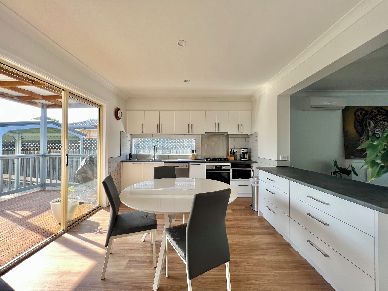 - Light-filled open-plan living and dining area with Fujitsu split-system heating and cooling for year-round comfort