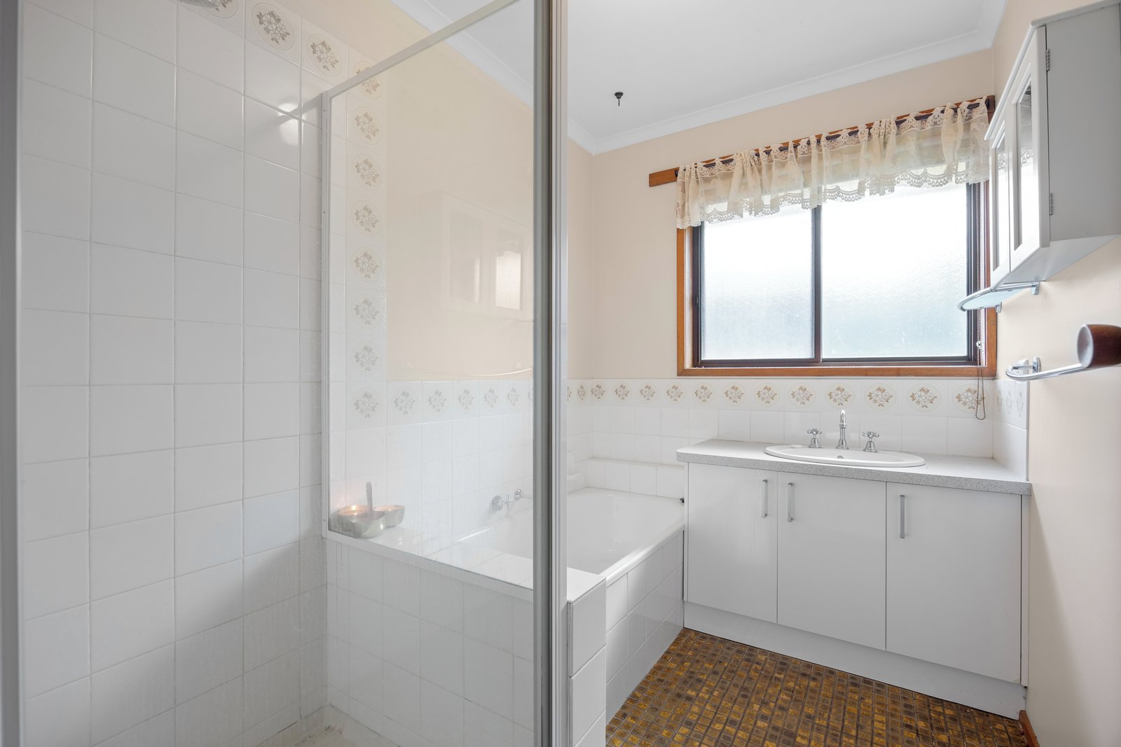 - The main bathroom is very functional with separate shower and bath.
