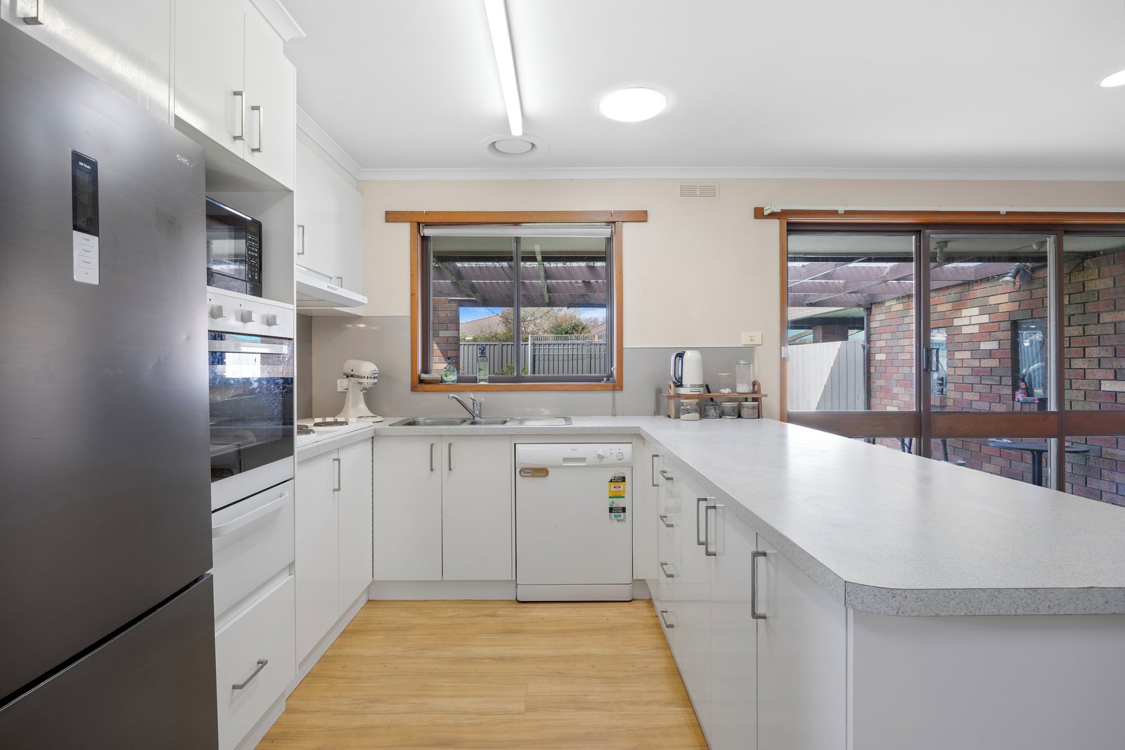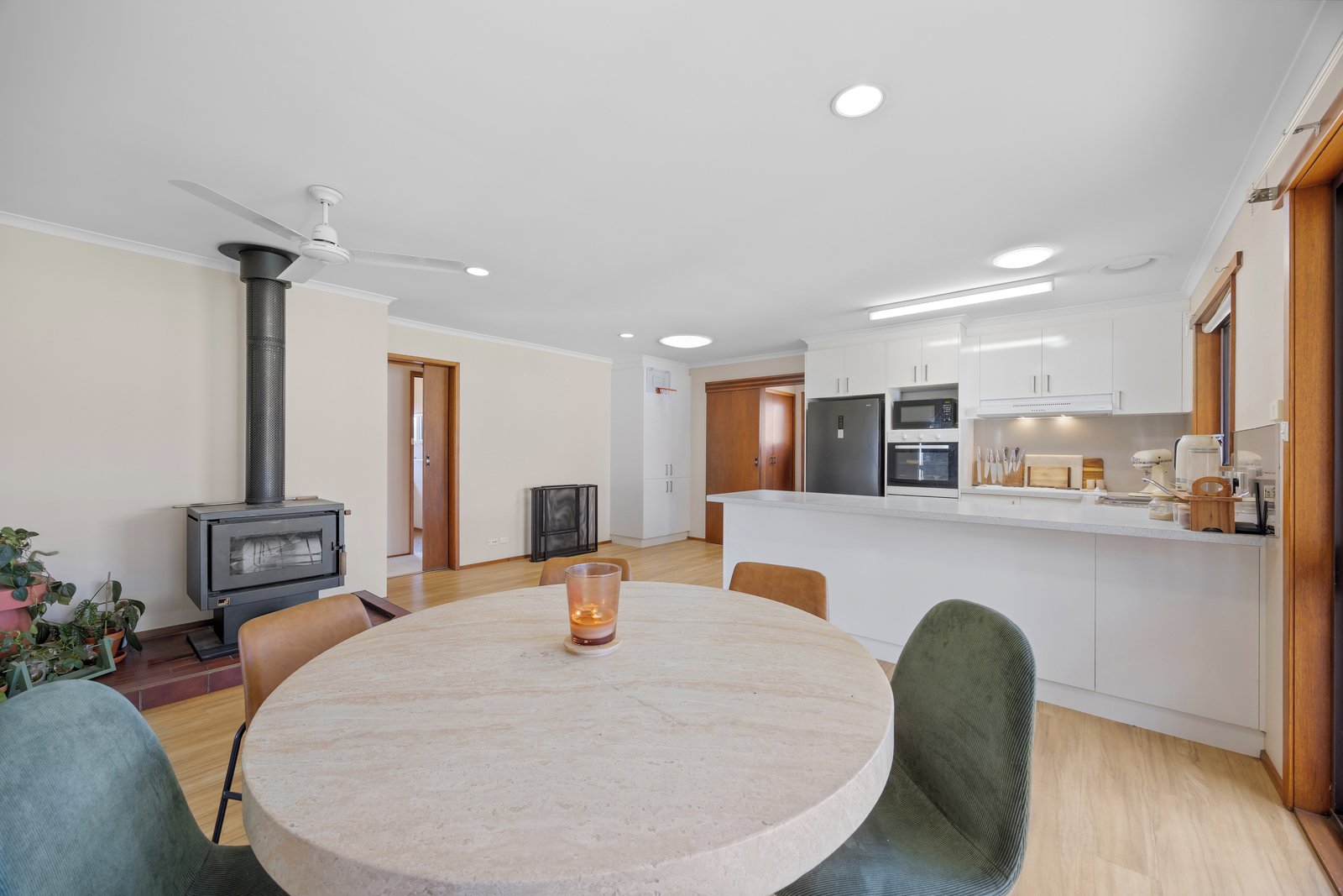 - Separate open plan kitchen meals/living area with wood heater, plenty of storage including a pantry cupboard, appliances include a dishwasher and electric cooking.