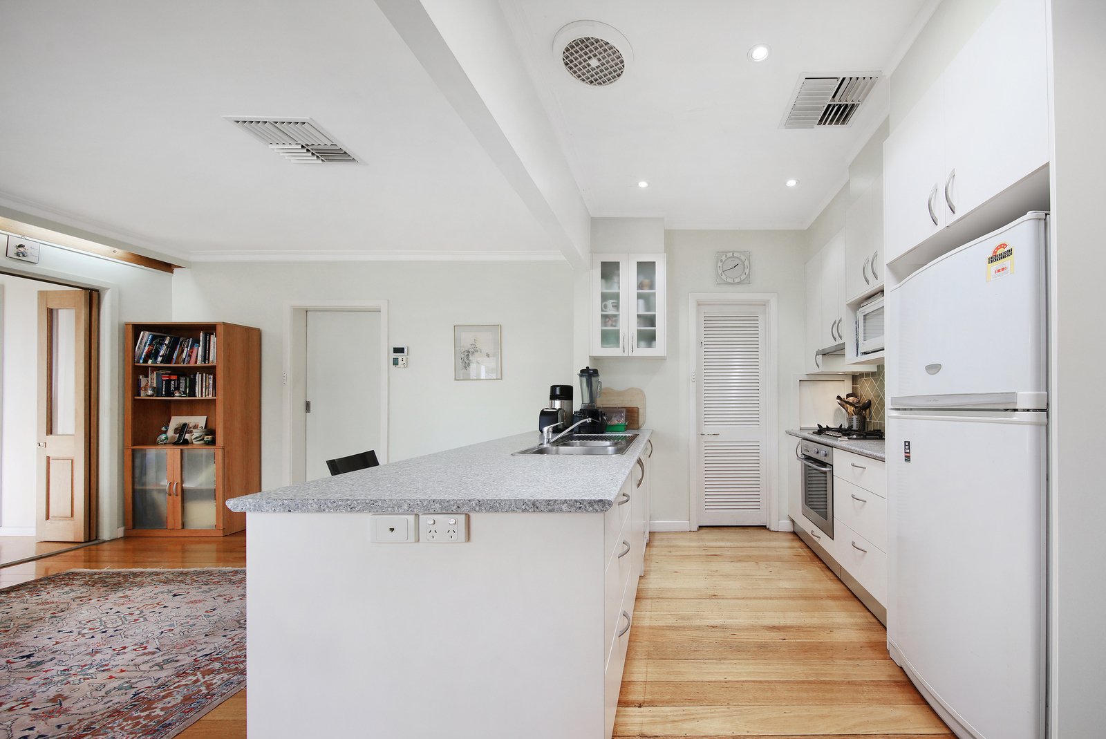 Cleverly zoned with a garden-view master and a rear kids’ wing beyond a window-walled corridor, the home is wonderfully comfortable as is with a skylit quality appliance kitchen, stylish bathrooms and handy separate WCs. Rich in retro detail with a distinctive stone mantle, tall windows and authentic hardwood floors, there’s a wealth of comfort too — including ducted heating, cooling, ceiling fans for almost every room, and a water tank for the gardens.