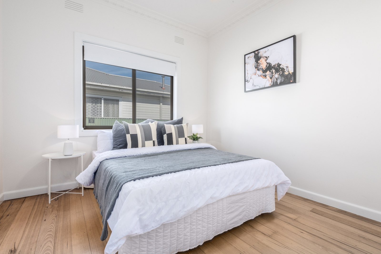 Nestled behind a picket fence and established gardens, the home is welcoming in appeal. Porch entry leads into a central hallway showcasing polished timber floors and ornate cornice, complemented by modern downlights. Comprising three bedrooms with built-in robes, the main bedroom retains a stunning ceiling rose as a graceful nod to the home’s original era.