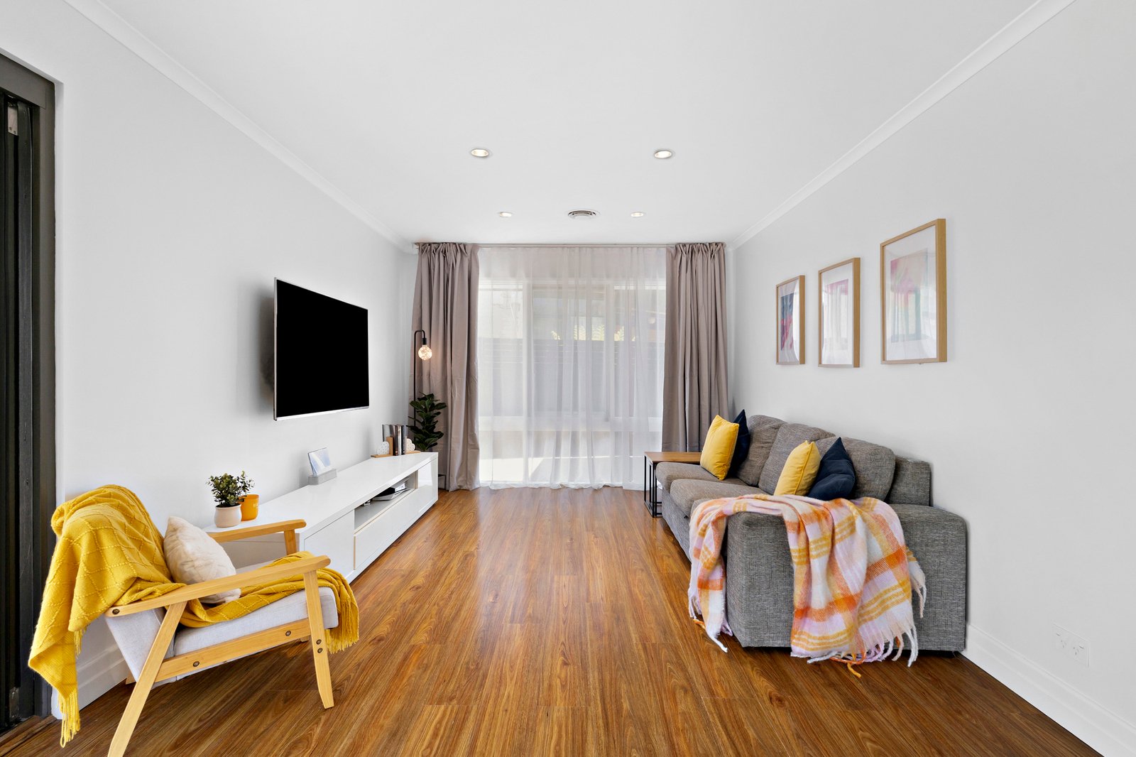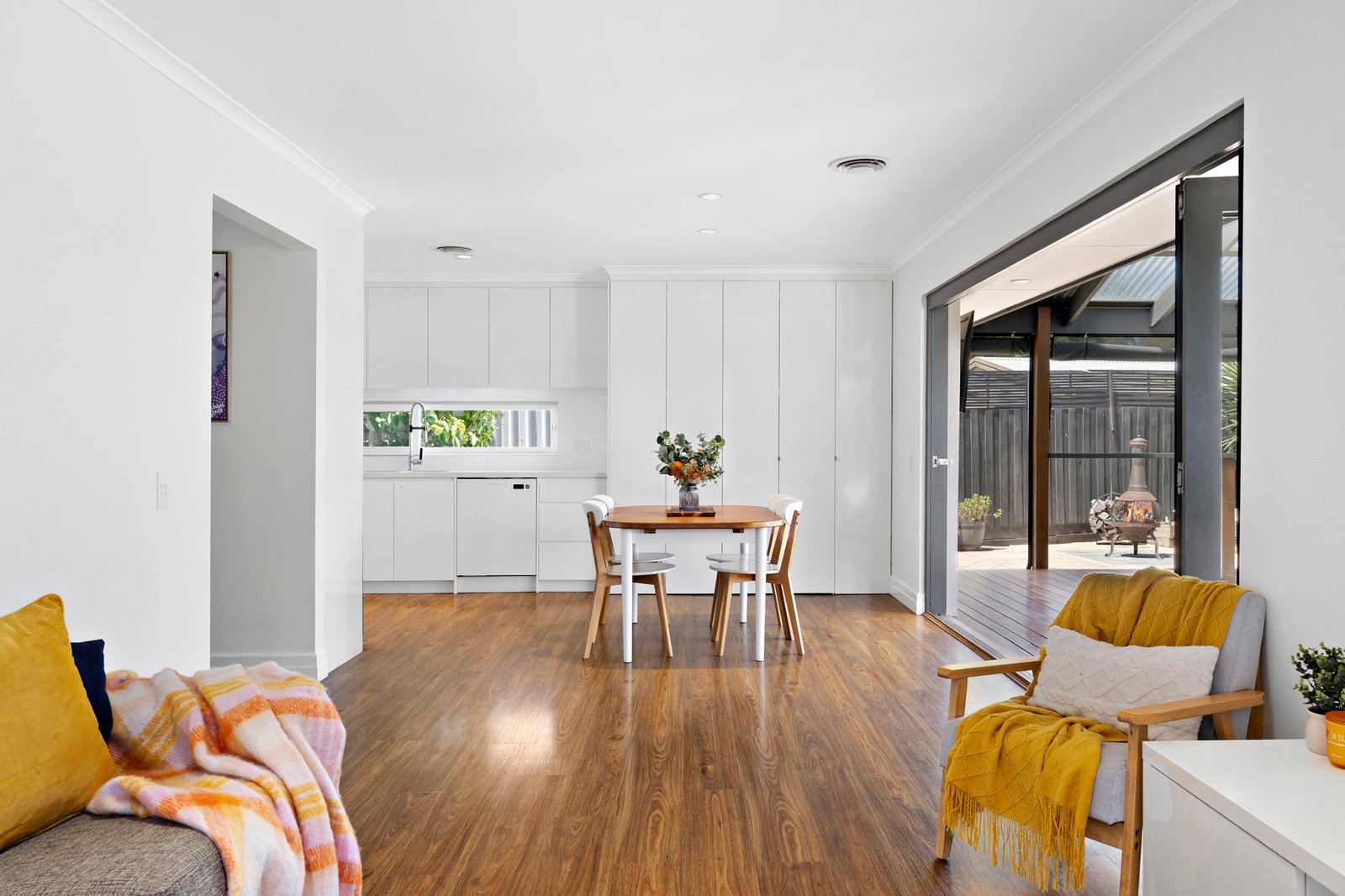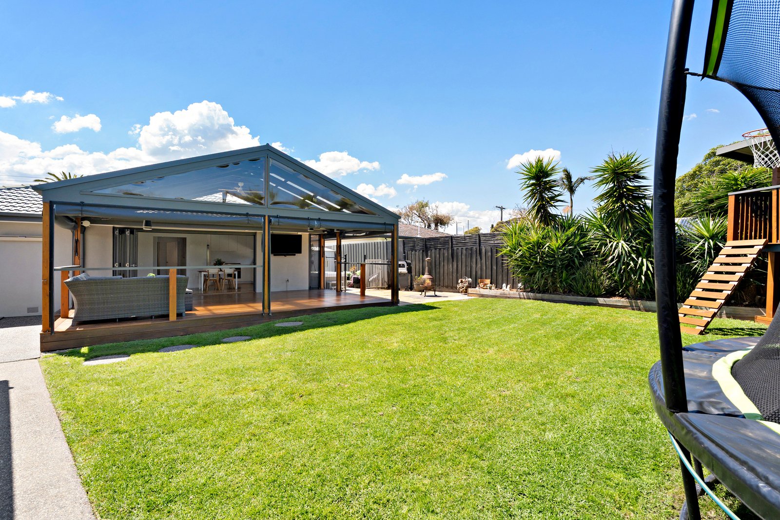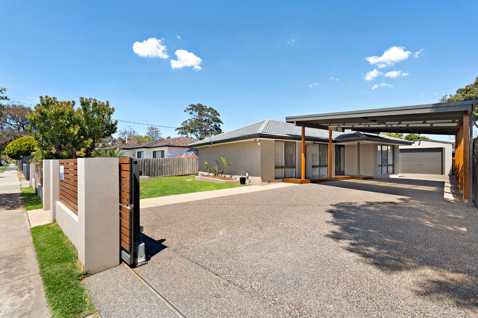 With its beautiful indoor-outdoor living and stunning alfresco setting, this impeccably presented family home offers a low-maintenance lifestyle in a sought-after location – metres from local shops, schools and parks. Stylish and light-filled, open-plan living flows onto a huge, covered deck, accompanied by a gleaming modern kitchen with stone surfaces, a sliding window splashback, stainless-steel cooking and an ASKO dishwasher. The European laundry is chic with its pop of pink, while quietly set down the hall you’ll find three spacious bedrooms, two fitted with robes. The contemporary bathroom enjoys a walk-in shower and luxurious bath, complemented by a separate powder room. However, outdoors steals the show! A true family oasis for those who love hosting, bi-fold doors stack back to create seamless connection to the pergola with its heat strips and TV mount. Lush green lawn and a cubby house will entertain the kids, while the spa and firepit area beckon relaxation. Extensive parking for multiple vehicles, including the caravan, trailer or boat impresses, with a carport and large garage featuring mezzanine storage – all set behind an automatic front gate. Further highlights include a rear home office, plus zoned ducted heating and refrigerated cooling. East Seaford Reserve, St Anne’s Primary School and the Peninsula Link Trail are at the end of your street, while it’s a short stroll to Belvedere Park Primary School, the Austin Road shops and bus stops. Within minutes you’ll find pristine stretches of sand and the sea, the train station and vibrant beachside eateries.