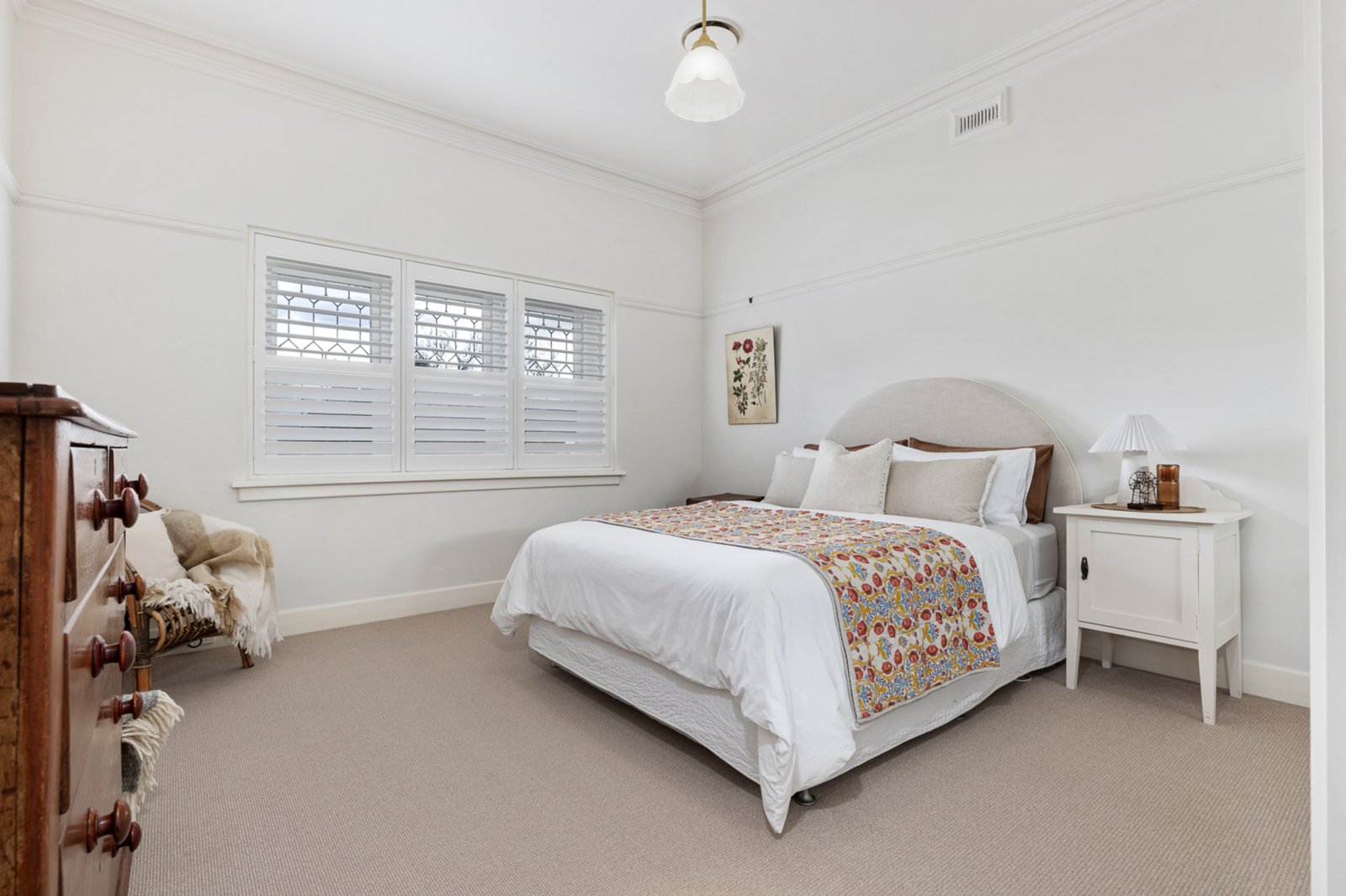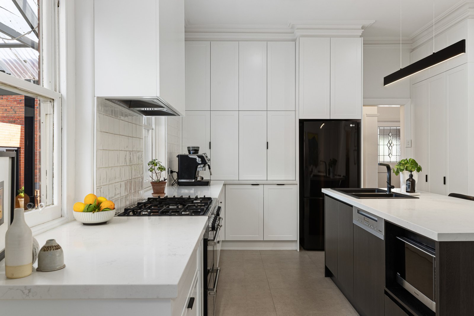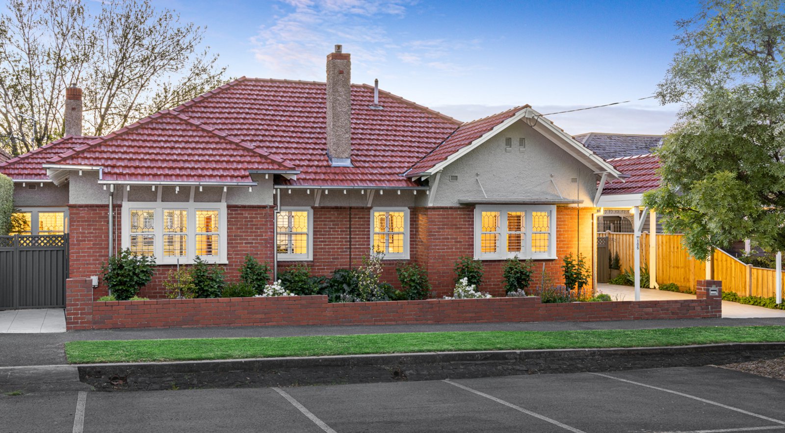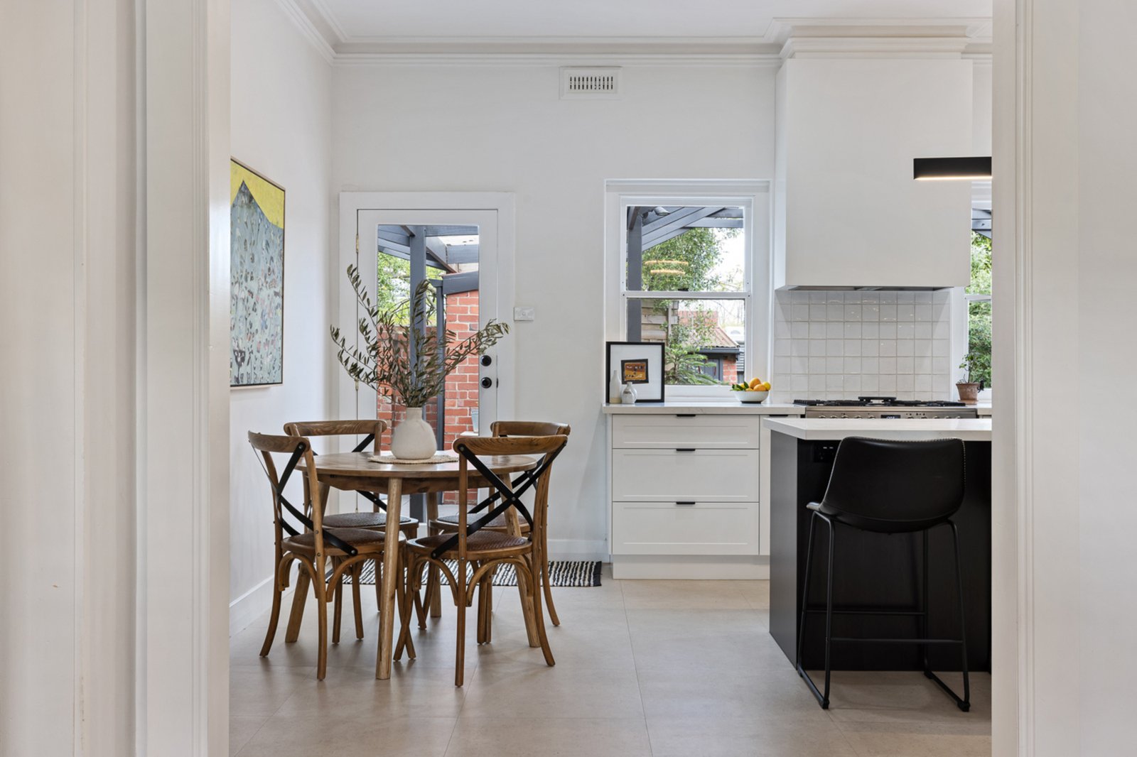 Comprising three bedrooms plus a study (or 4th), the home features two fully renovated bathrooms, a stylishly renovated laundry, and a beautifully appointed kitchen with quality appliances. Two generous living zones provide flexibility and space for the whole family. While the home retains its heritage character through timber floors, ornate cornices, and solid brick construction, thoughtful updates have introduced a fresh, contemporary feel without losing its original charm.