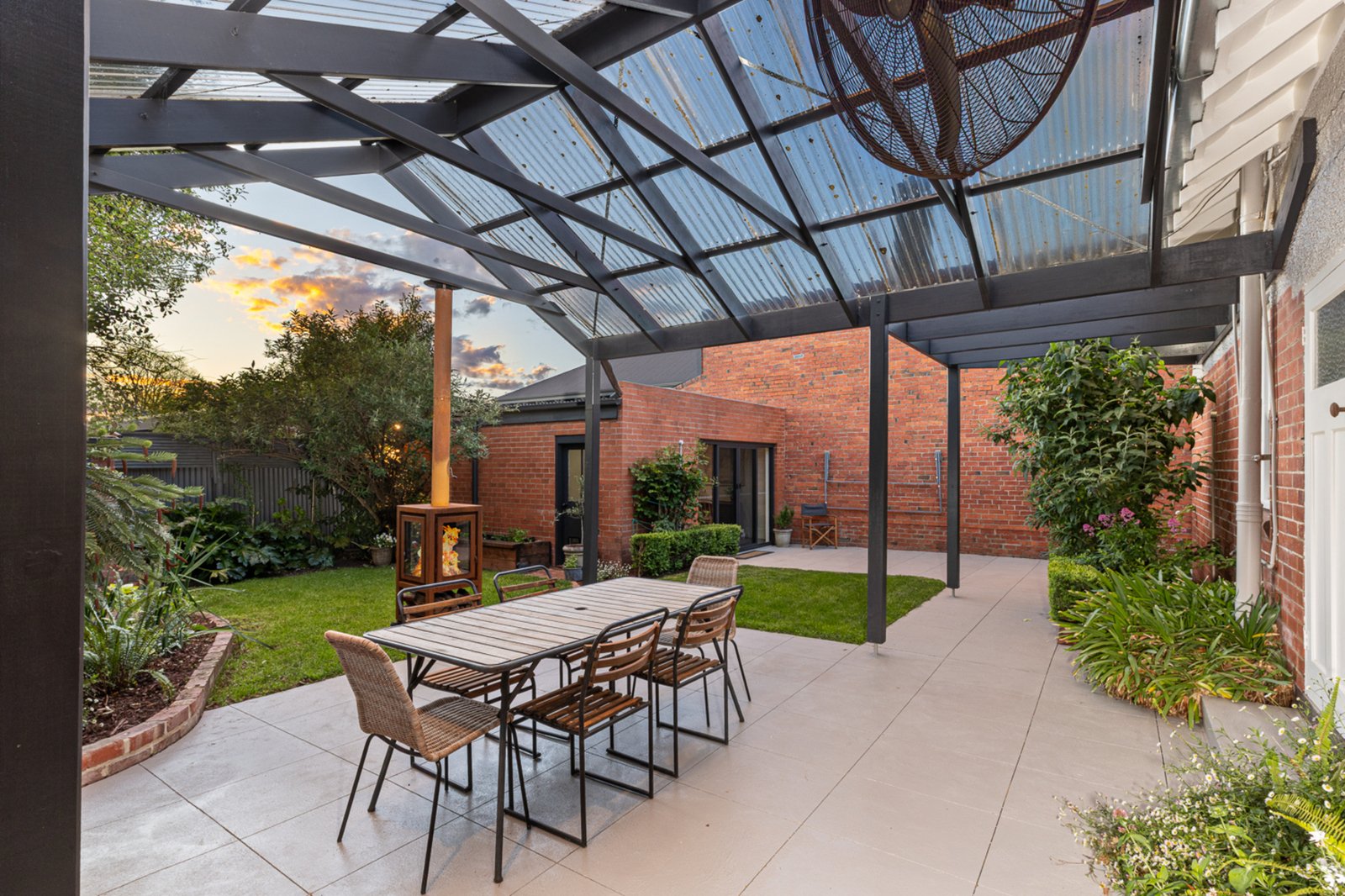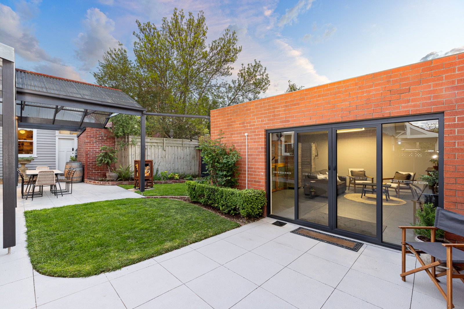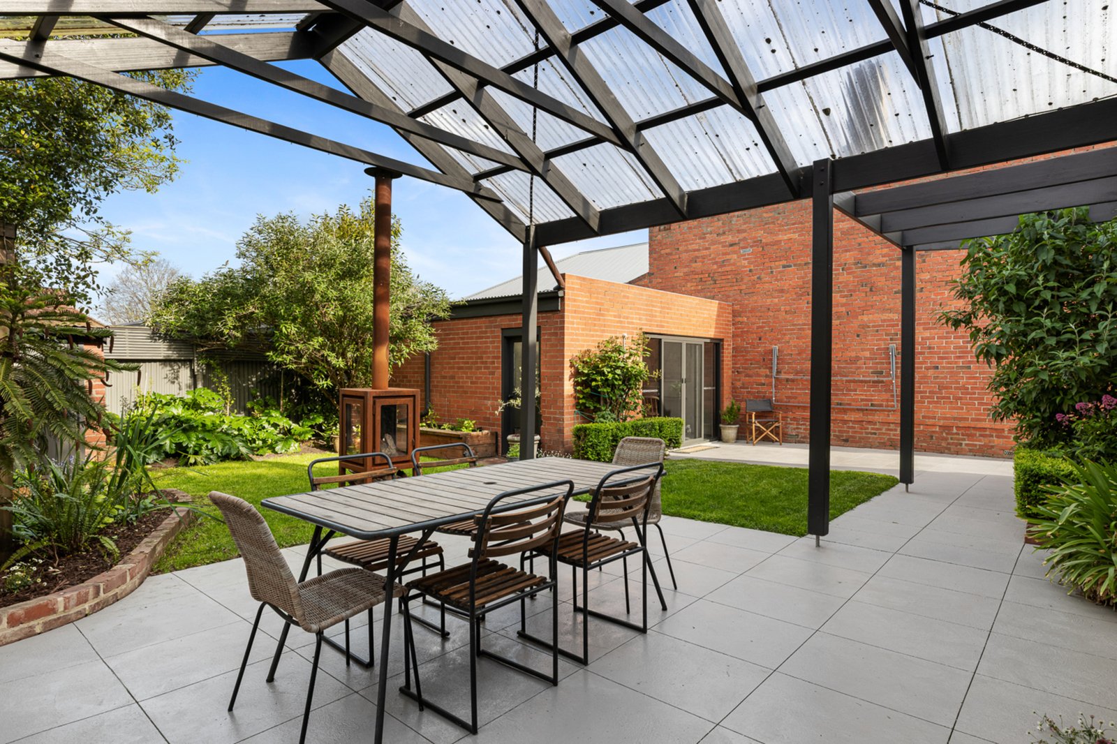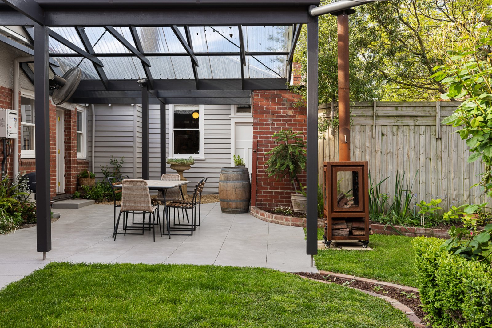 A separate studio offers a peaceful retreat — perfect for reading, hobbies, or creative pursuits. The 469m² allotment boasts a private, leafy garden with a large alfresco area and a gas-fired pizza oven, creating the ideal environment for entertaining or relaxing outdoors.