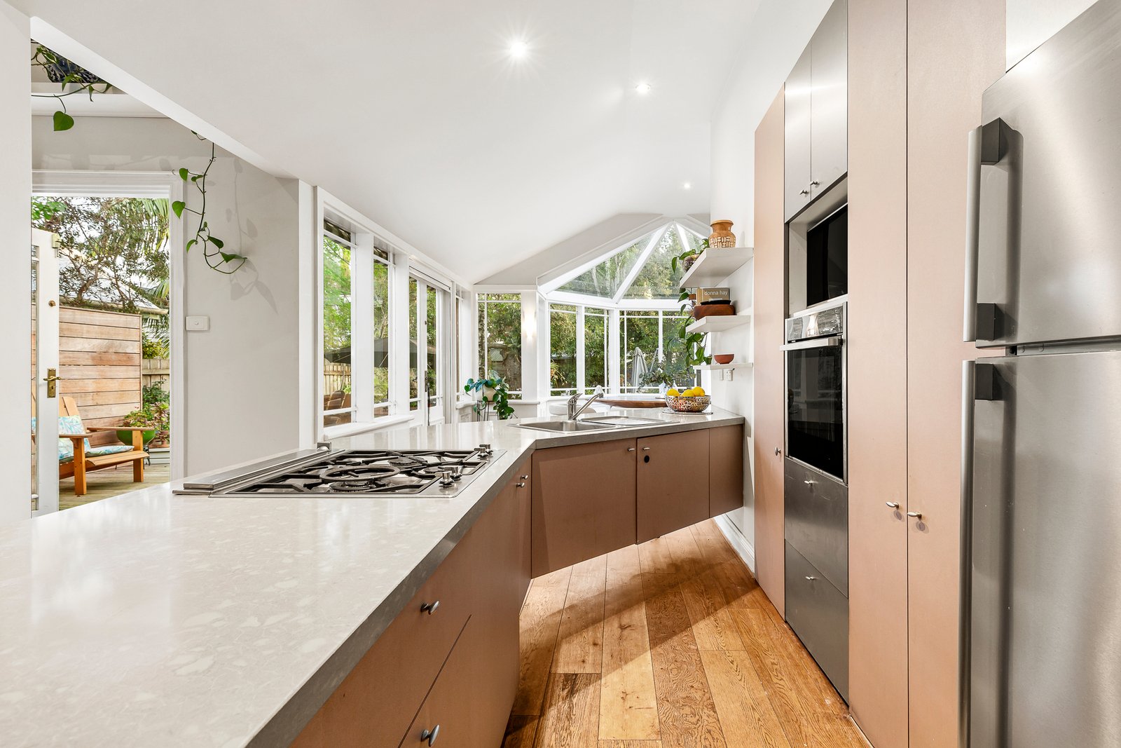 Optioned up with multiple rainwater tanks to keep the gardens healthy and a 20-panel solar-energy system to soak up the sun, there’s even scope for an easy second-storey extension around an existing attic.