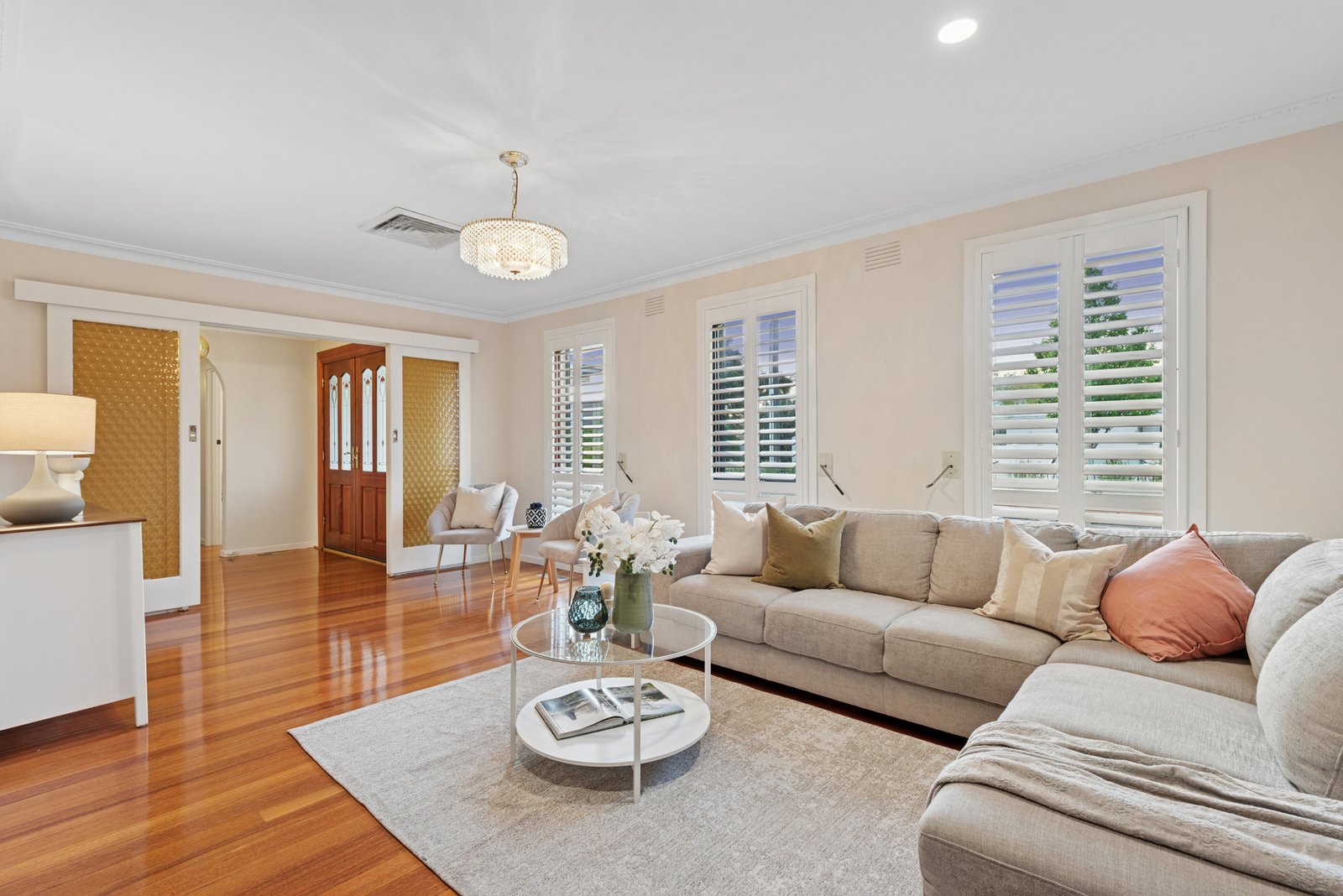 In a super-quiet court - within an equally tranquil pocket of Dingley Village - the smartly rendered home opens to spacious interiors enhanced by glossy hardwood floors and chic plantation shutters.