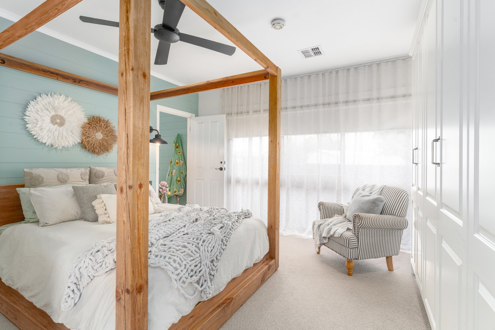 Four generous bedrooms provide excellent accommodation, including a dreamy main bedroom with feature panelling and a stylish ensuite, while the renovated family bathroom combines a freestanding bath, large shower and quality finishes. Thoughtful updates, quality fixtures and a calm coastal palette make the home feel like a retreat you can move straight into and enjoy.