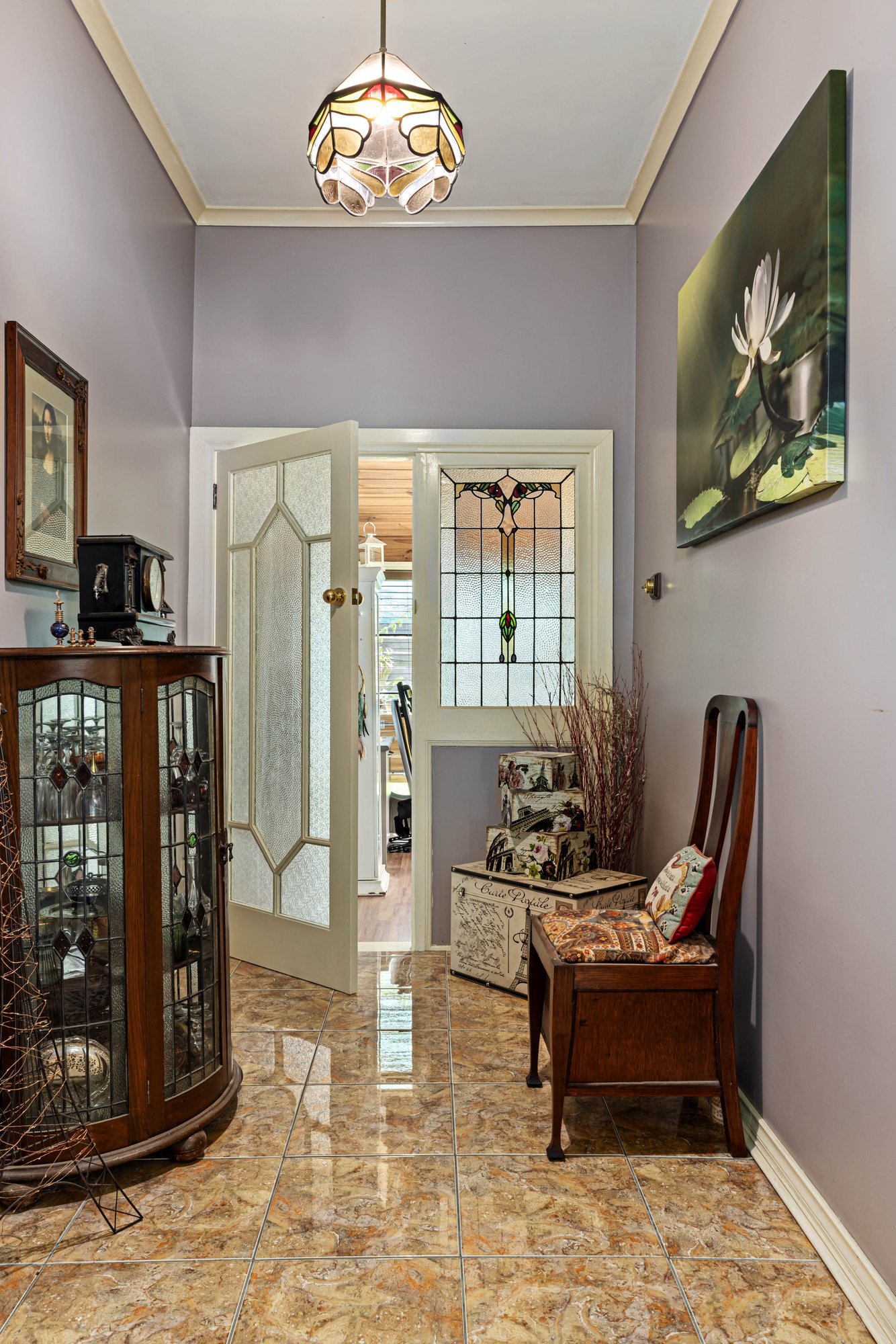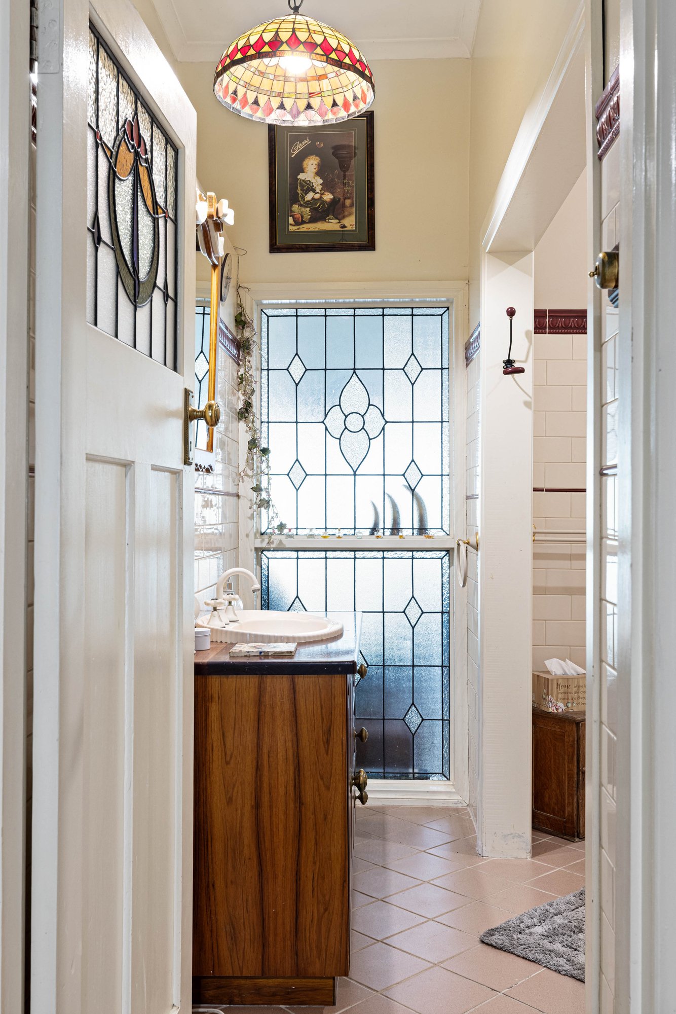 The family bathroom is spacious and in particular, the beautiful tiling and lead lighting is highlighted. The second toilet is found in the laundry.