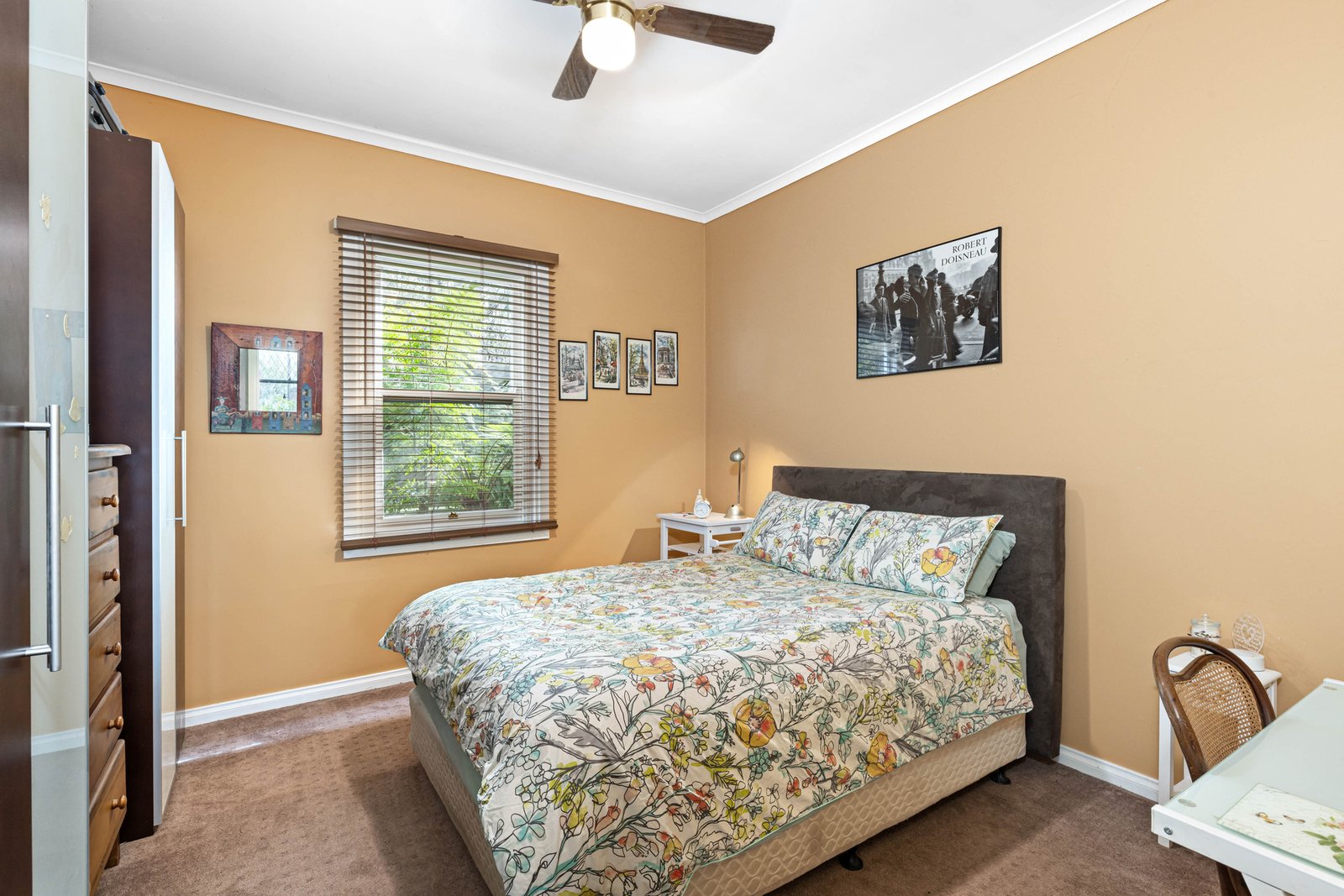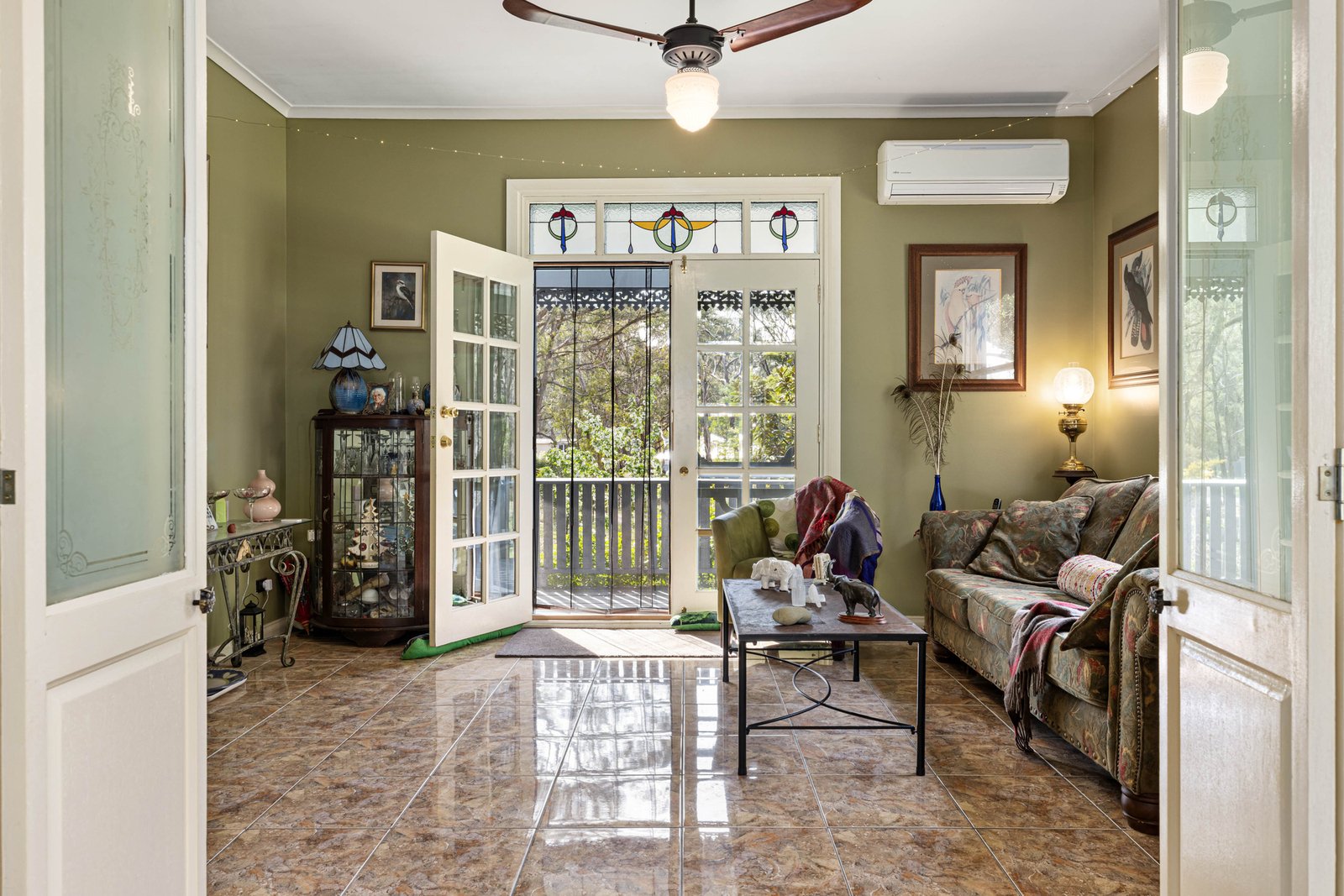 There are three living areas in all and three bedrooms. Most rooms have ceiling fans and there are two split system heating and cooling units that manage year-round temperatures throughout the home. A woodfire is located in the middle living area.